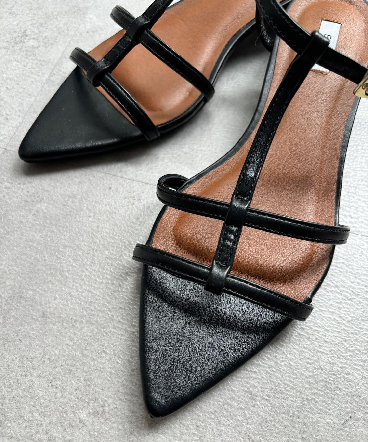 尖頭涼鞋是本季的大熱單品。低跟給人穩重的感覺,但又不失時尚。