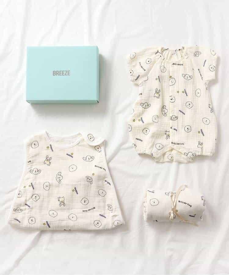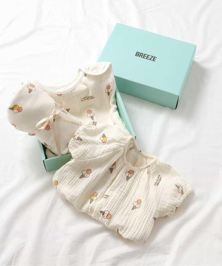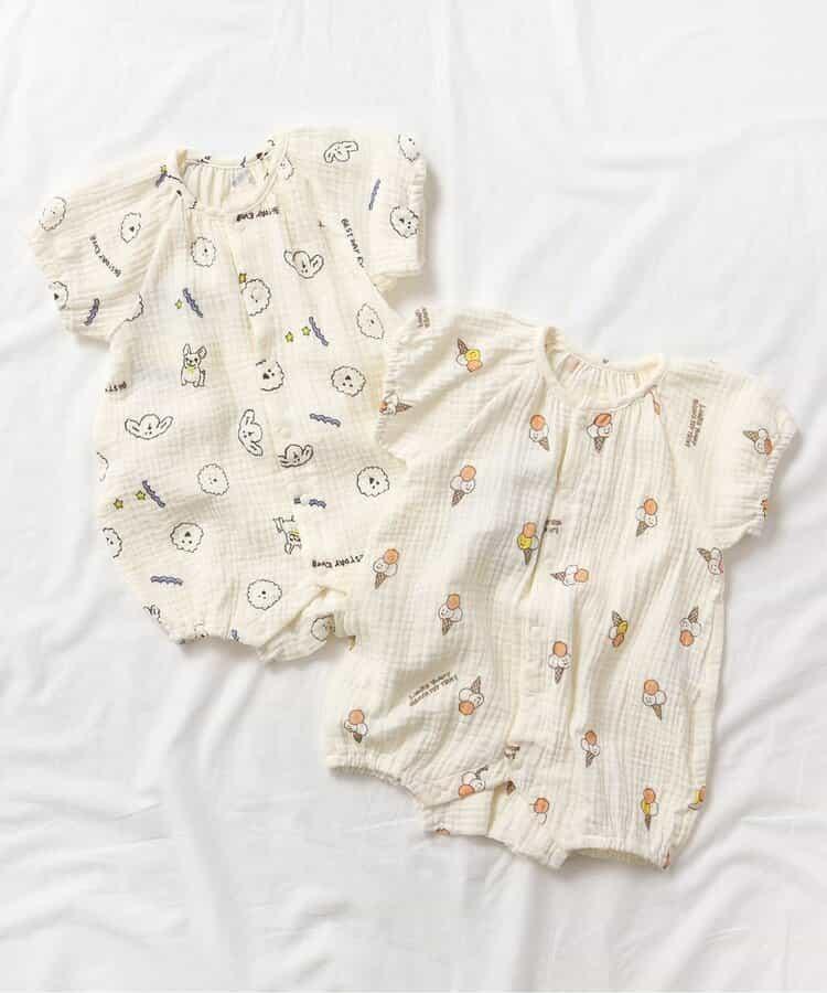 BREEZE 的套頭連身褲 "Unigauze Rompers "因其成人化的設計而備受青睞,在小衣服中蘊含著大關注!此外,還推薦作為送給寶寶的禮物。