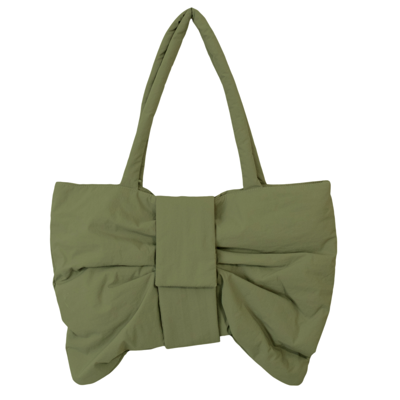 尼龍中空絨帶蝴蝶結托特包 綠色 (BG4484GR)