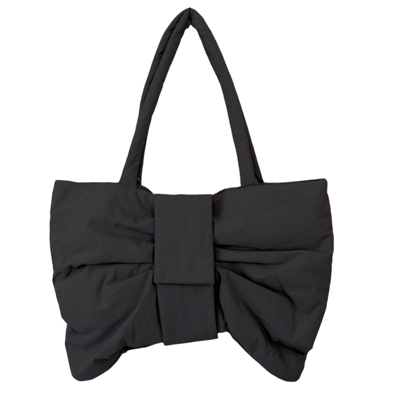尼龍中空絨帶蝴蝶結托特包 黑色 (BG4484BK)