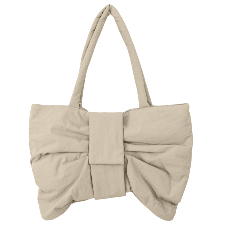 尼龍中空絨蝴蝶結托特包 米色 (BG4484BG)