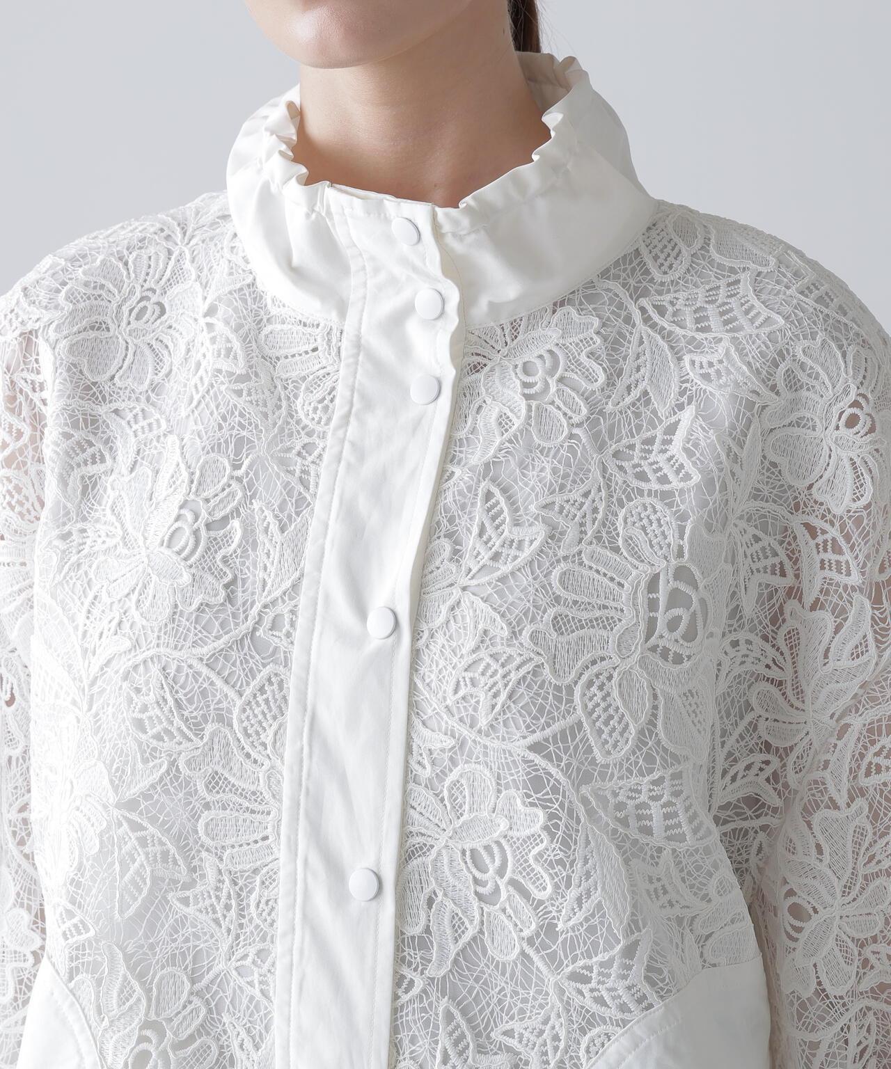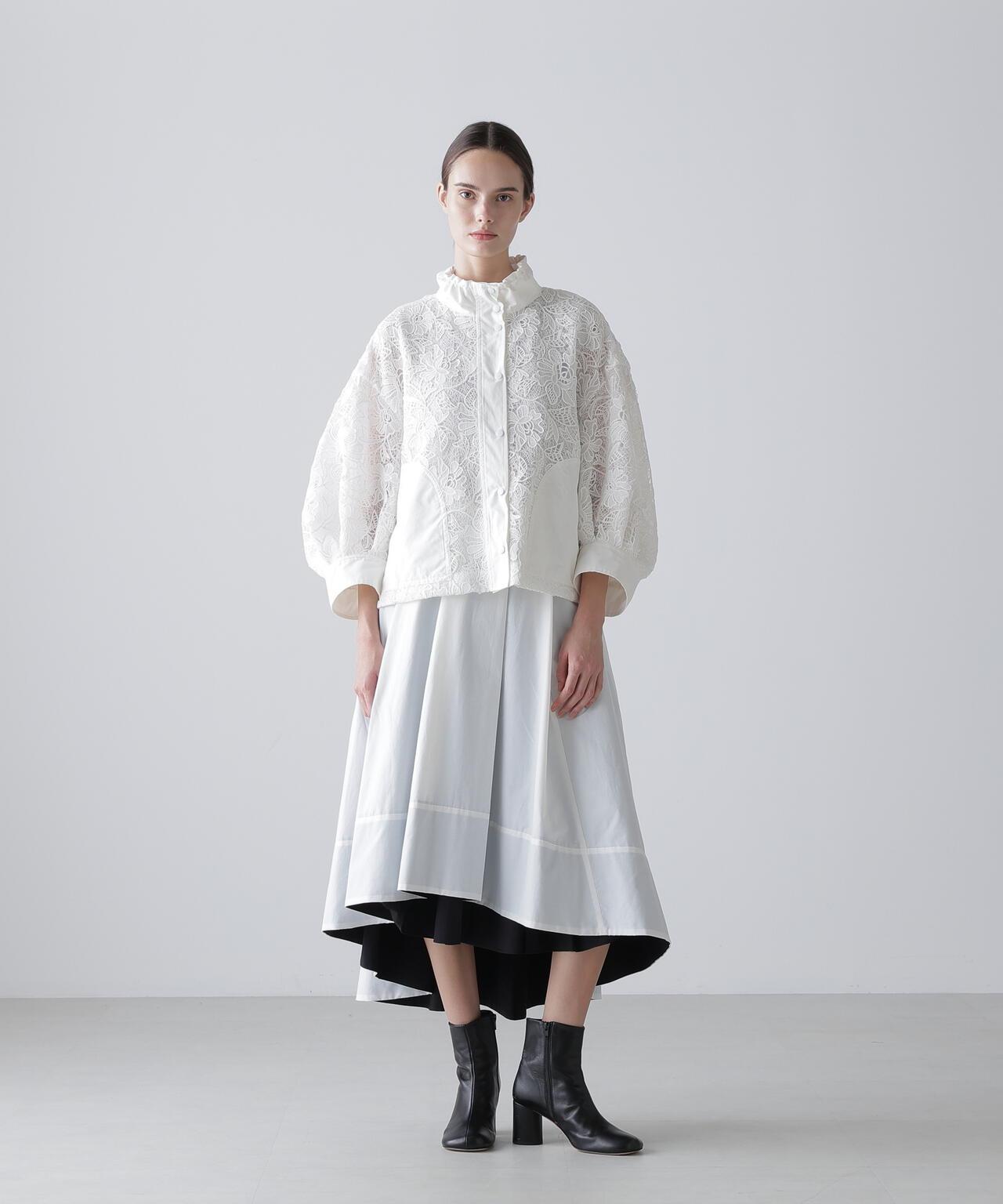 這是一款可輕鬆編織蕾絲花邊的休閒夾克,靈感來源於 blouson anorak parka,將運動細節與蕾絲花邊相結合。可與裙子搭配,打造女性化的造型,因為它還包含了柔美的袖子和類似蓬蓬裙輪廓的後背款式等女性化元素。領口邊緣有抽繩,可以根據自己的喜好進行調節。建議搭配同款裙子(貨號:531-6120027)作為套裙。採用高密度面料剪裁,尼龍長絲紋理乾淨利落,棉質面料交織出柔軟的質感。
