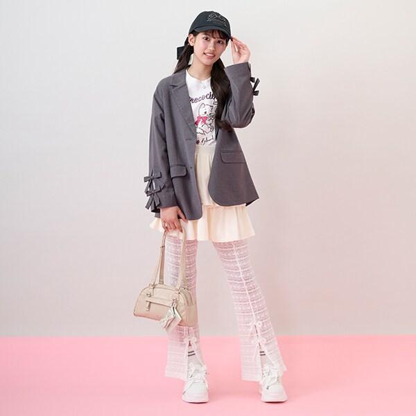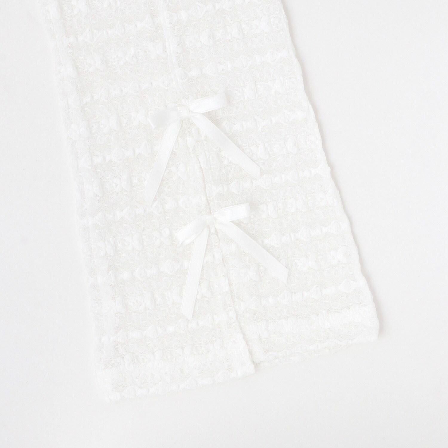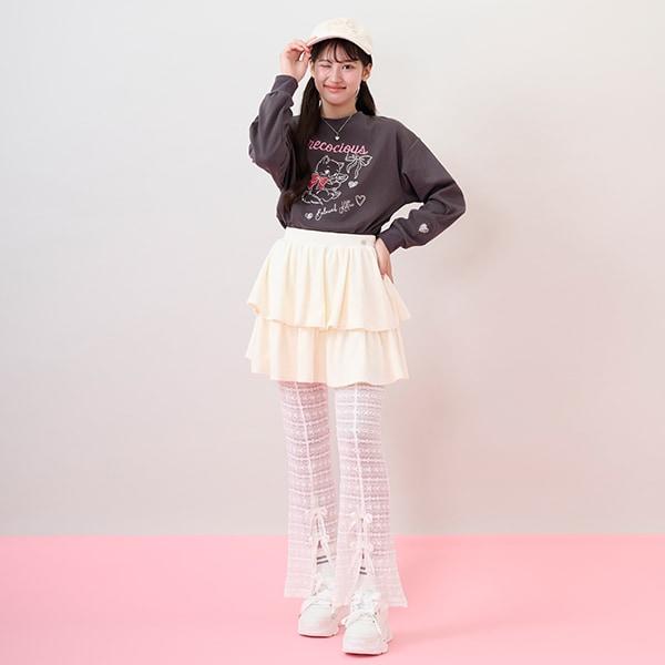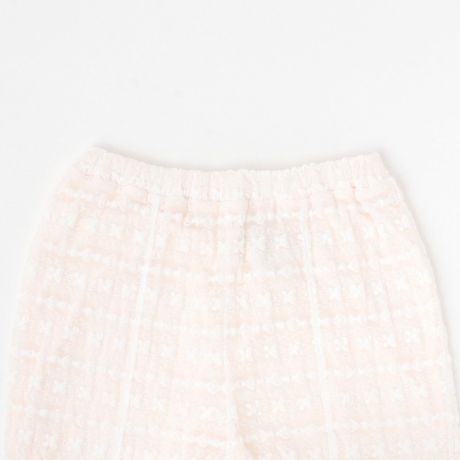 長褲採用精緻的蕾絲面料,配以絲帶裝飾。