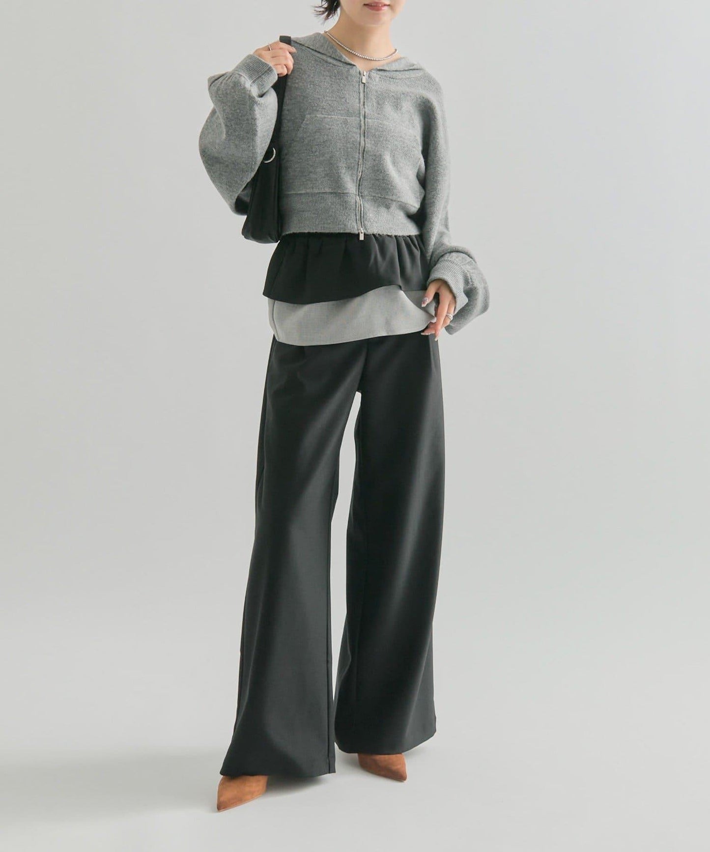 也可與內衣疊穿,打造半身裙風格。