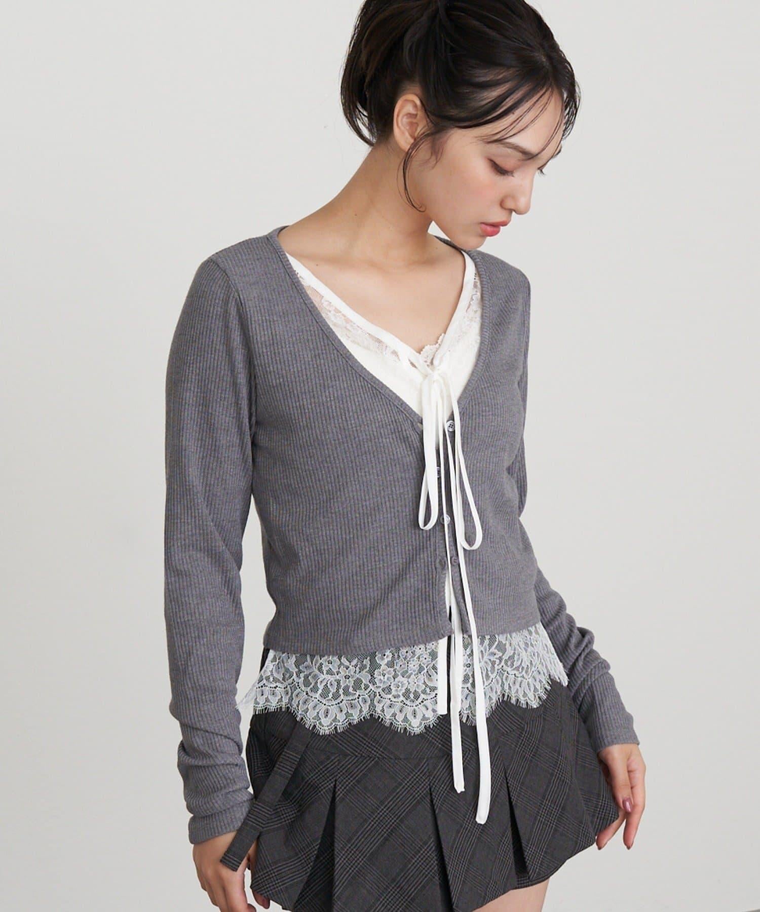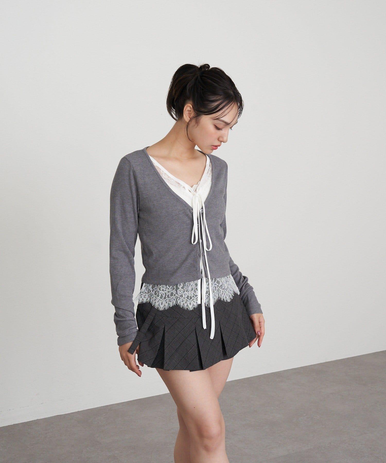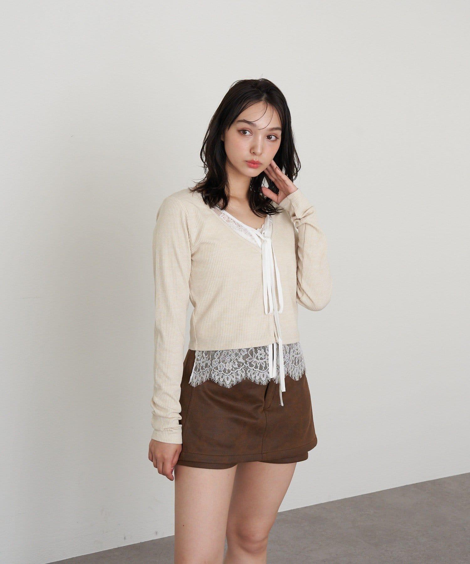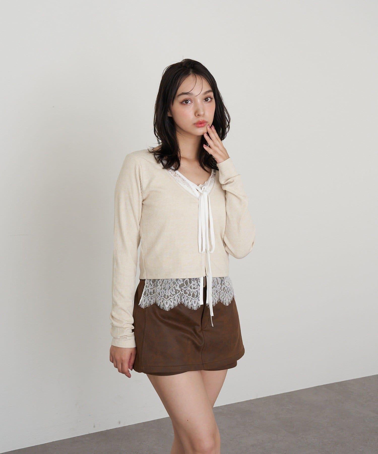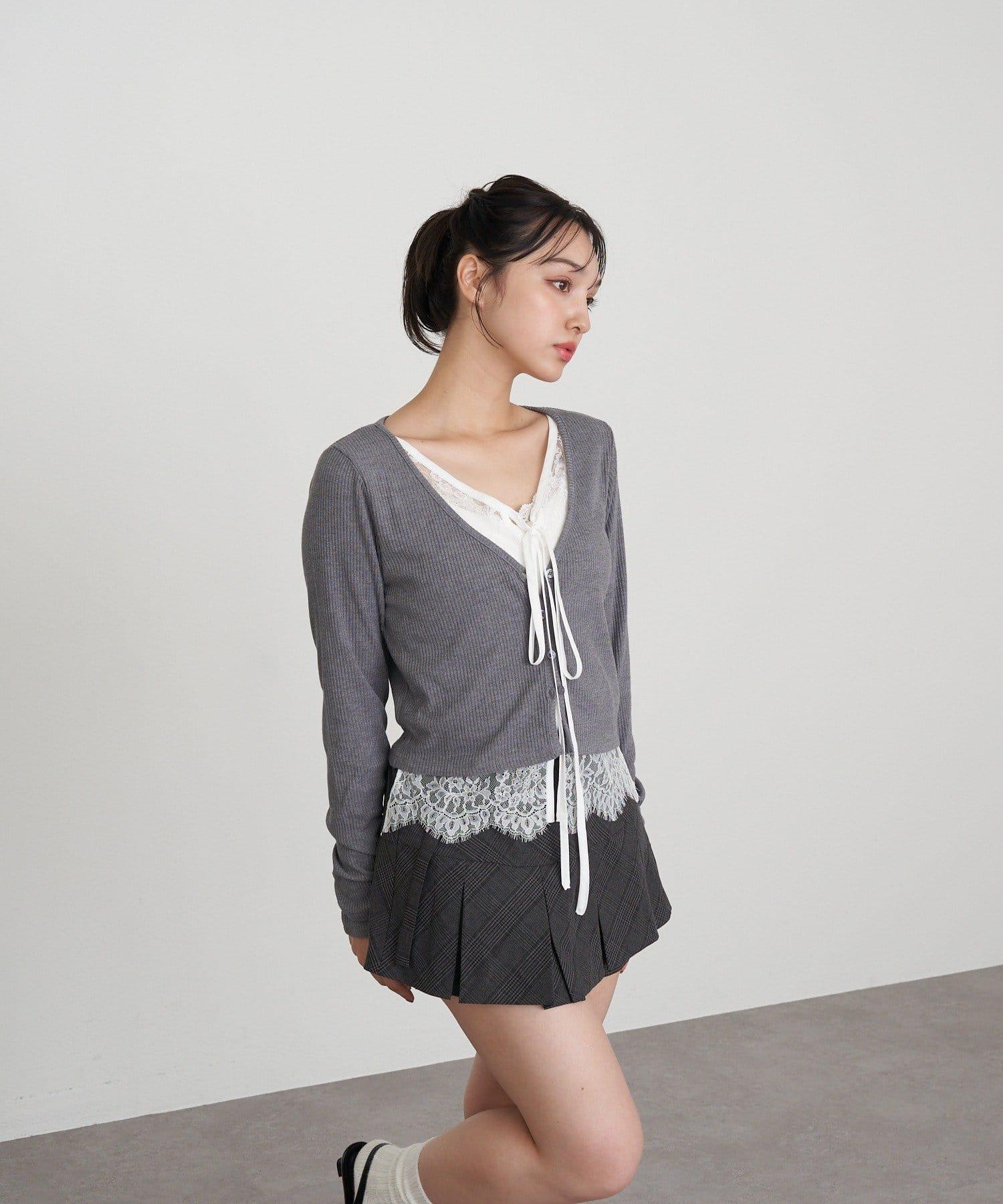 蕾絲只在前面有層次感,前面有紐扣,因此也可作為梭織裙穿著。