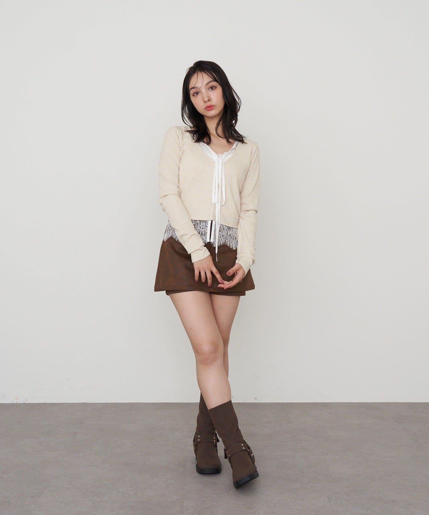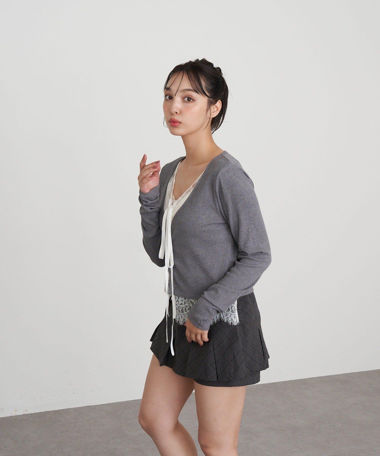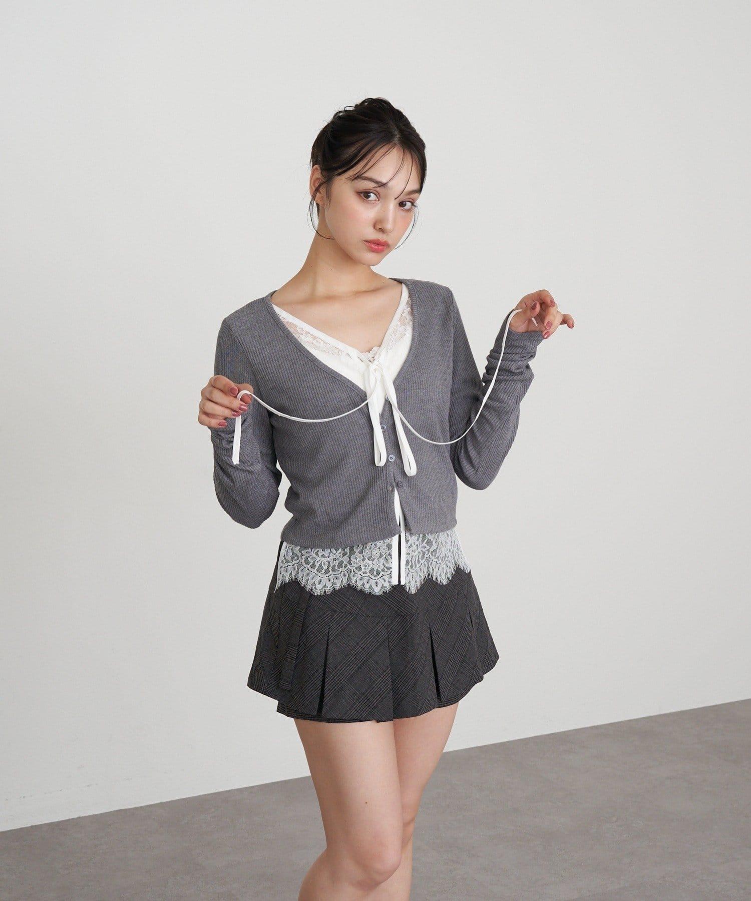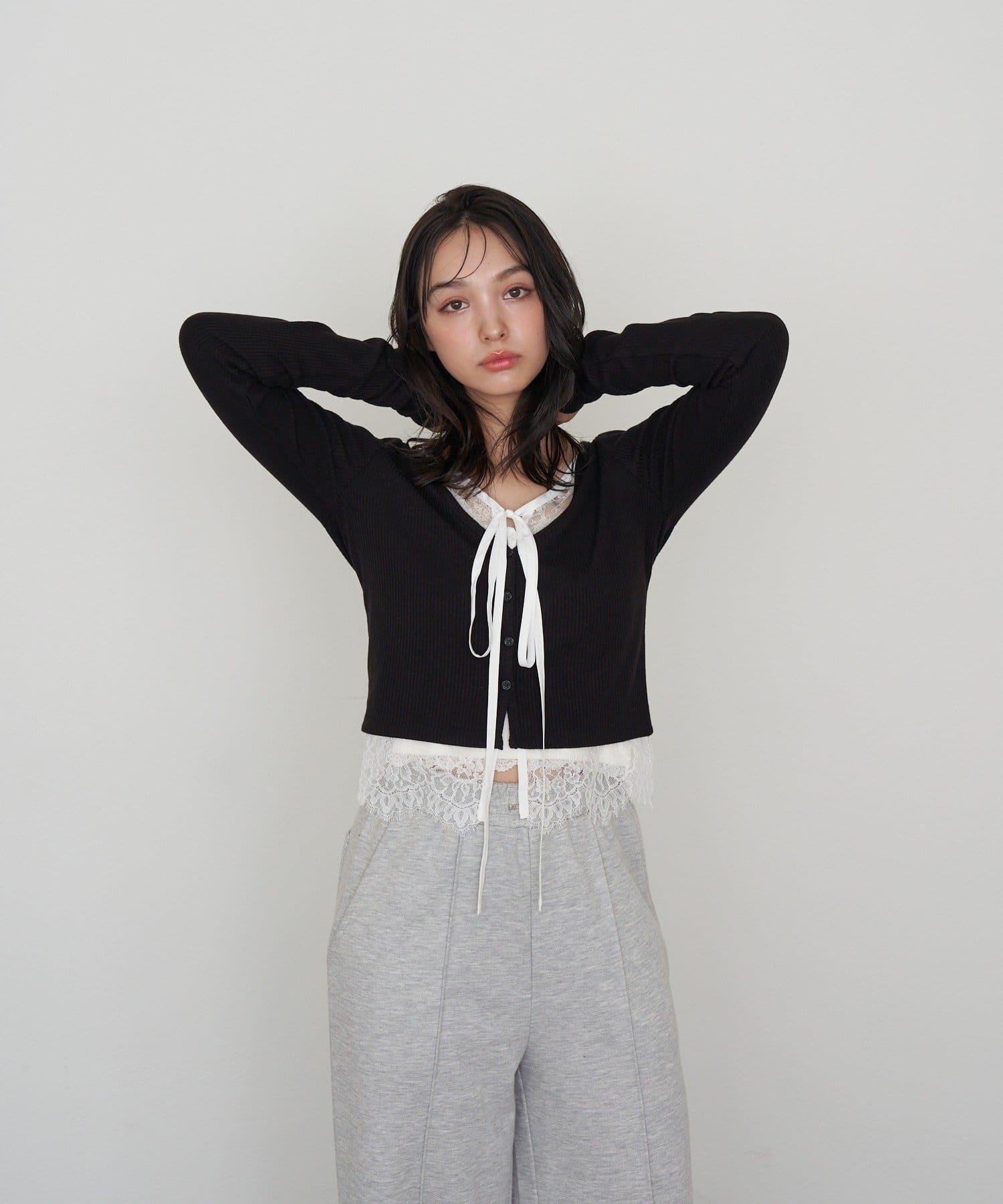 蕾絲只在前面有層次感,前面有紐扣,因此也可作為梭織裙穿著。