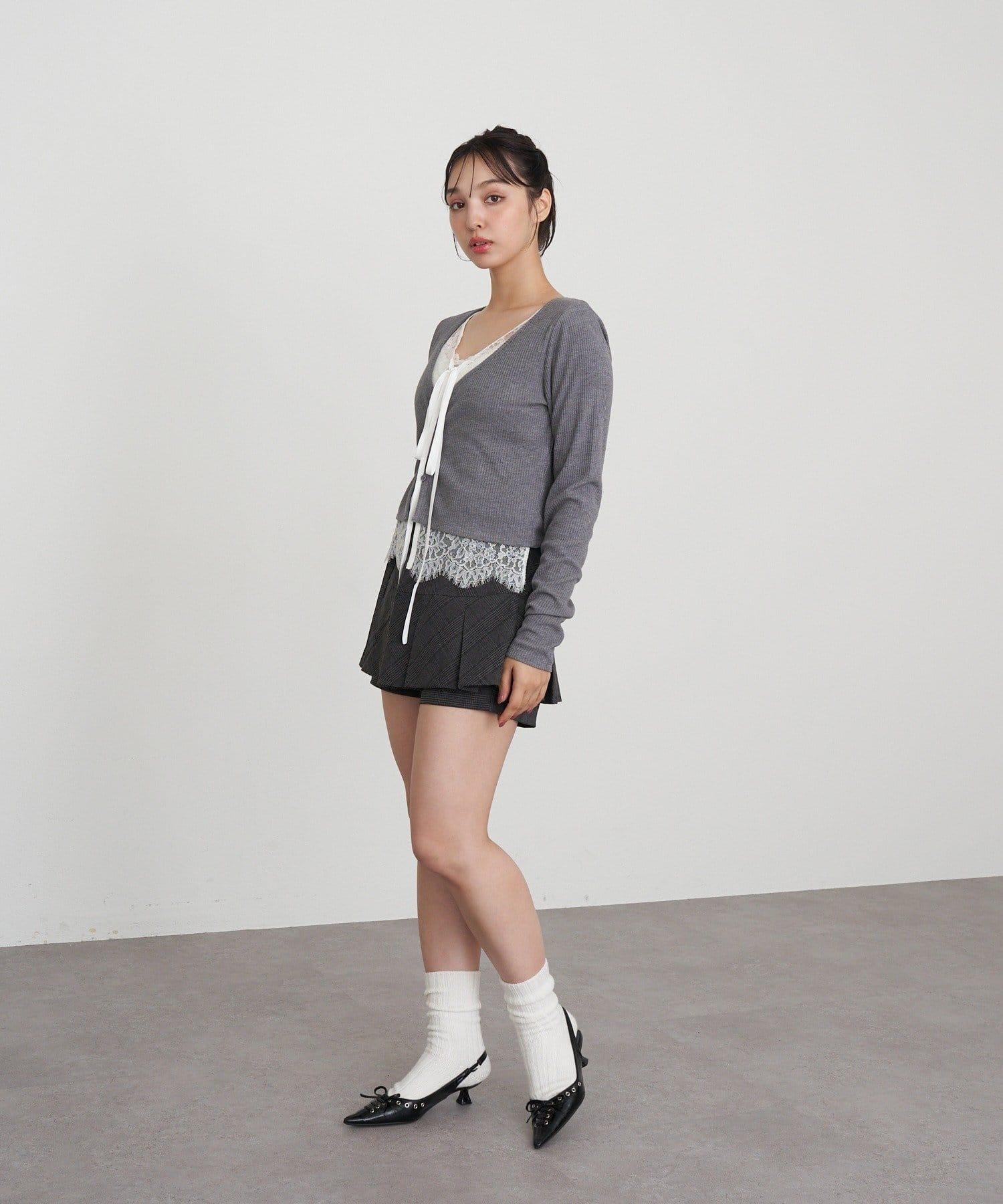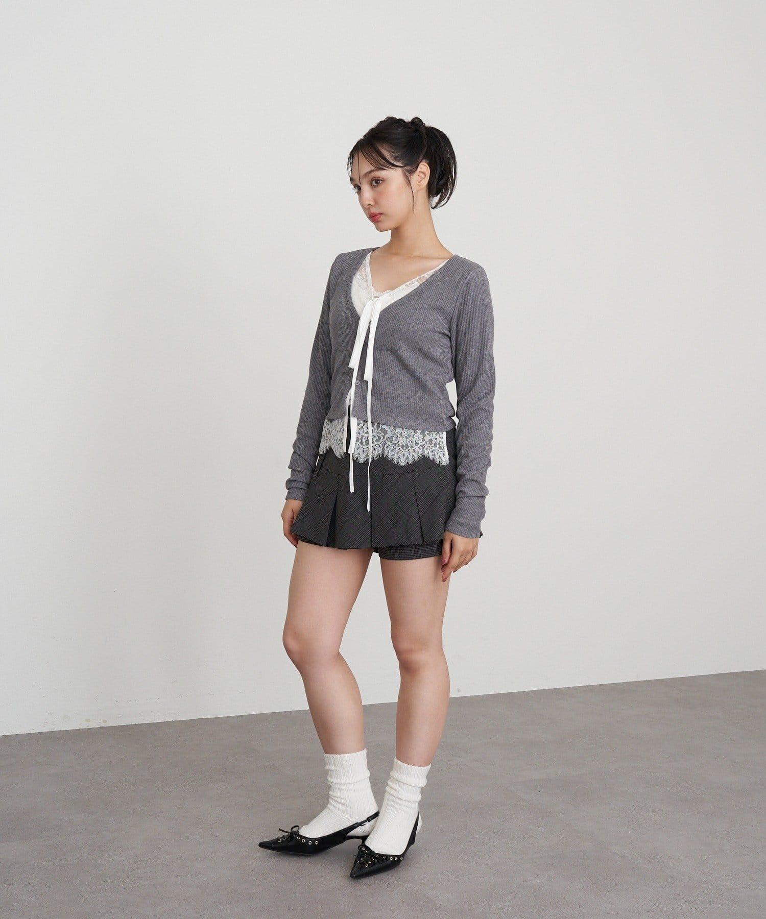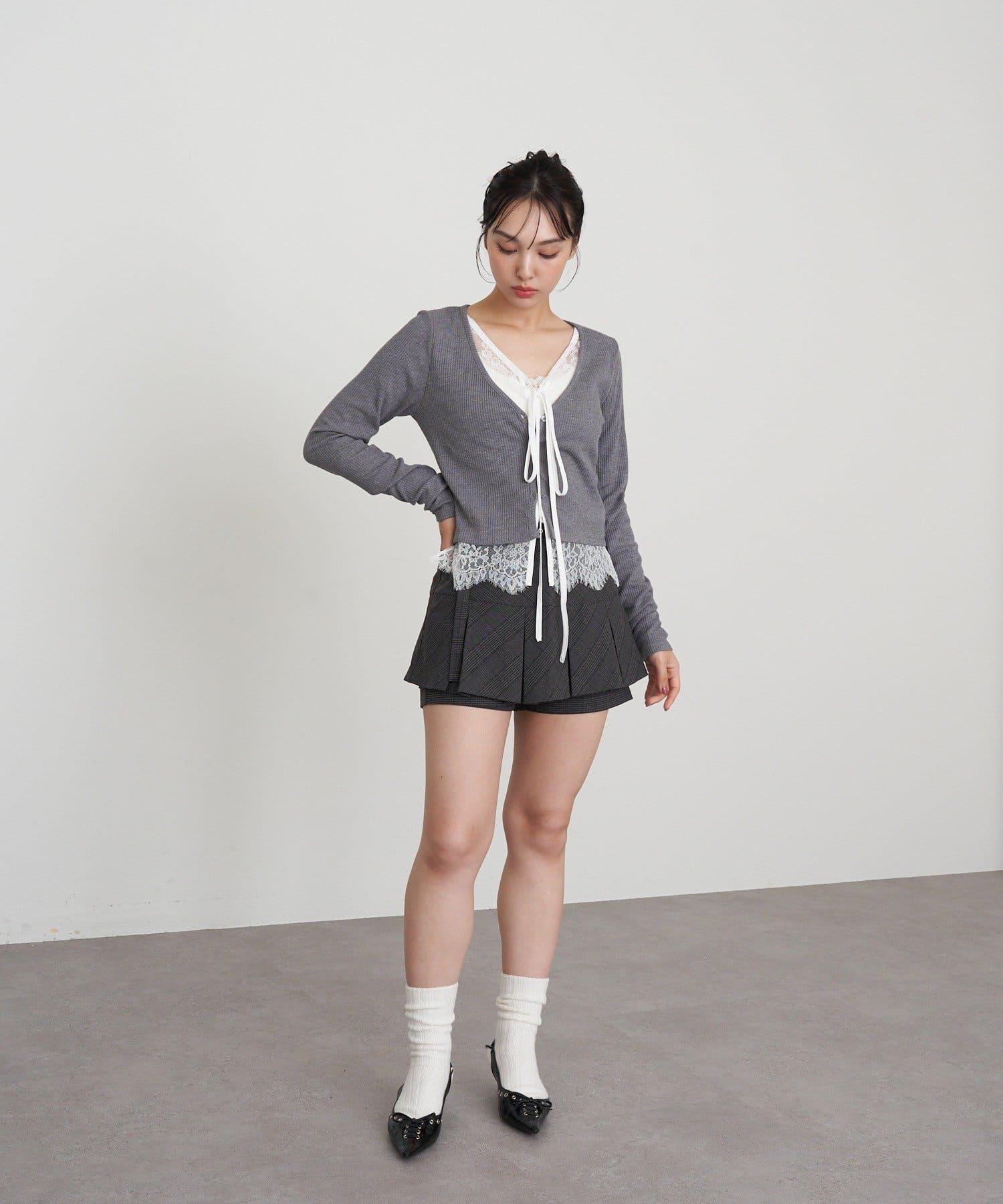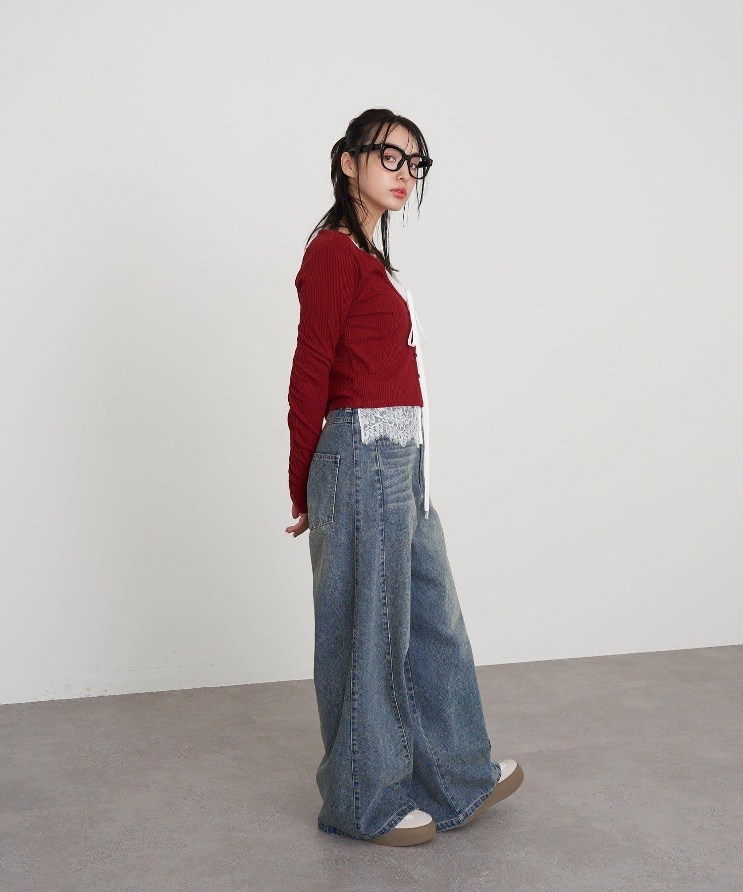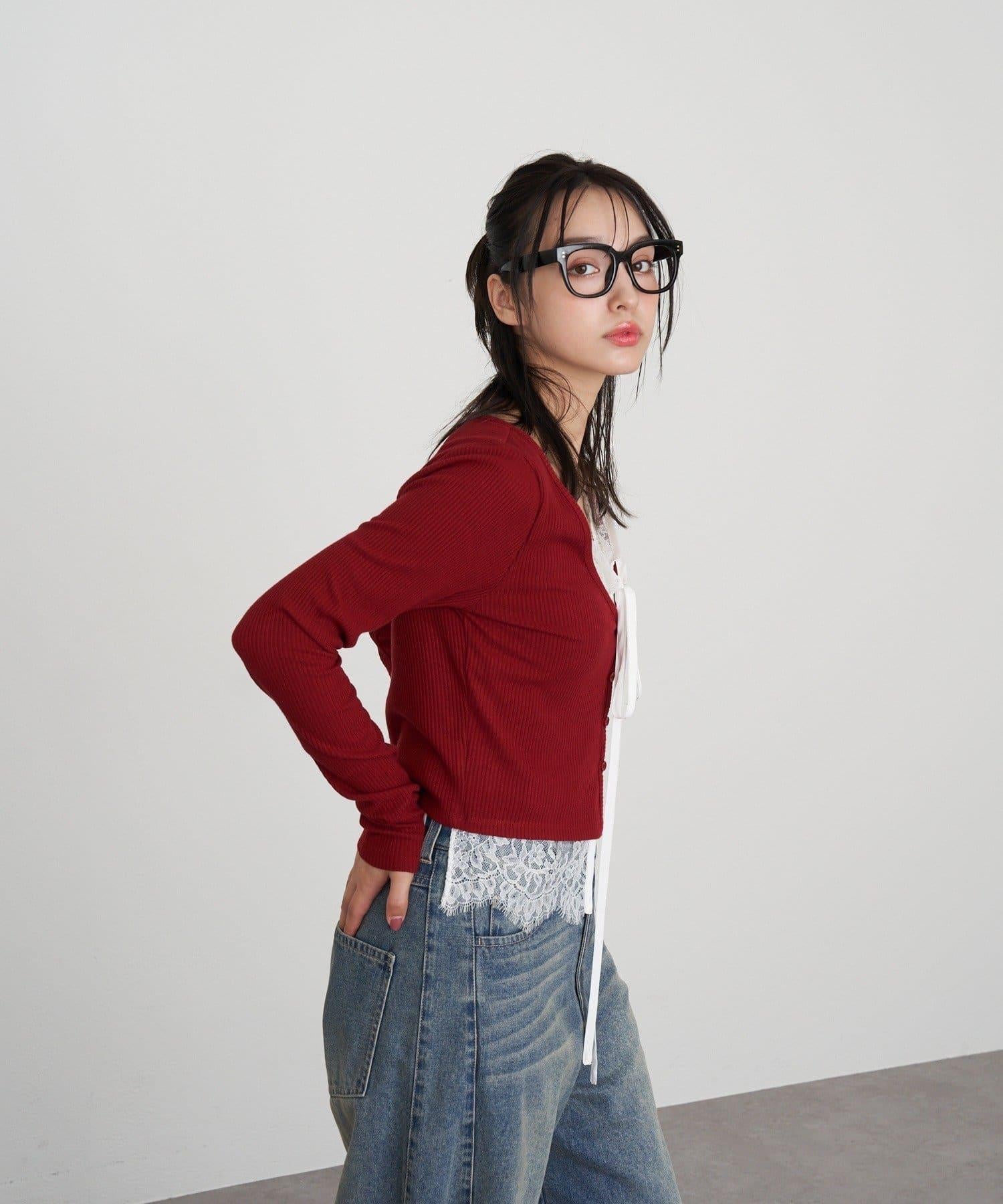 蕾絲只在前面有層次感,前面有紐扣,因此也可作為梭織裙穿著。