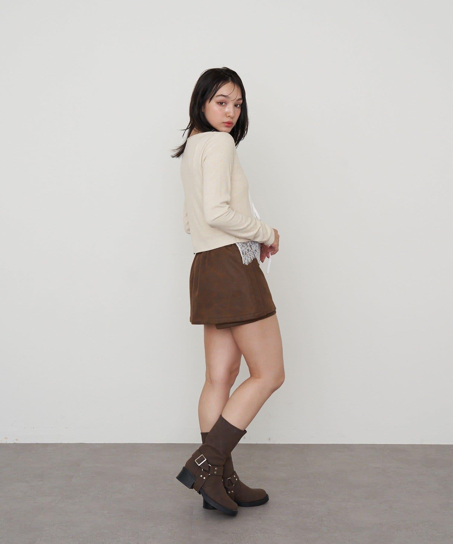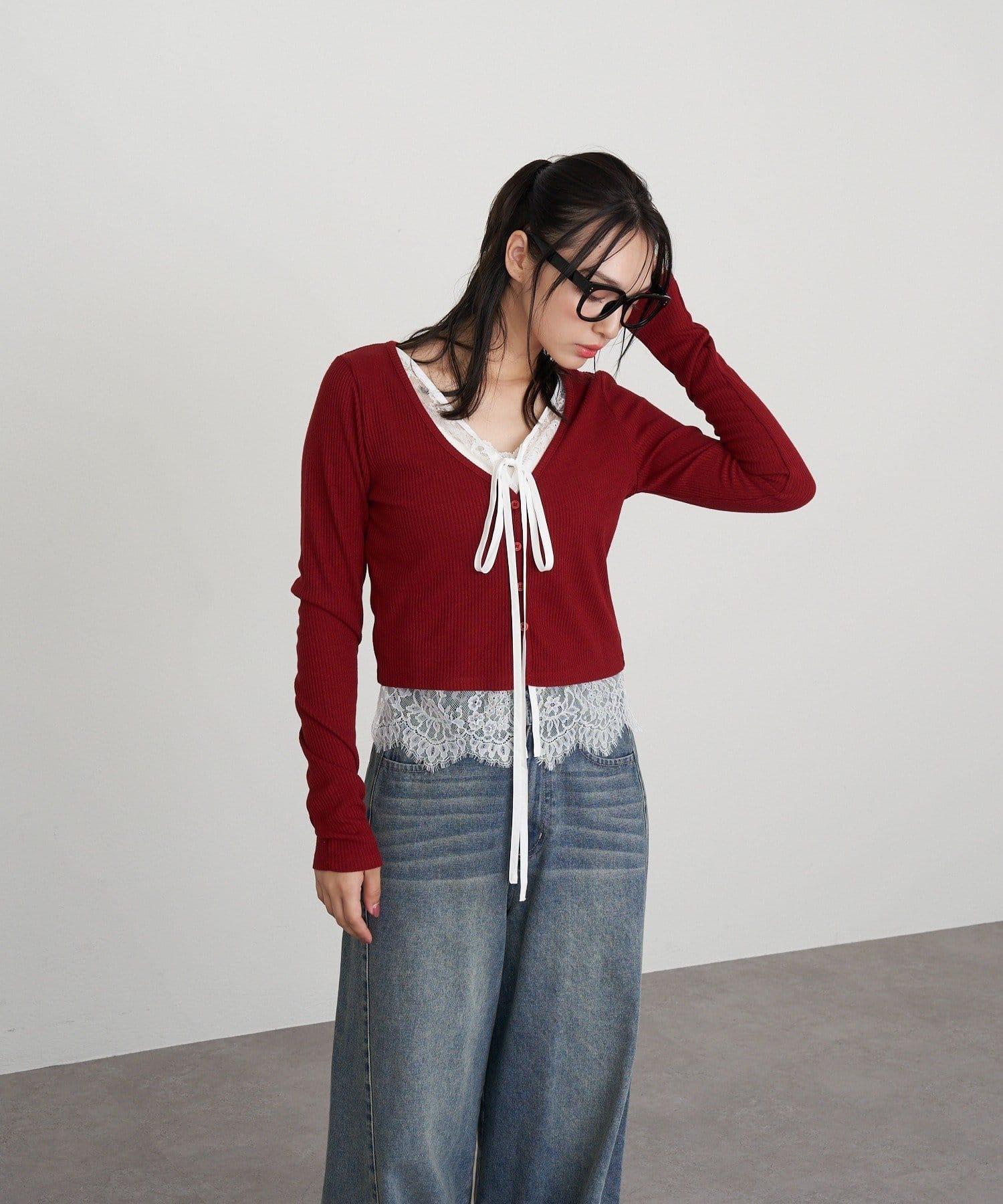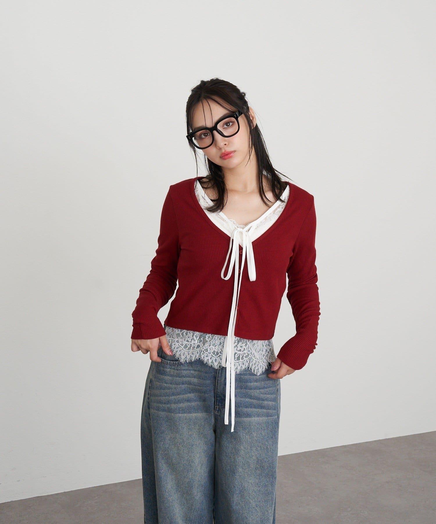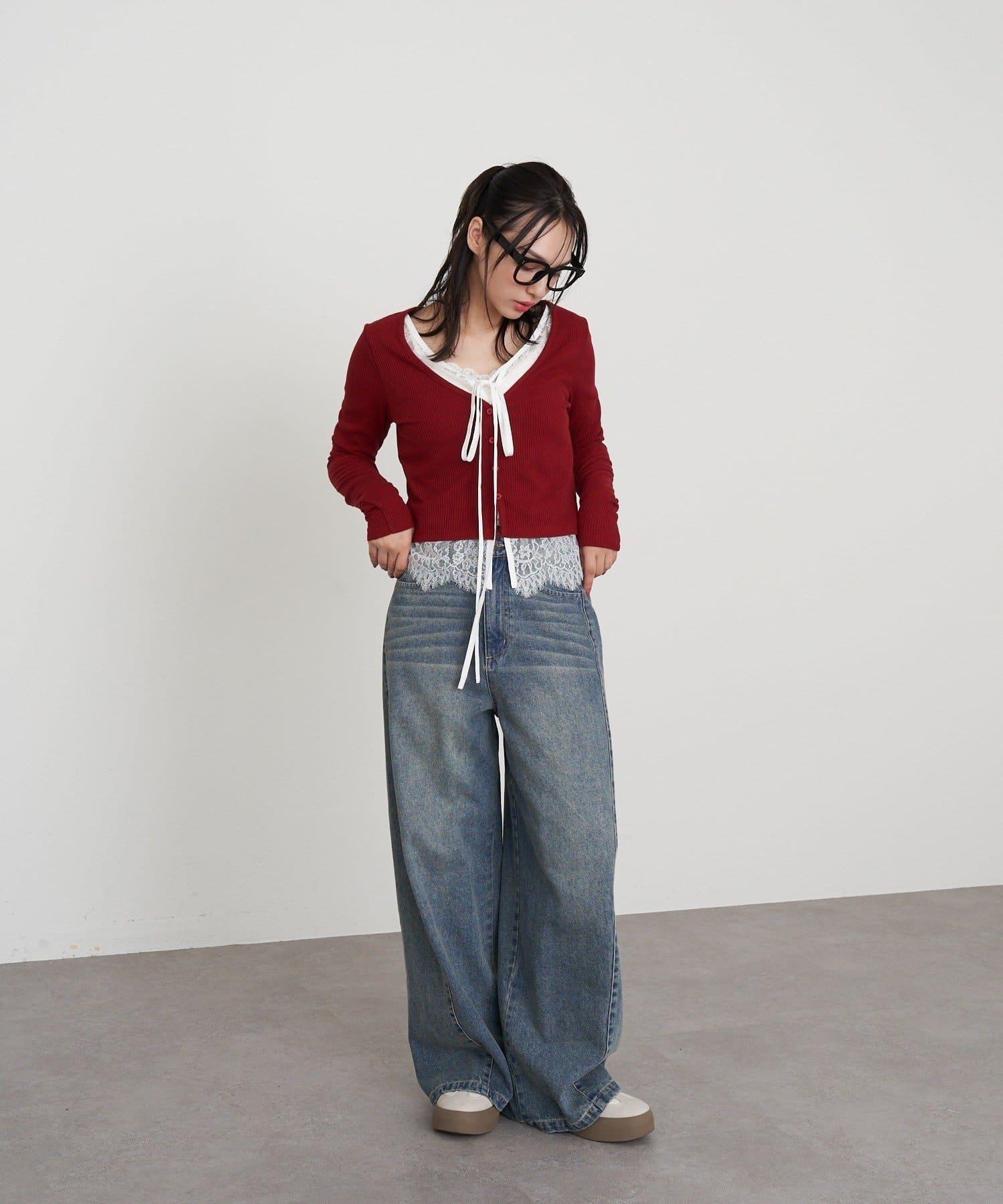 蕾絲只在前面有層次感,前面有紐扣,因此也可作為梭織裙穿著。