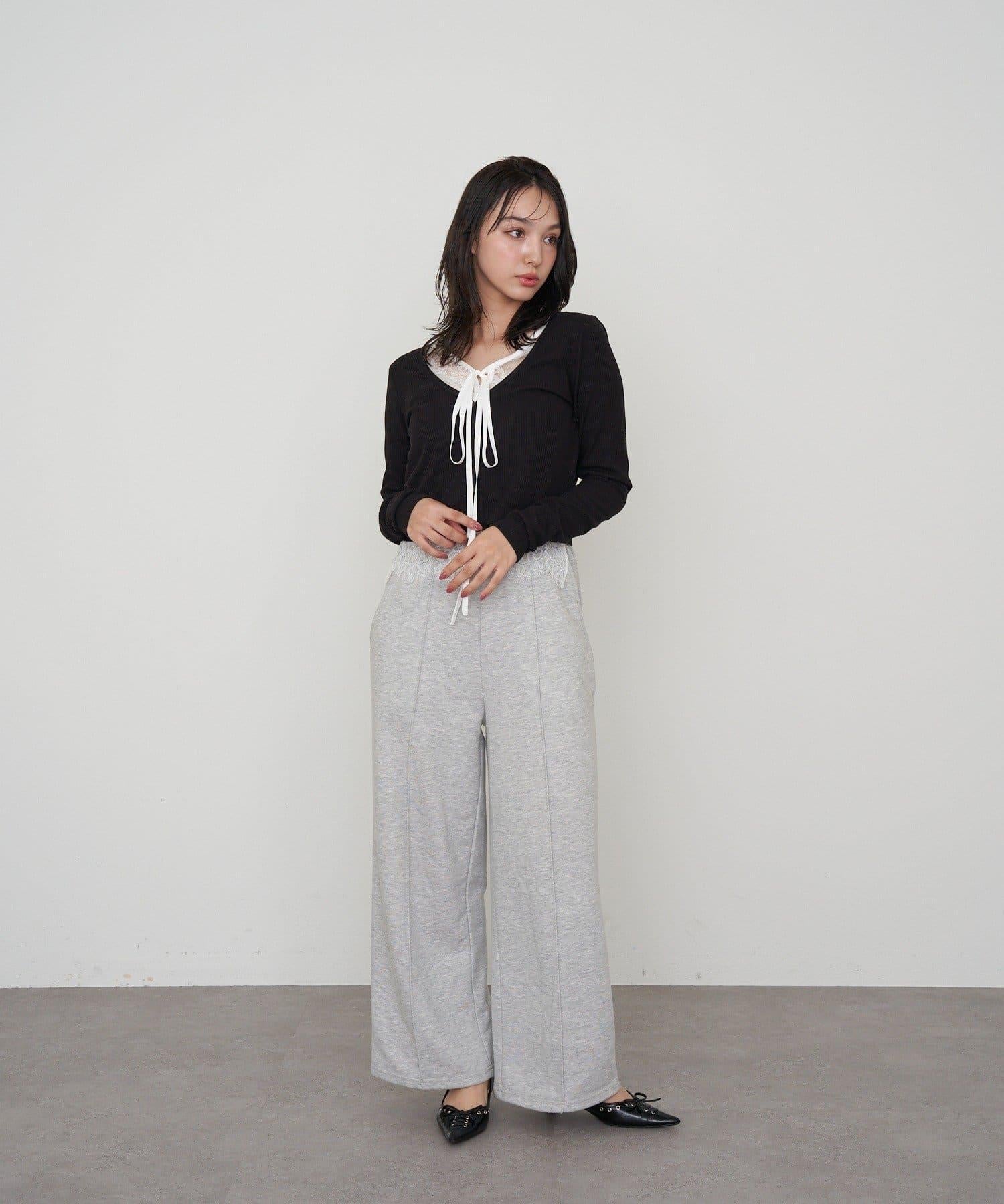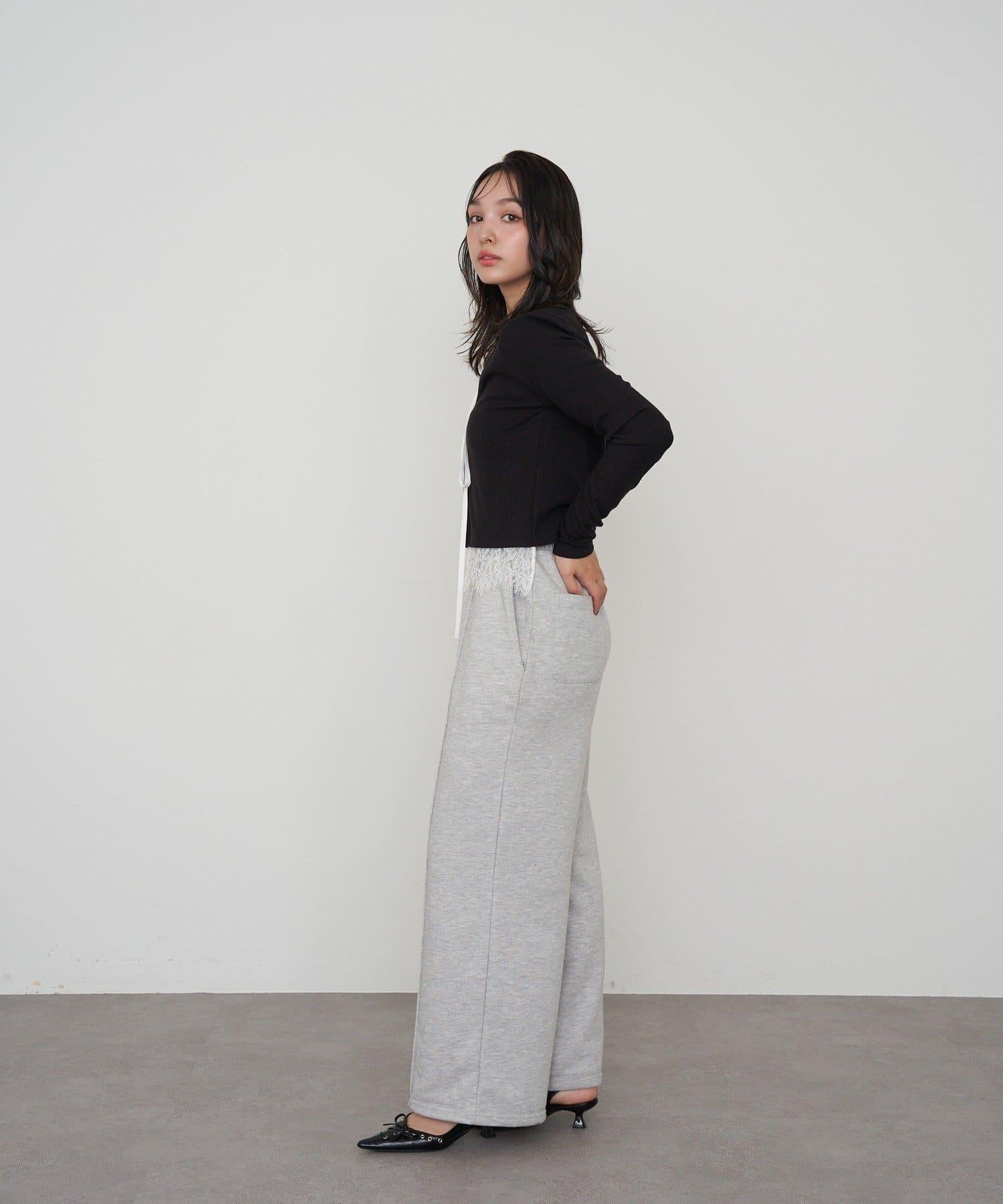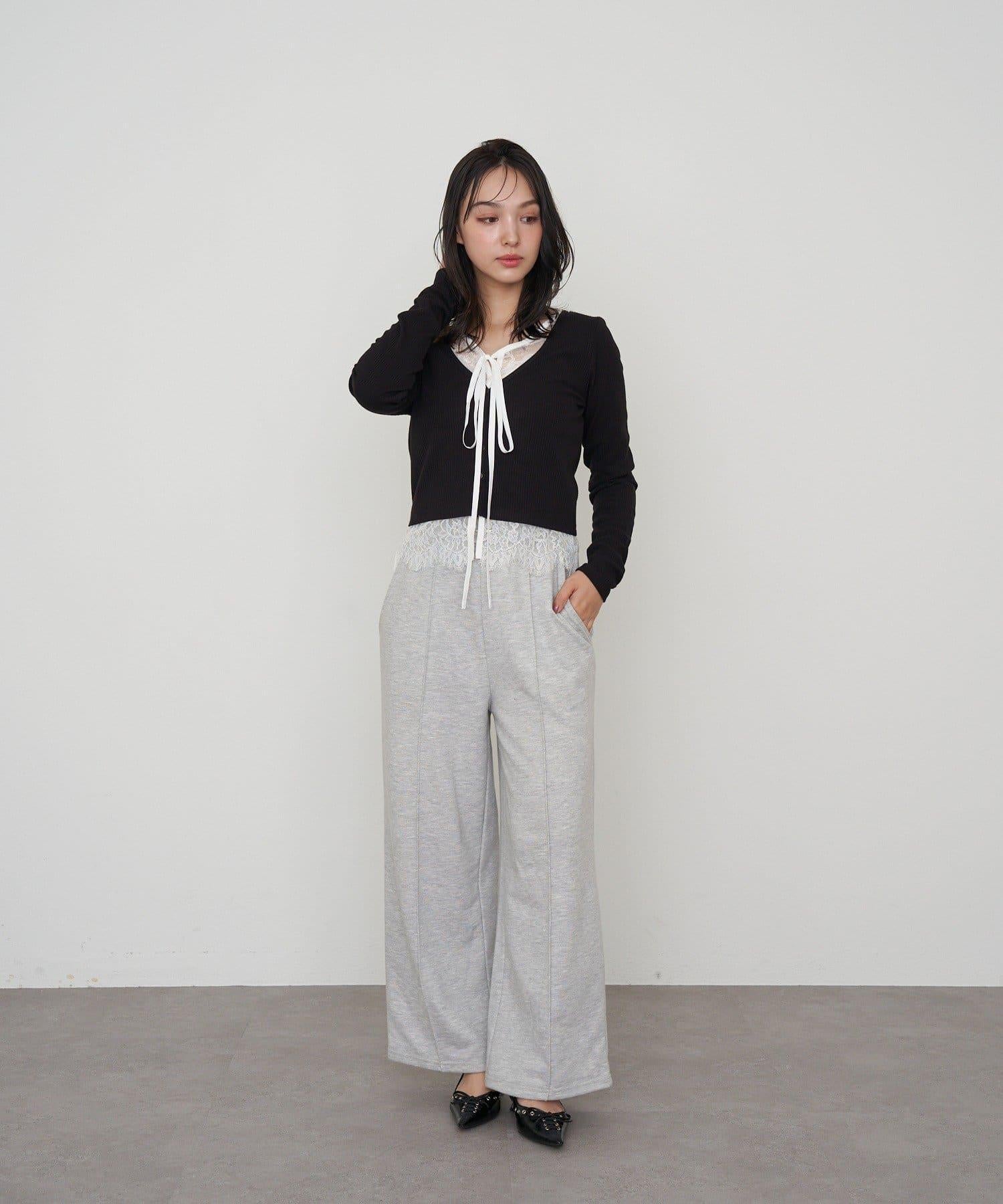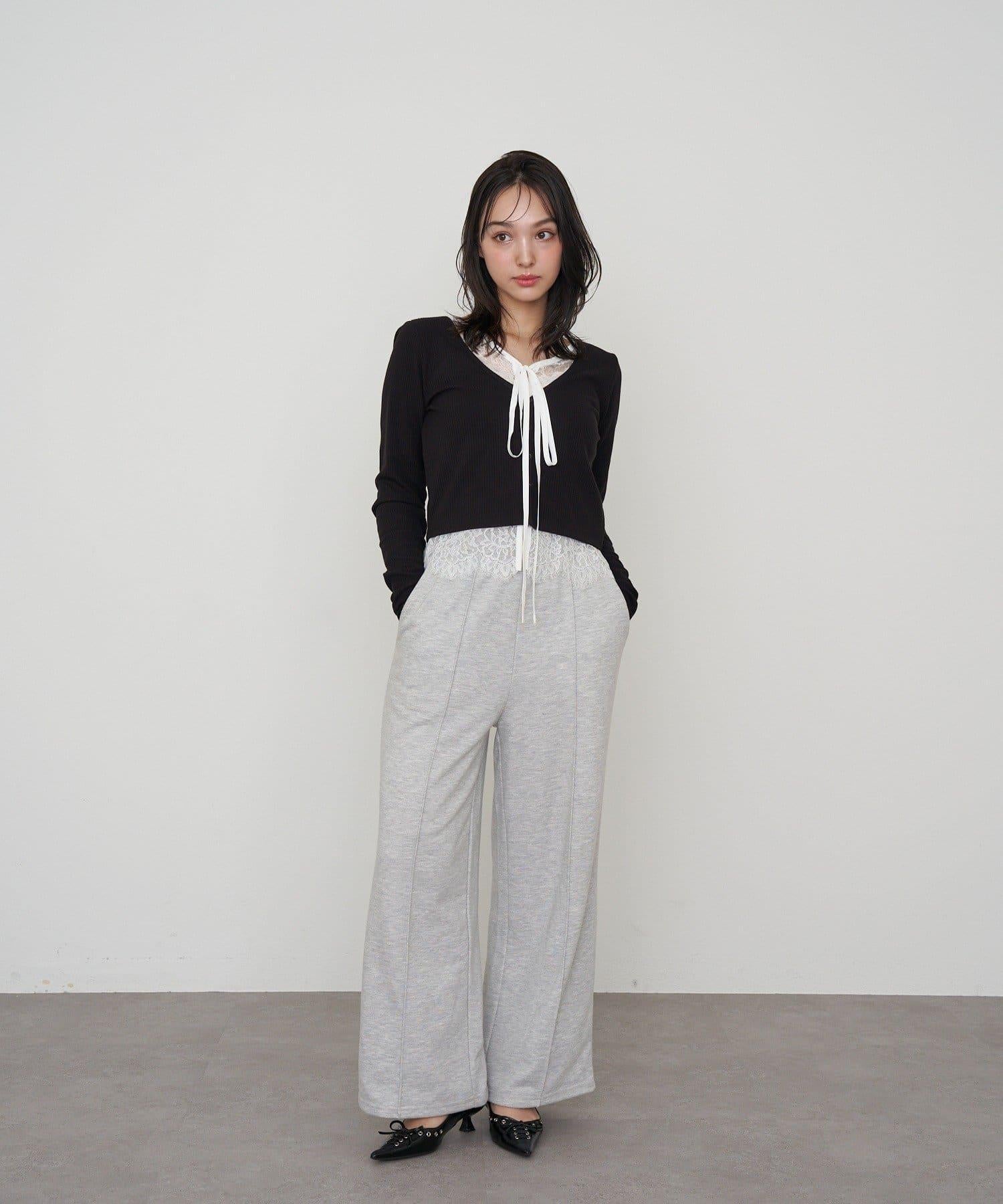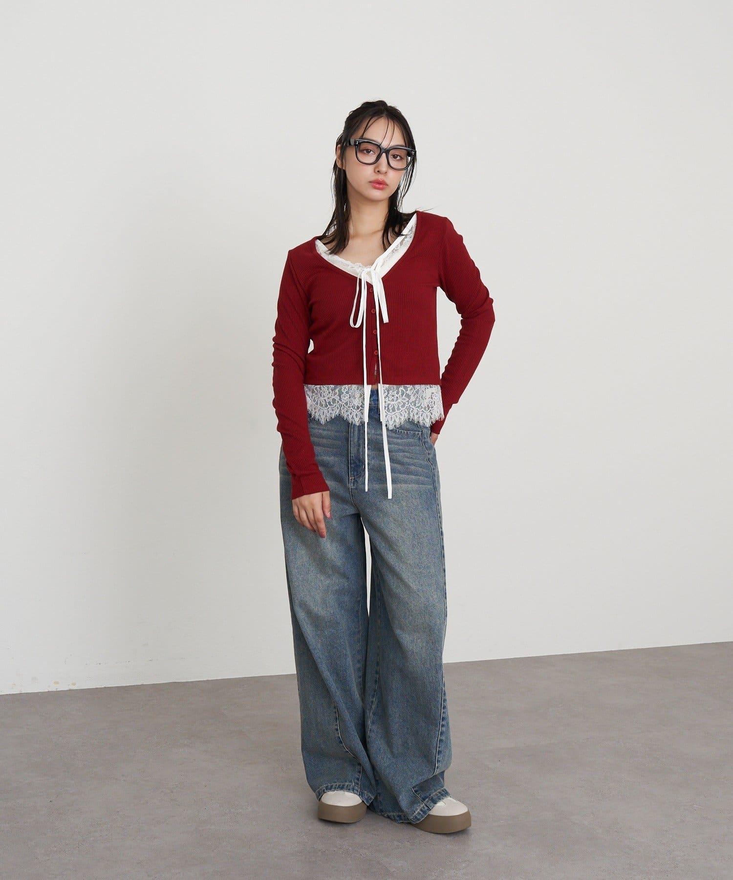 蕾絲只在前面有層次感,前面有紐扣,因此也可作為梭織裙穿著。