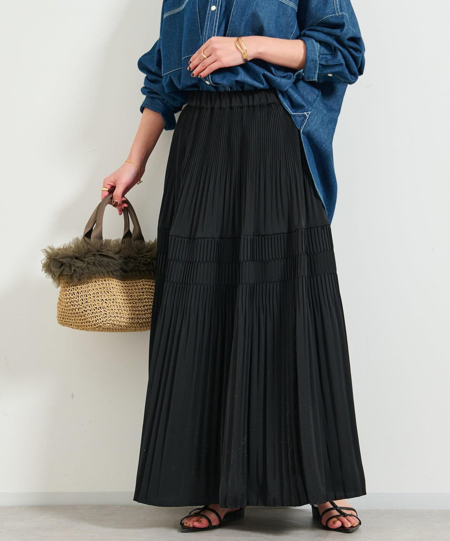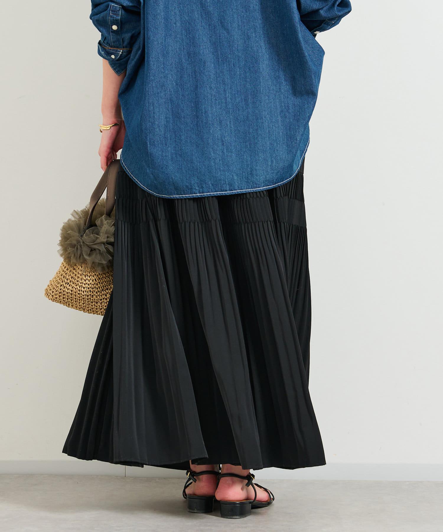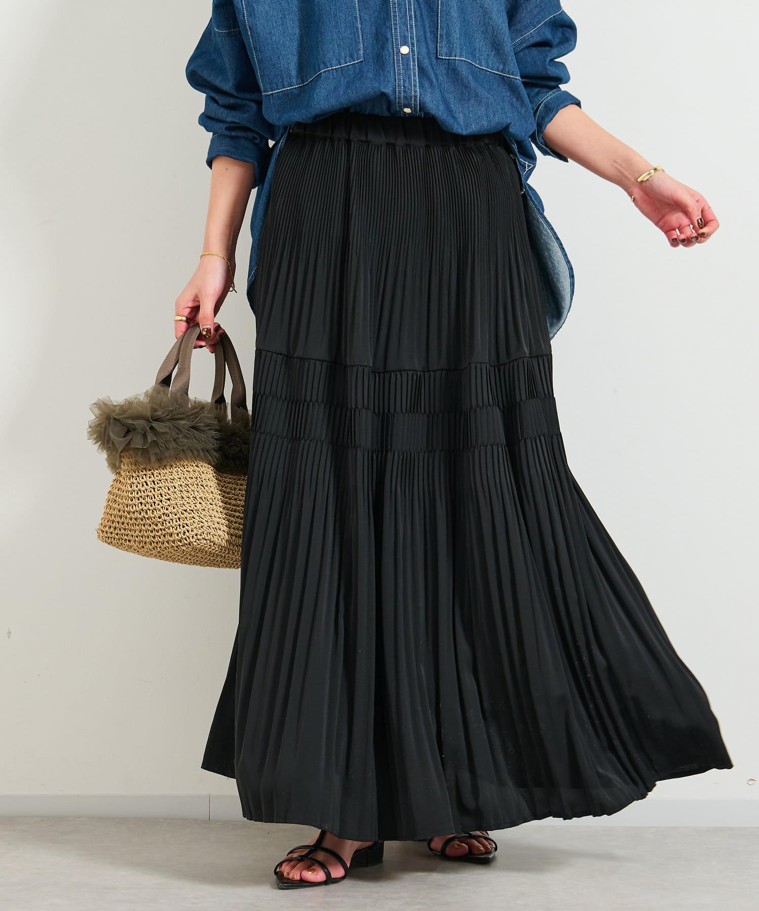 層疊式百褶裙採用柔軟寬鬆的面料。