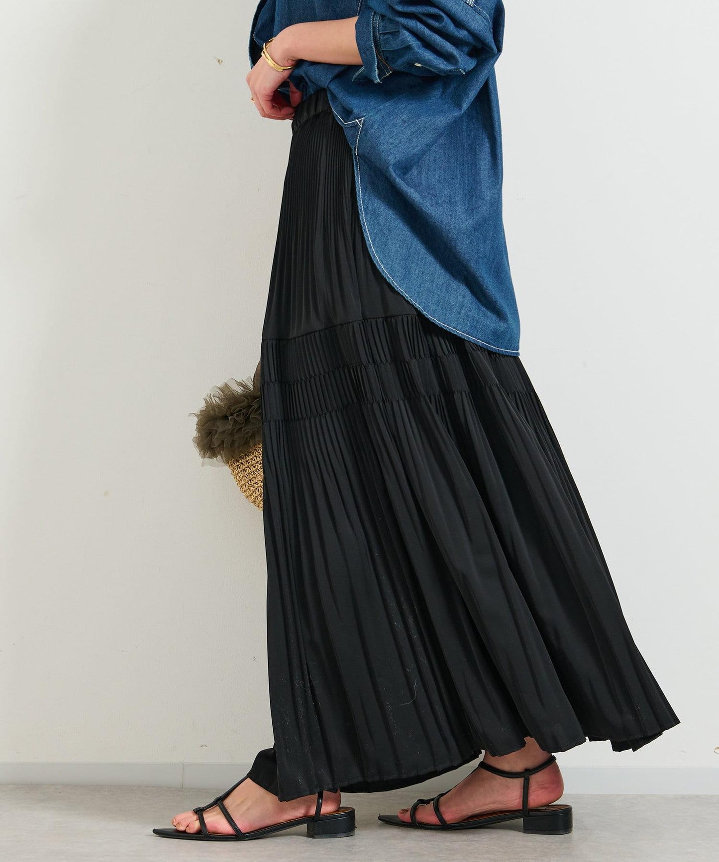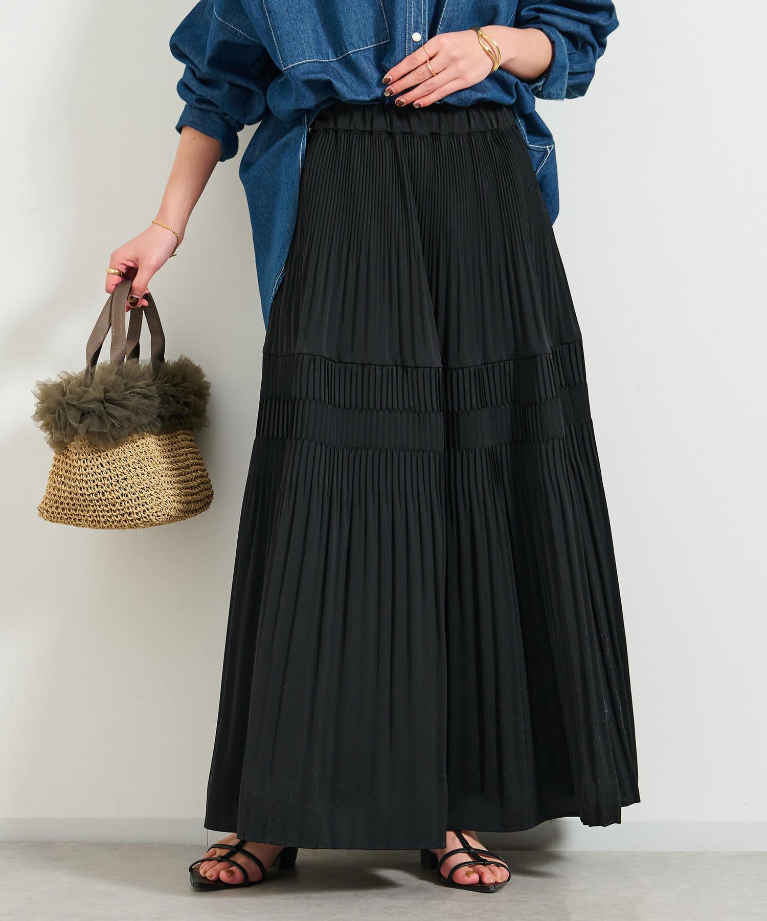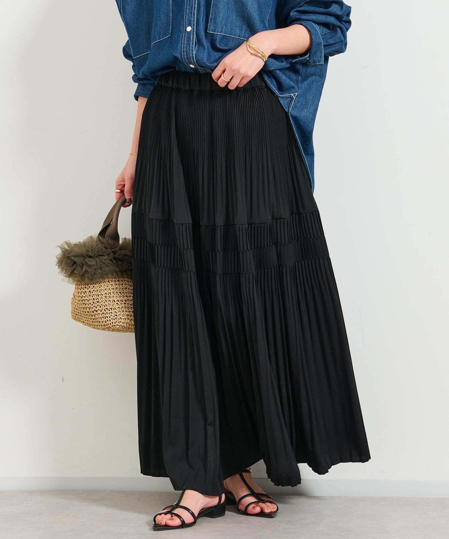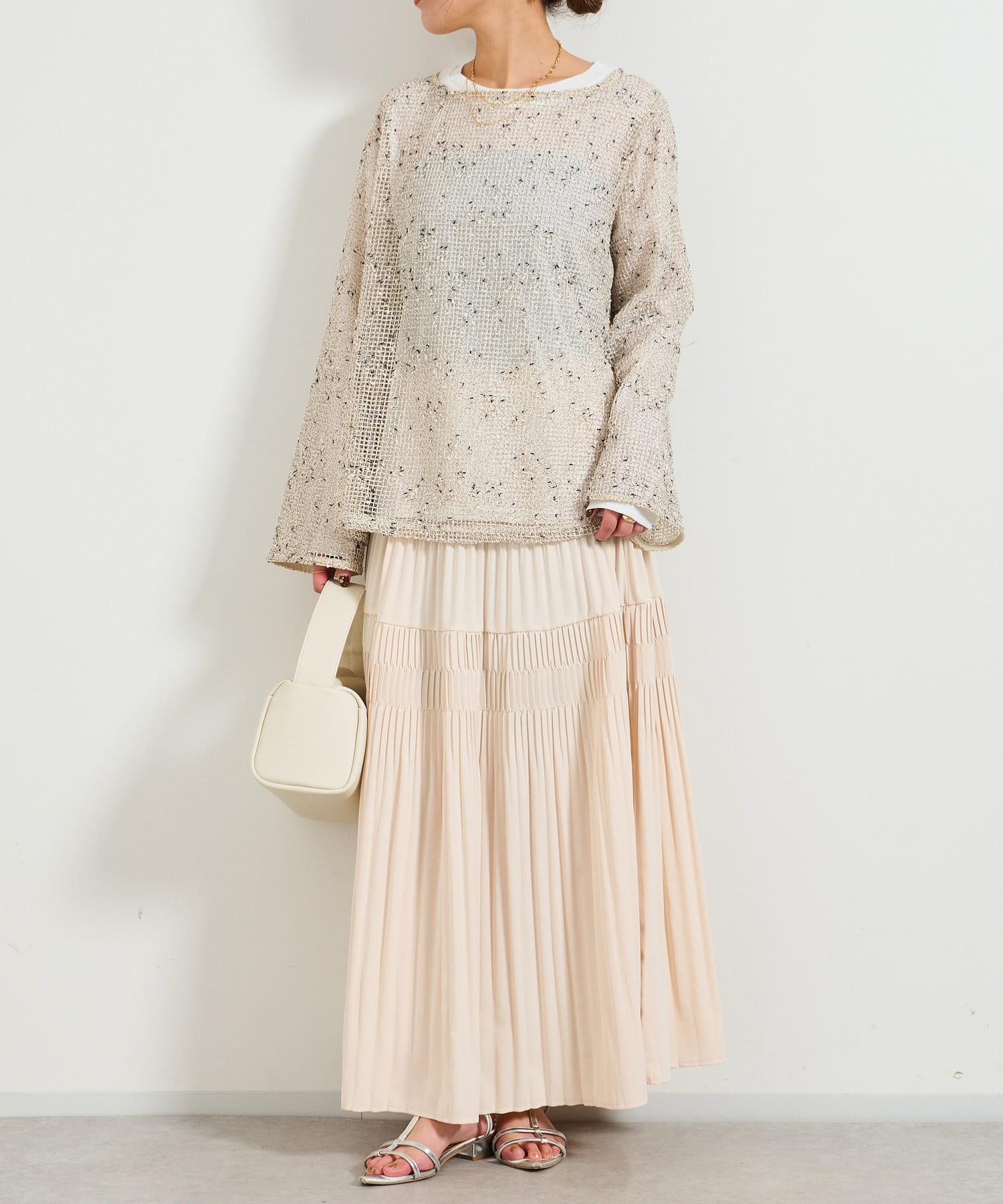 層疊式百褶裙採用柔軟寬鬆的面料。