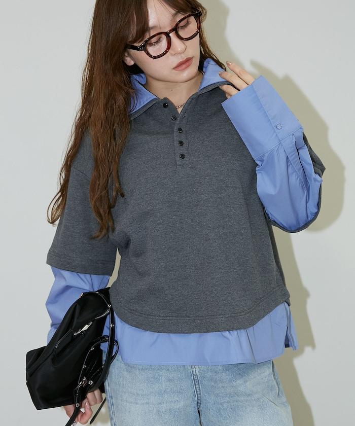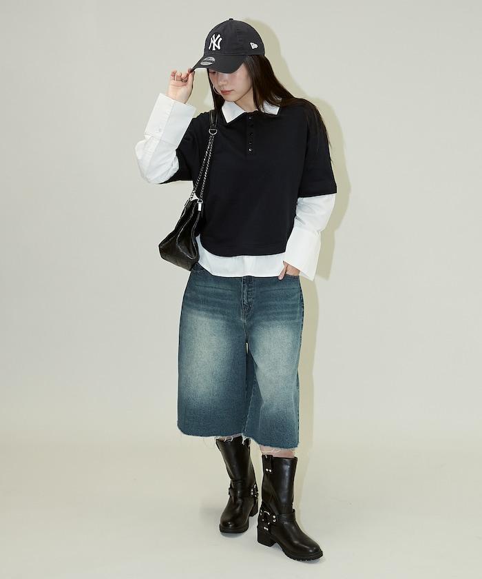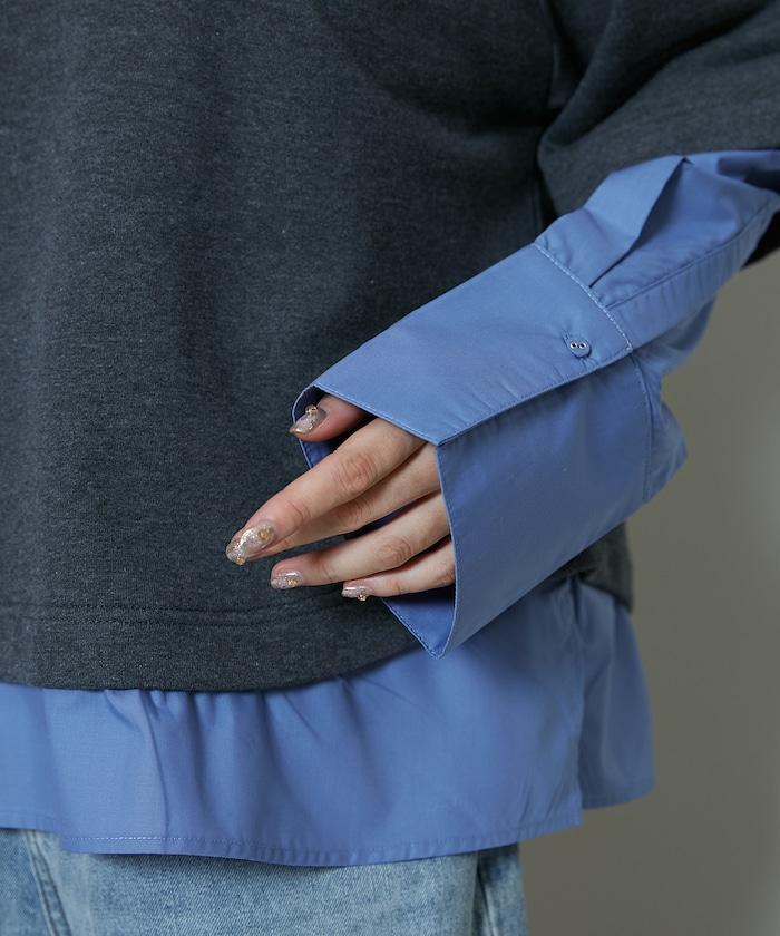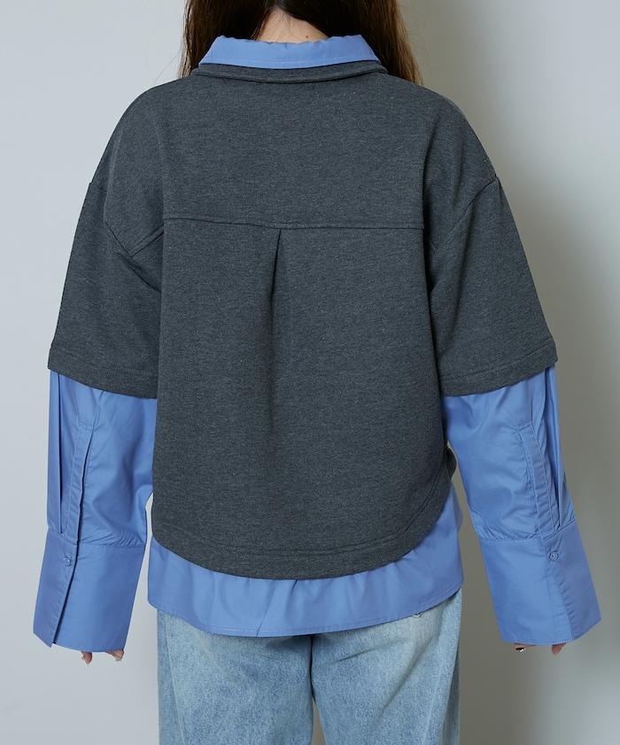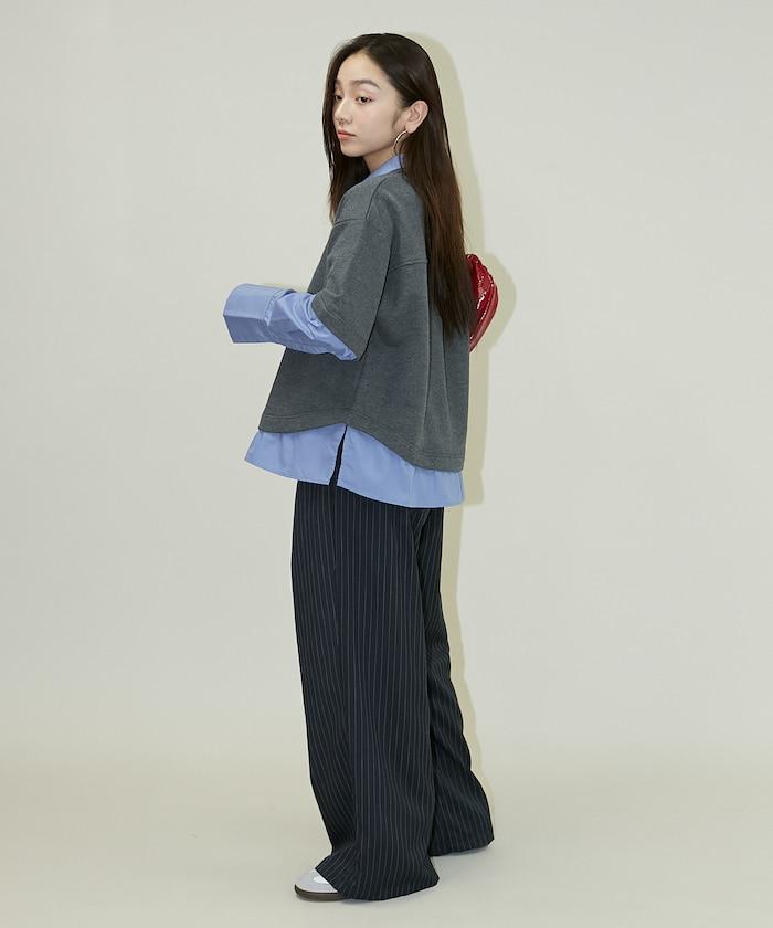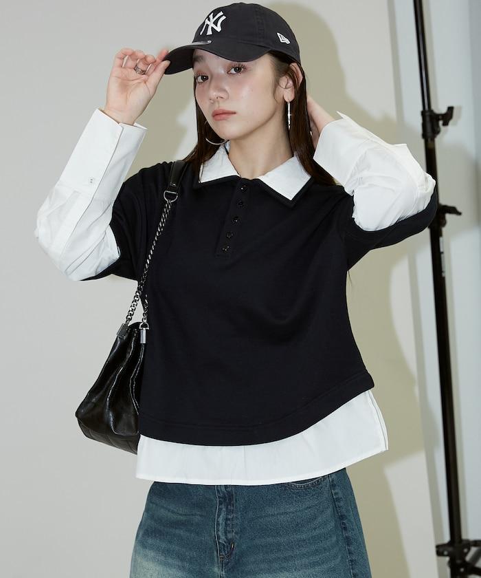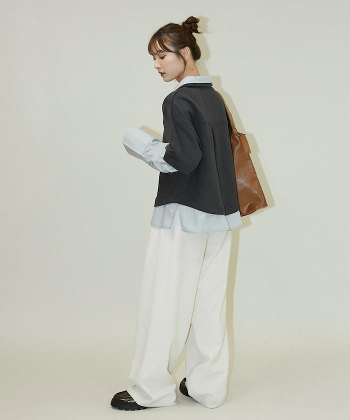 從領口、袖口和下襬探出的襯衫面料,營造出層疊設計的層次感。
