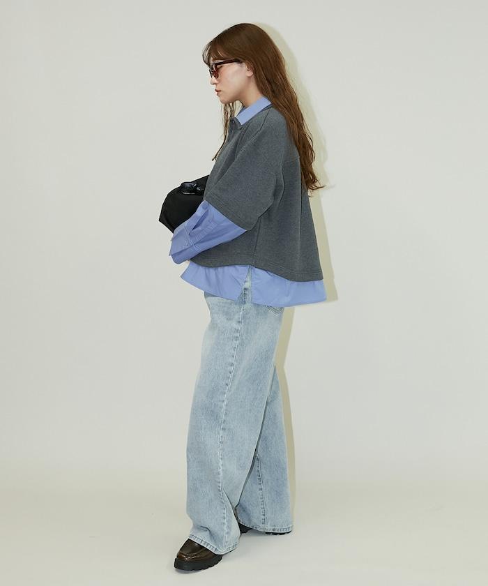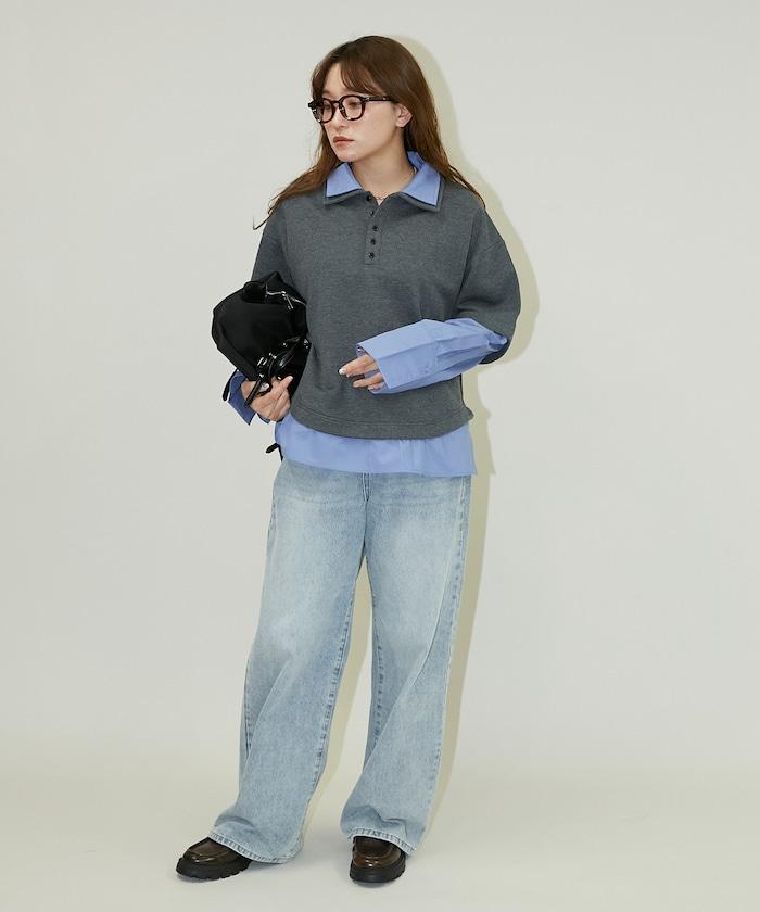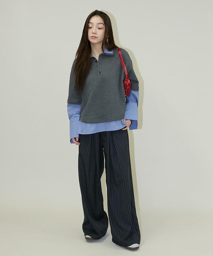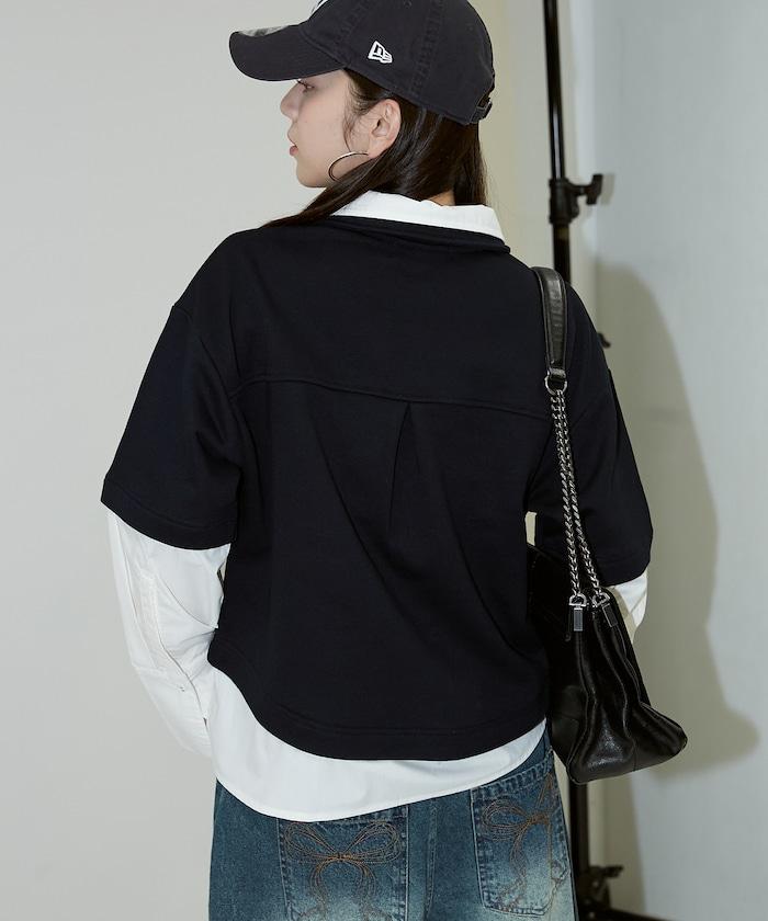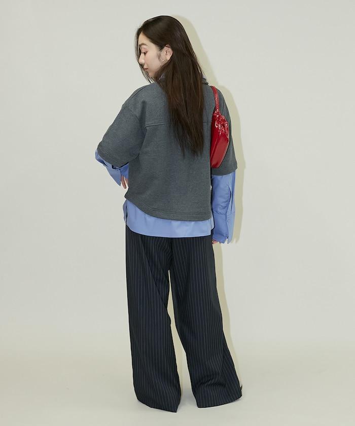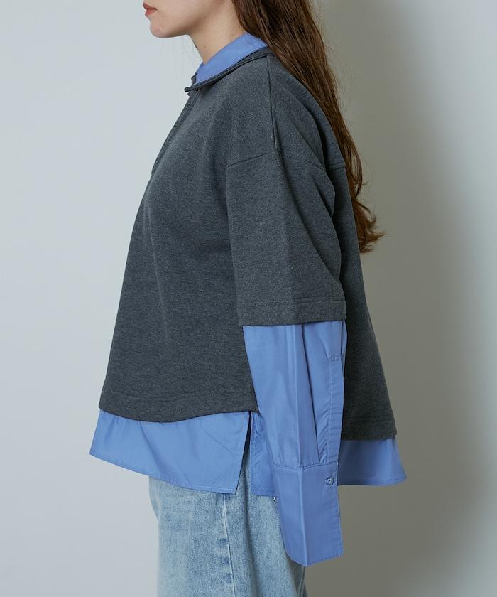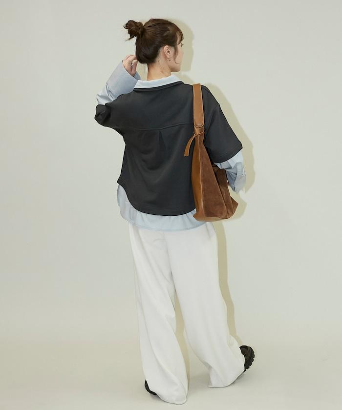 從領口、袖口和下襬探出的襯衫面料,營造出層疊設計的層次感。