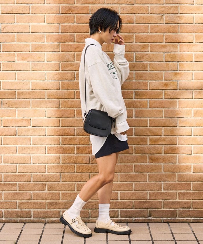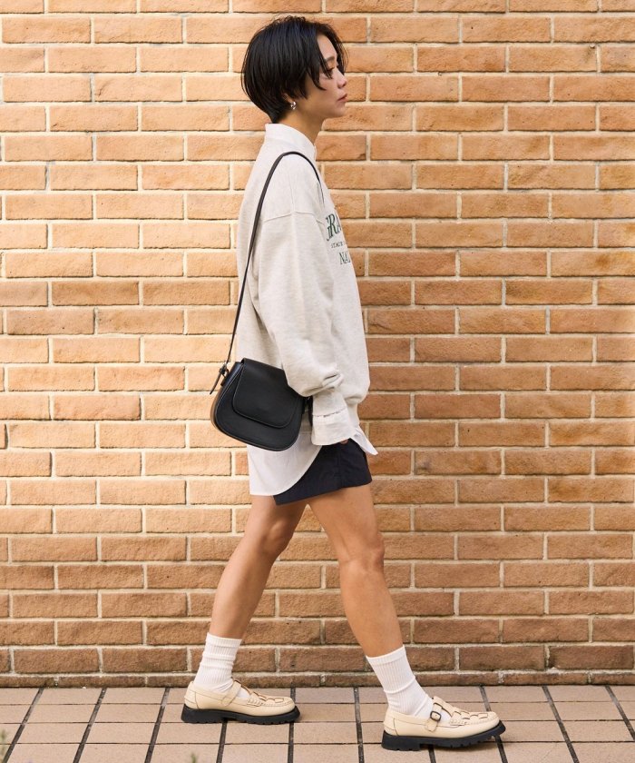 也是彩色和圖案下裝的絕佳搭配,如格紋超短裙◎。