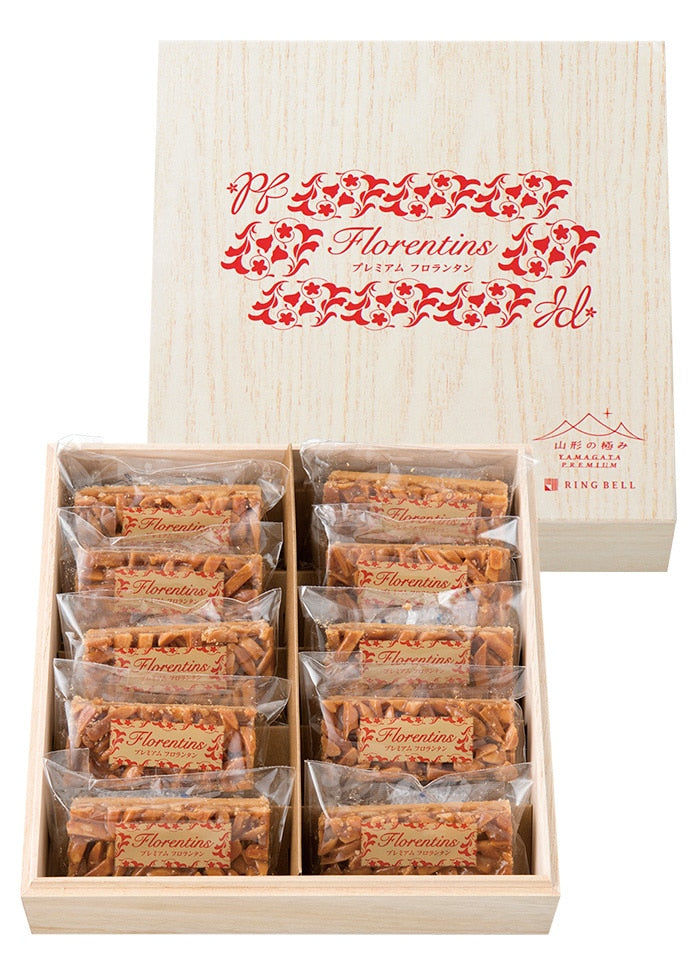 佛羅倫薩餅據說是由文藝復興時期從意大利嫁到法國的凱瑟琳-德-美第奇引進的。餅乾麵糰經過烘烤,上面覆蓋著焦糖杏仁片和其他成分。山形縣一家受歡迎的餐館所擁有的糕點店ESCARGOT的佛羅倫薩餅,是使用精心挑選的原料手工製作的。享受豐富的北海道發酵黃油的豐富味道和鬆脆的口感。