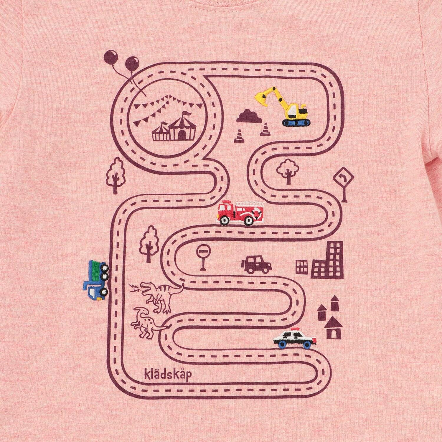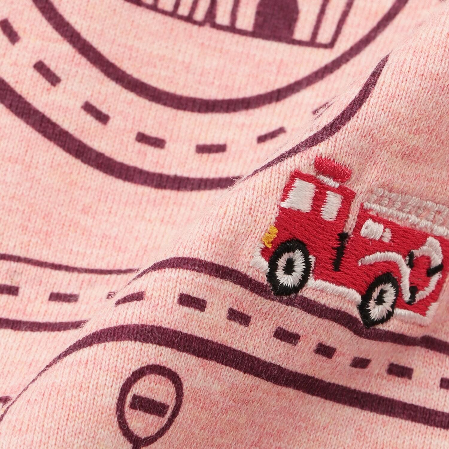這件 T 恤上的工作車和道路圖案非常吸引人。