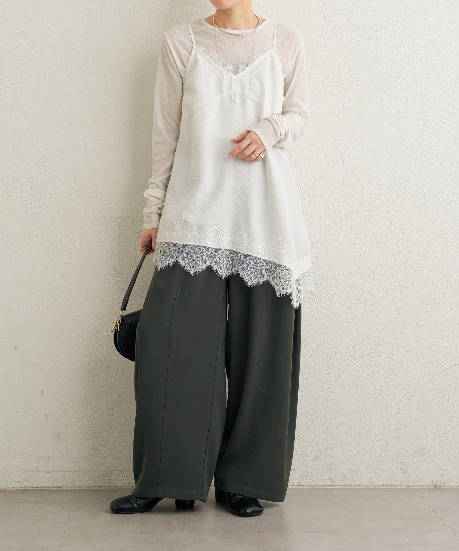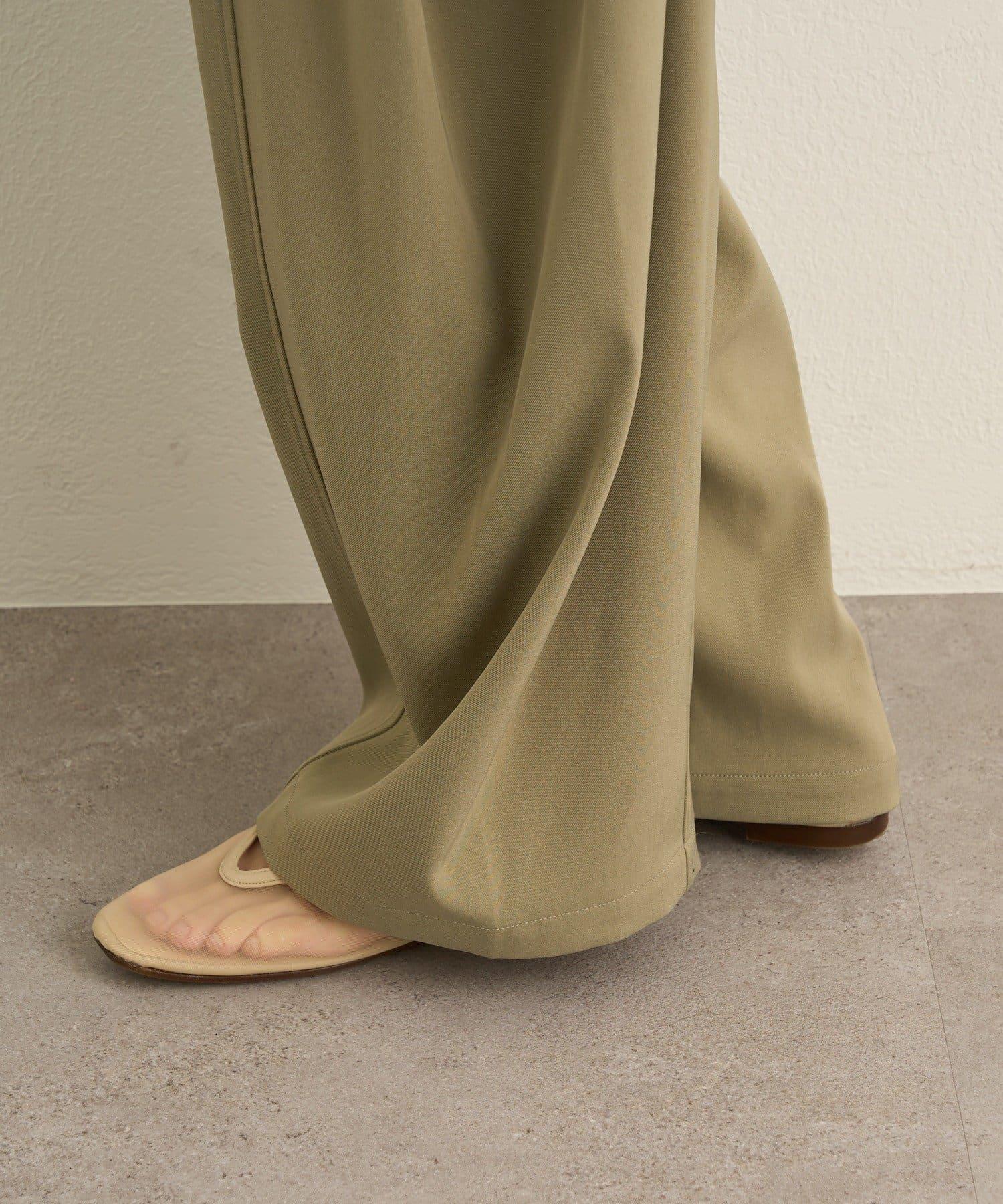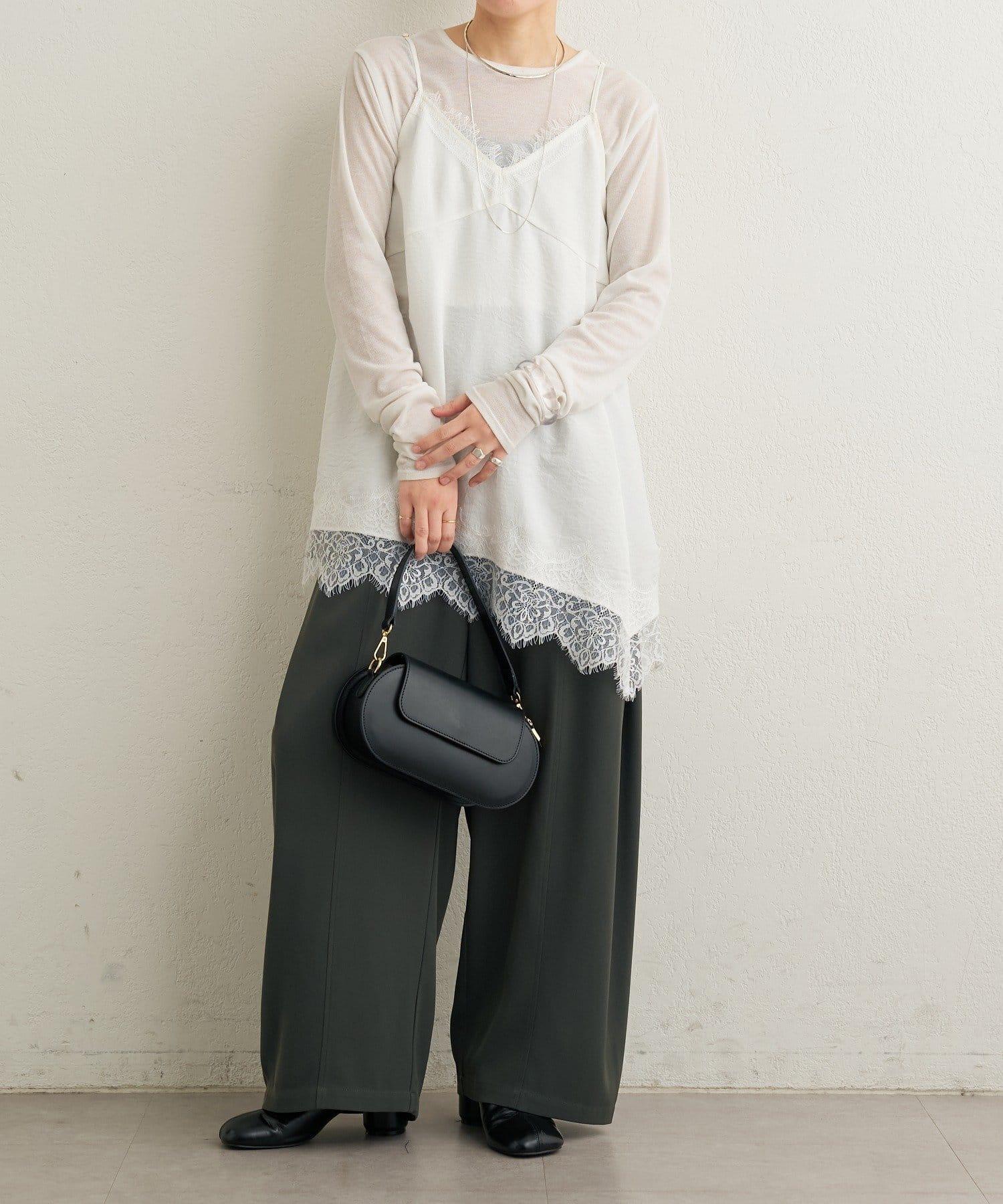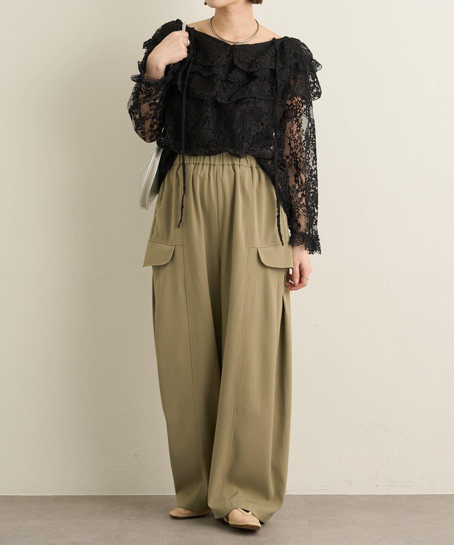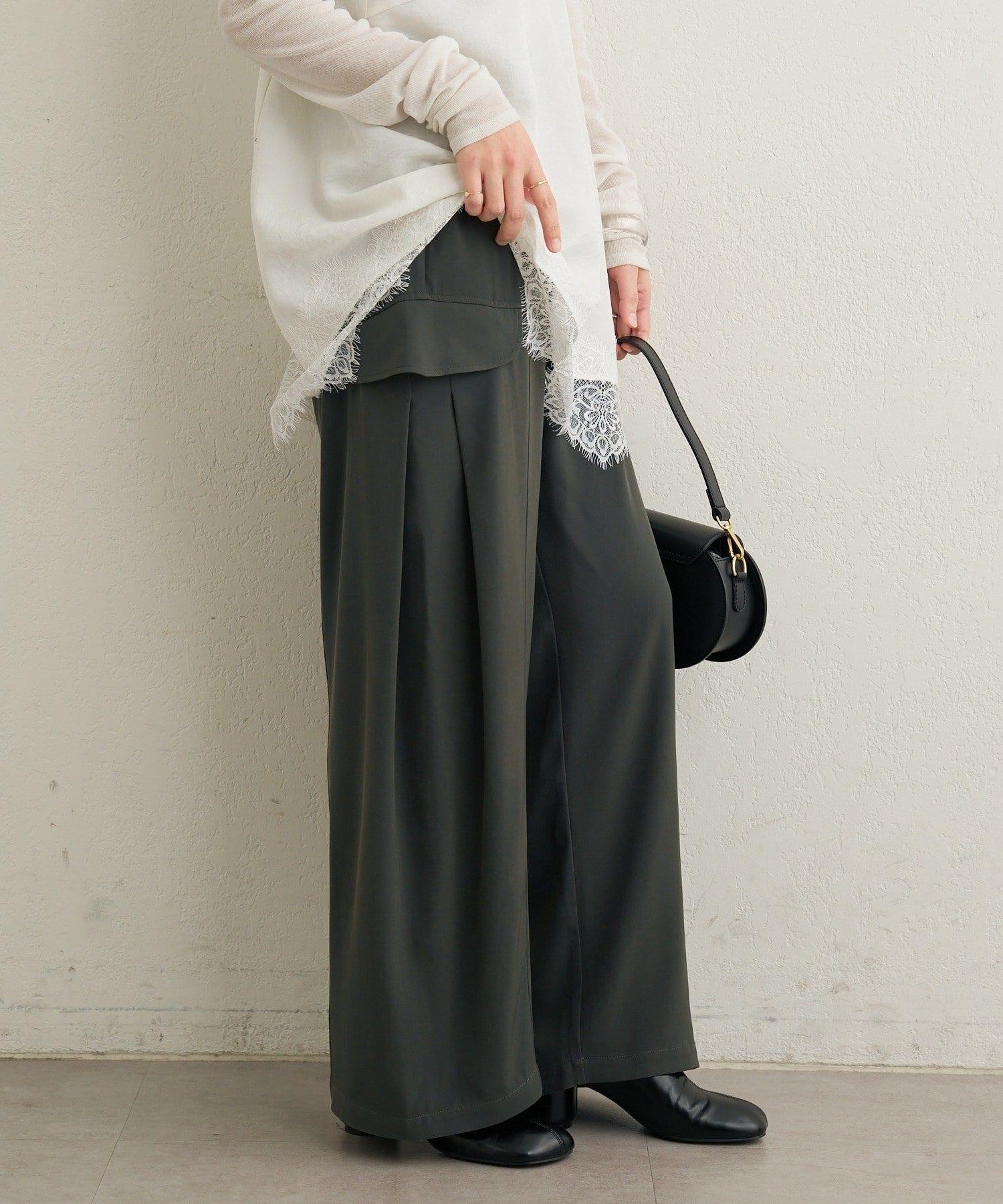 兩側口袋的收褶設計使褲身輪廓更具立體感,營造出女性化的外觀。