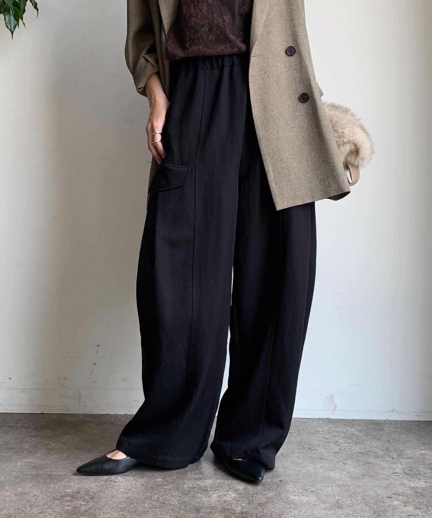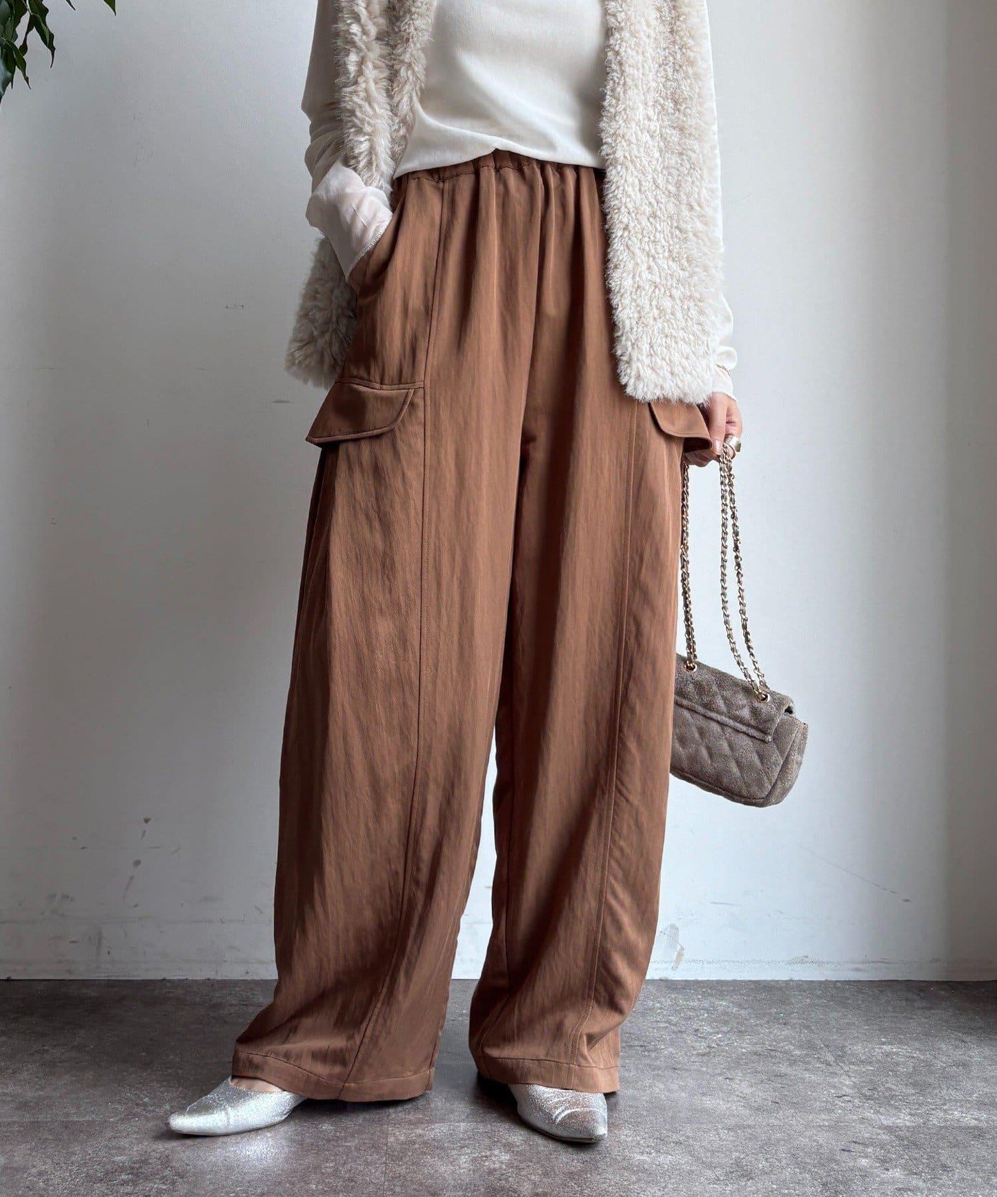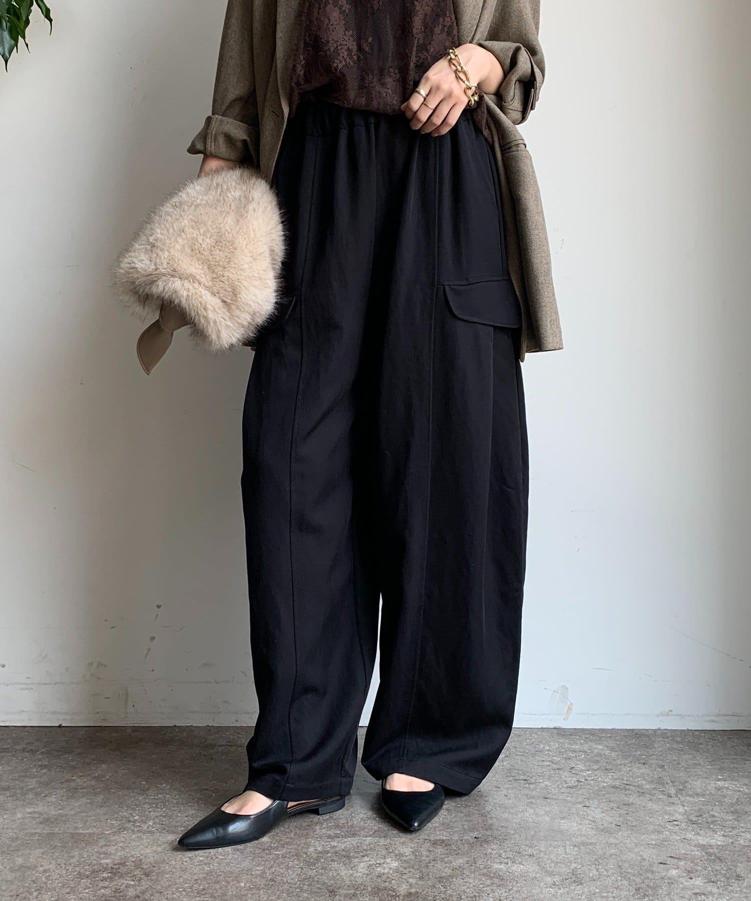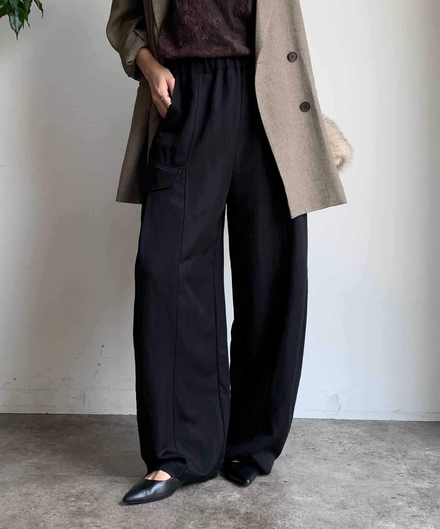 口袋下的褶襉勾勒出具有立體感的弧形輪廓,線條優美,感覺輕鬆。