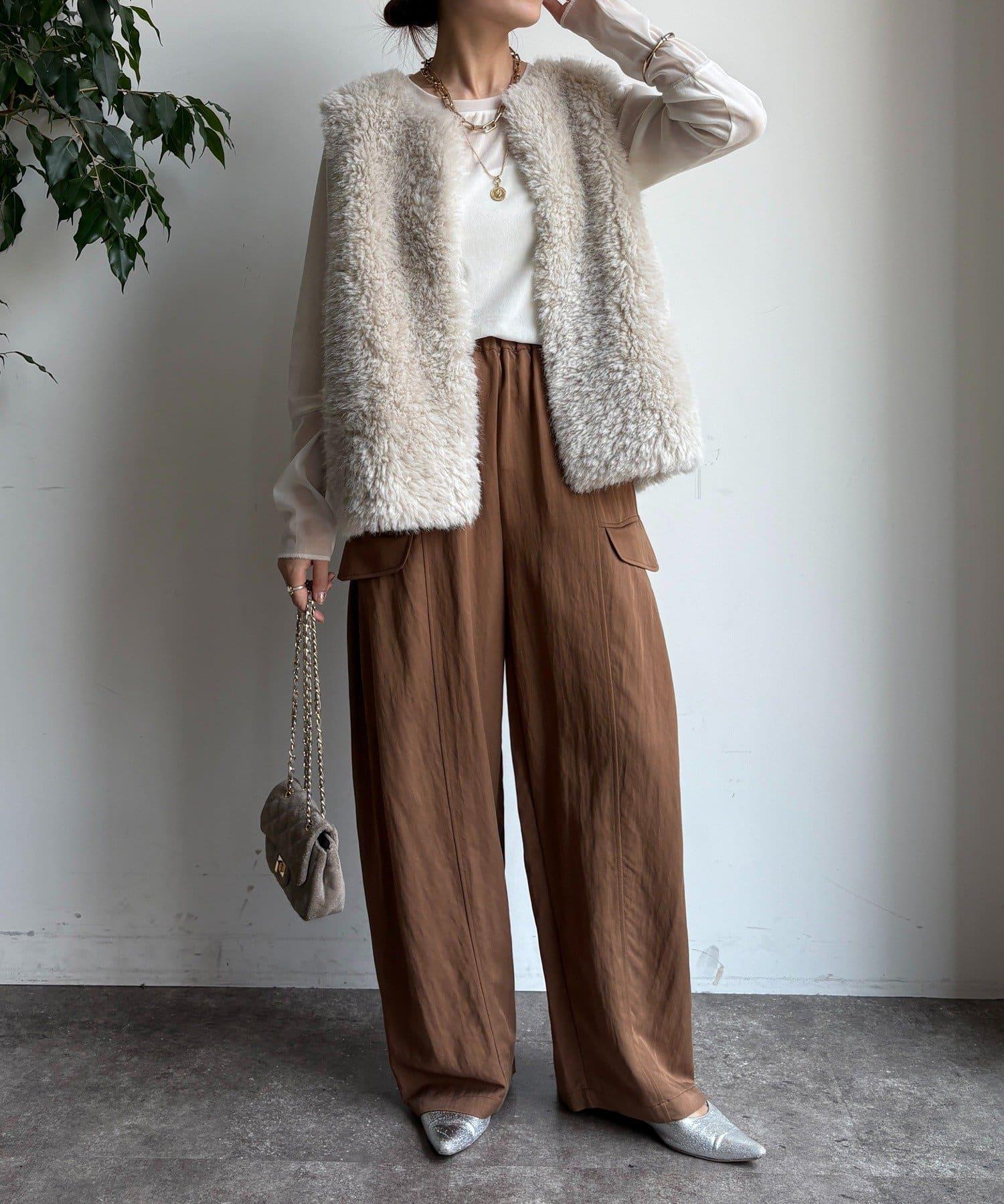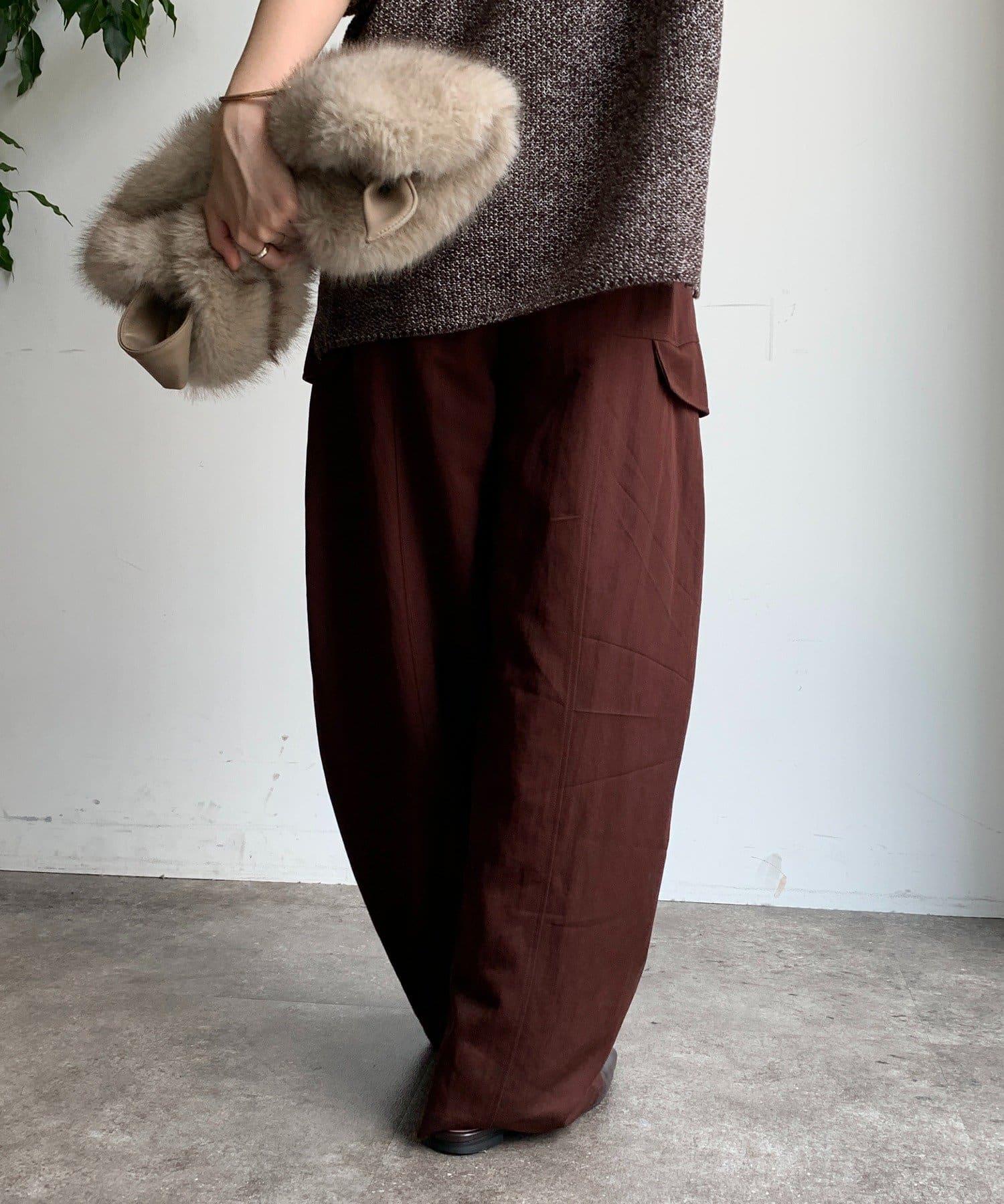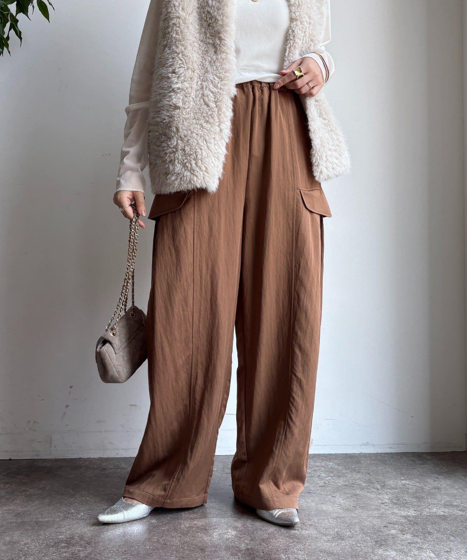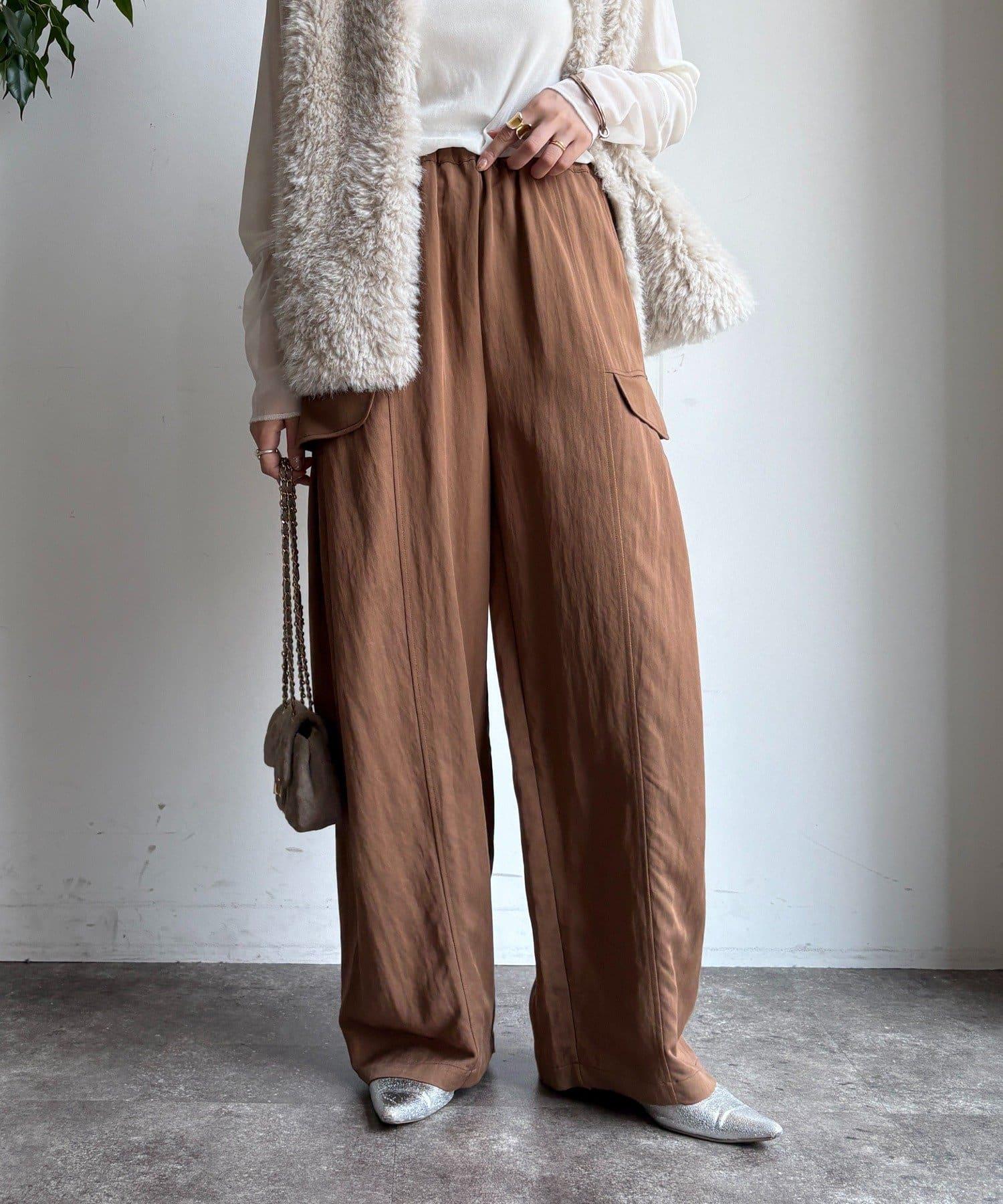 口袋下的褶襉勾勒出具有立體感的弧形輪廓,線條優美,感覺輕鬆。
