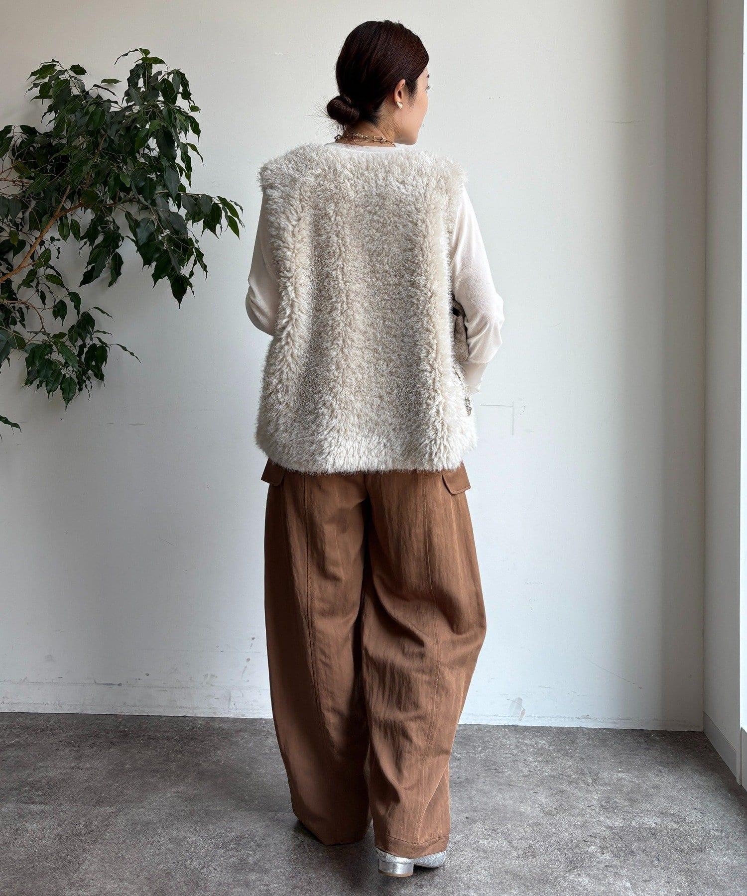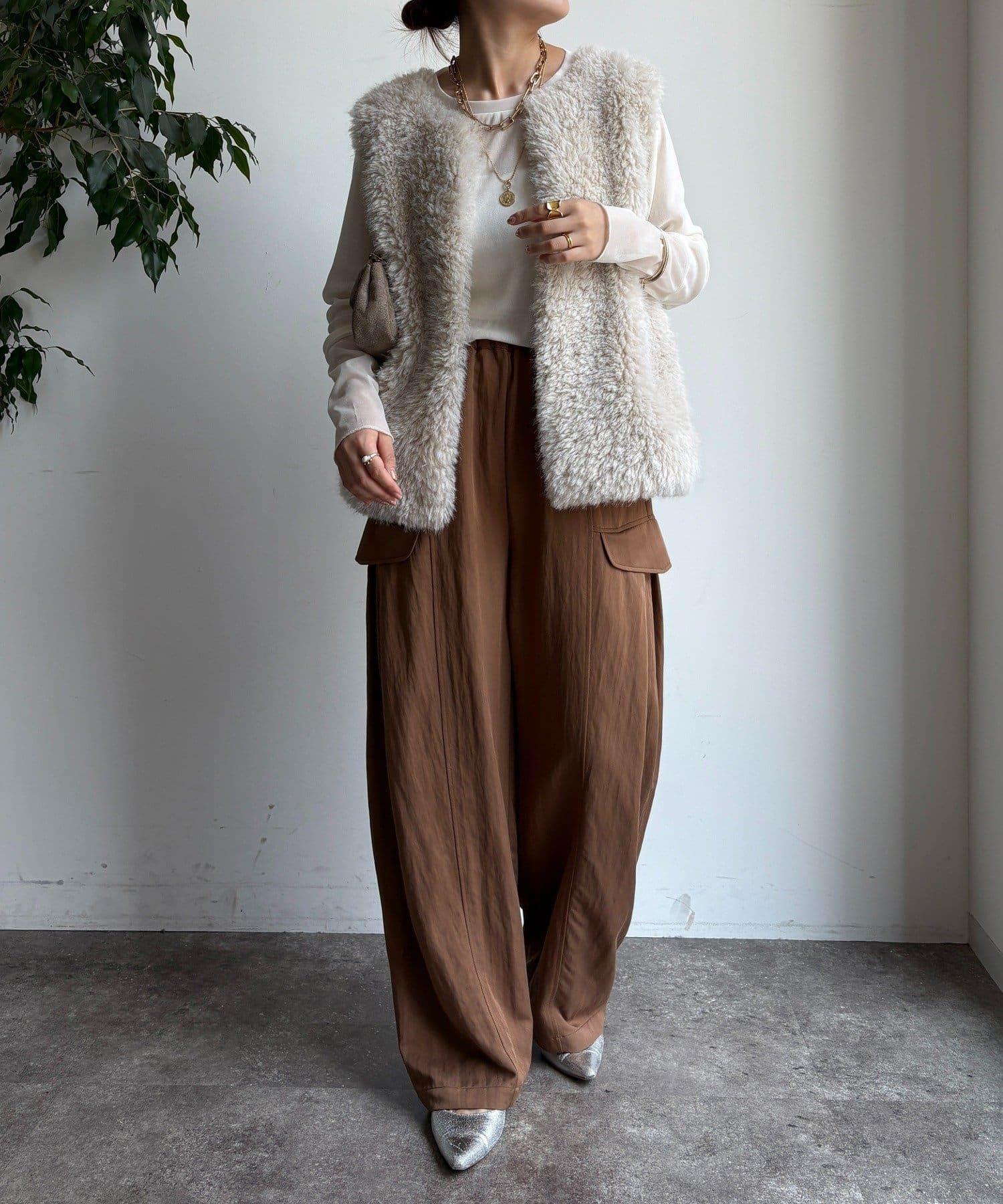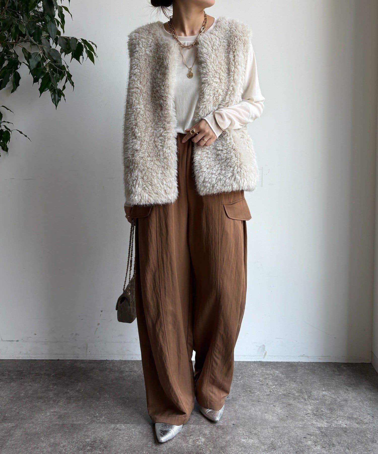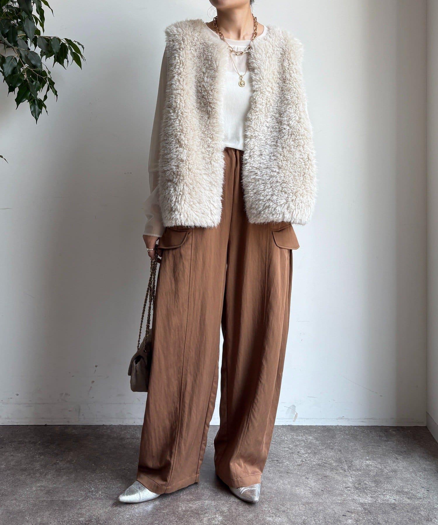 口袋下的褶襉勾勒出具有立體感的弧形輪廓,線條優美,感覺輕鬆。