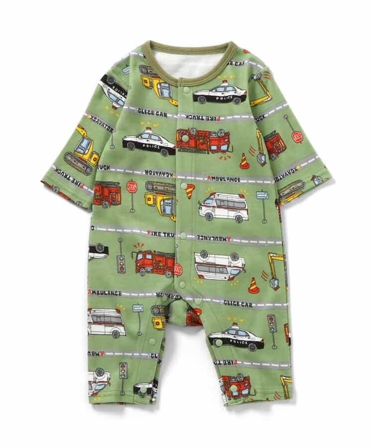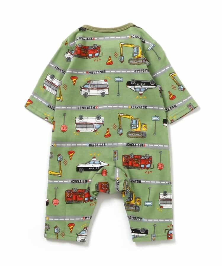 Ampersand 連身裙 "連身裙 Hatakuru Kuruma 邊飾圖案 "非常適合作為小寶寶的禮物或嬰兒洗禮禮物。推薦給喜歡休閒風格的寶寶。