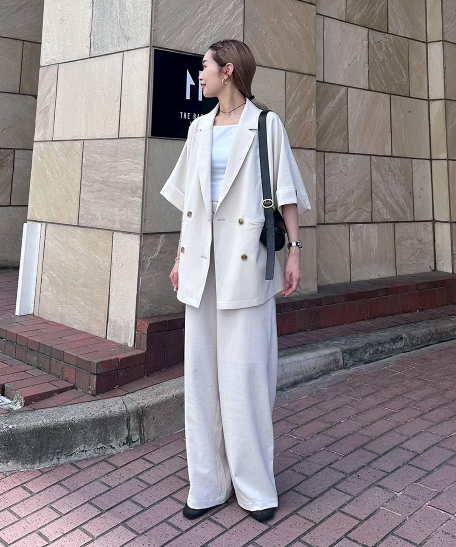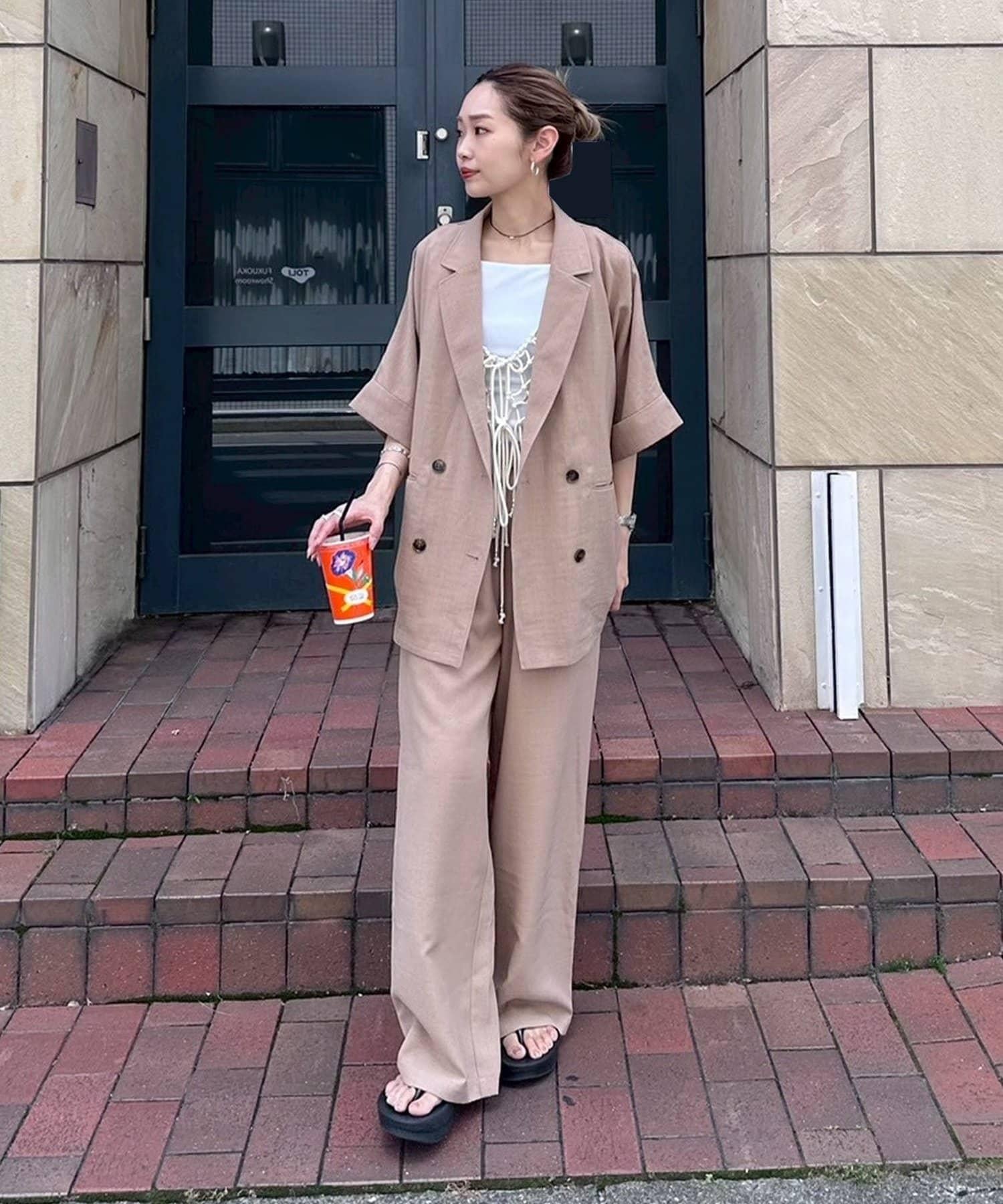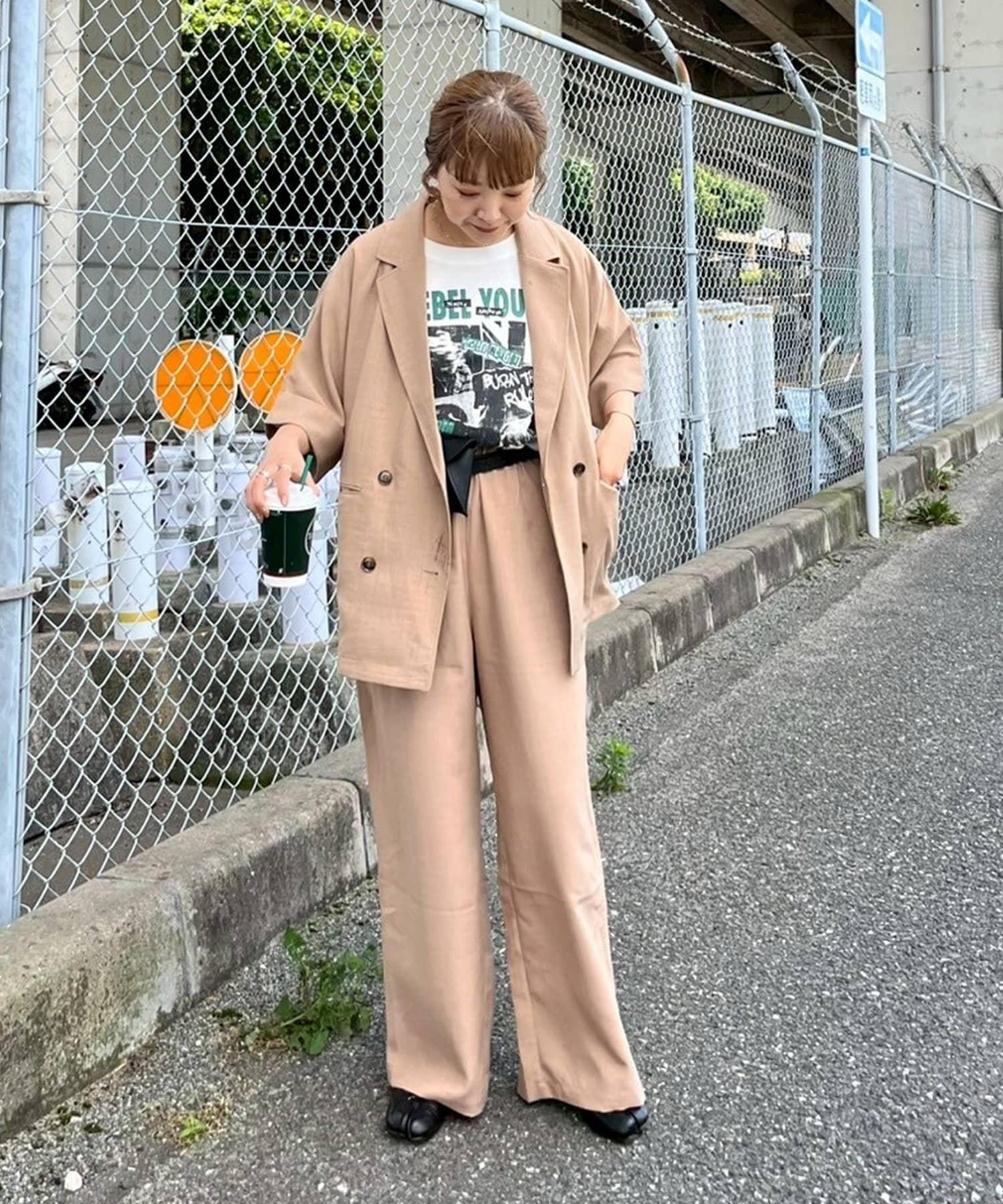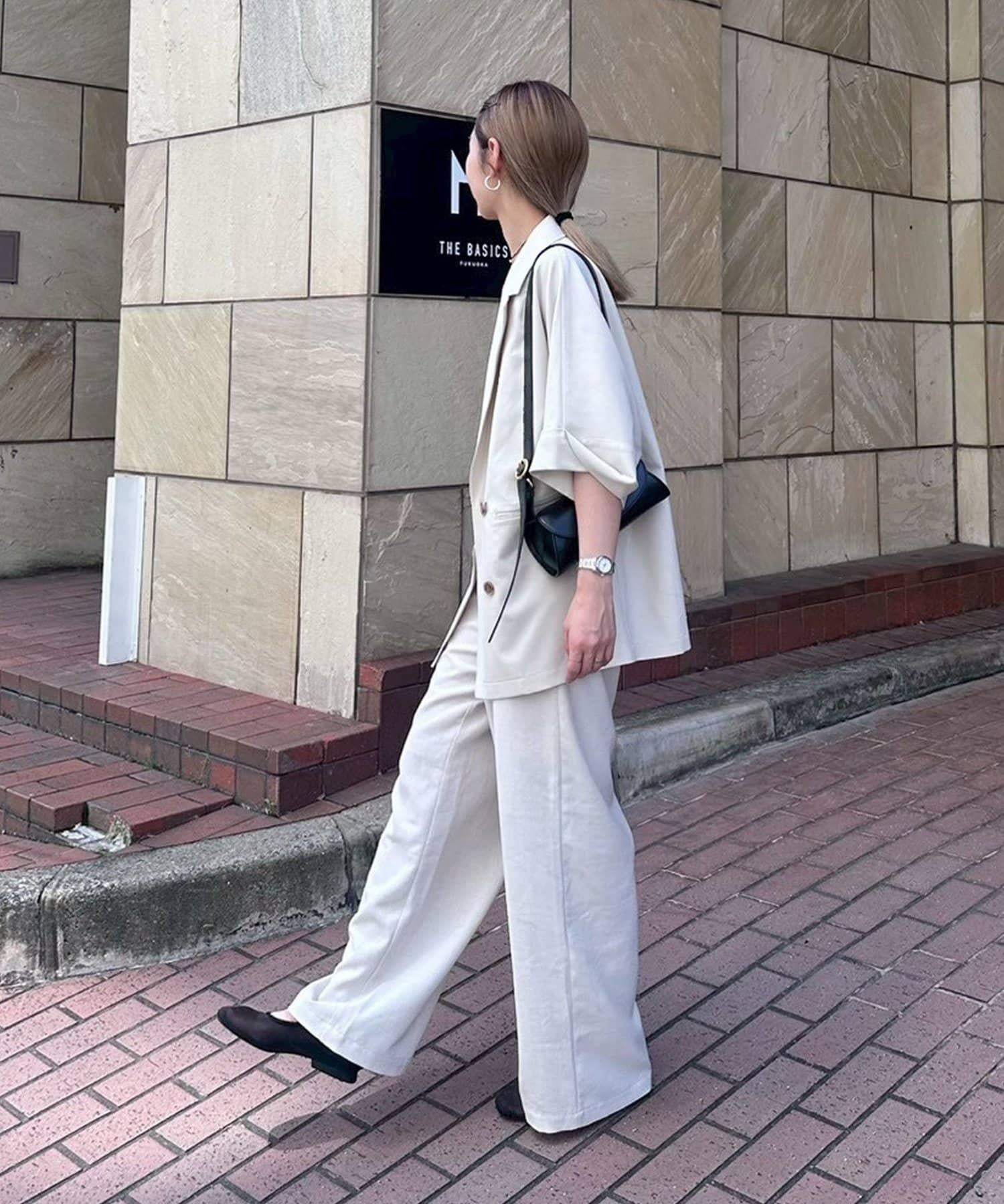 寬大的褲裝,與夾克( )搭配出完美的套裝風格