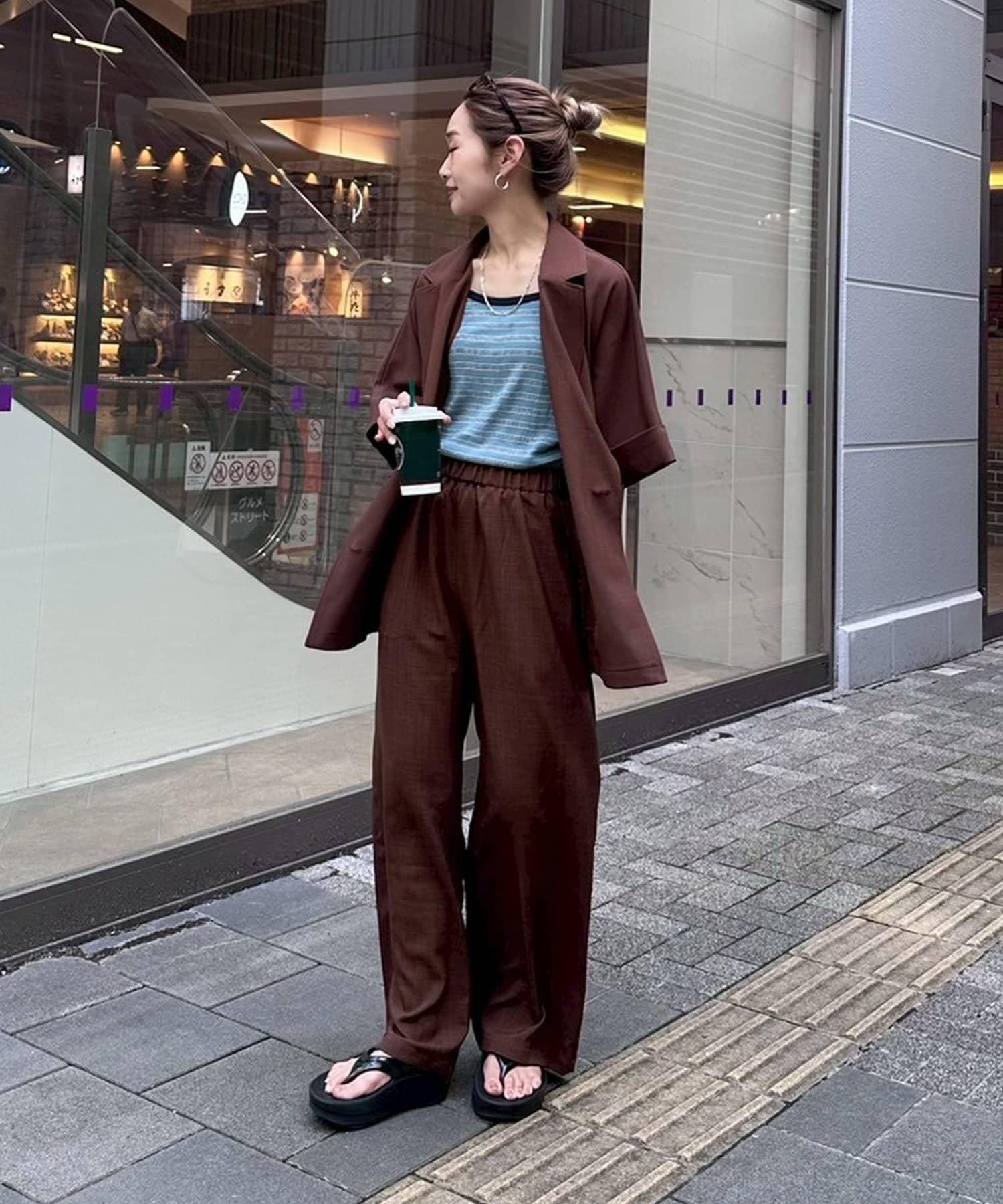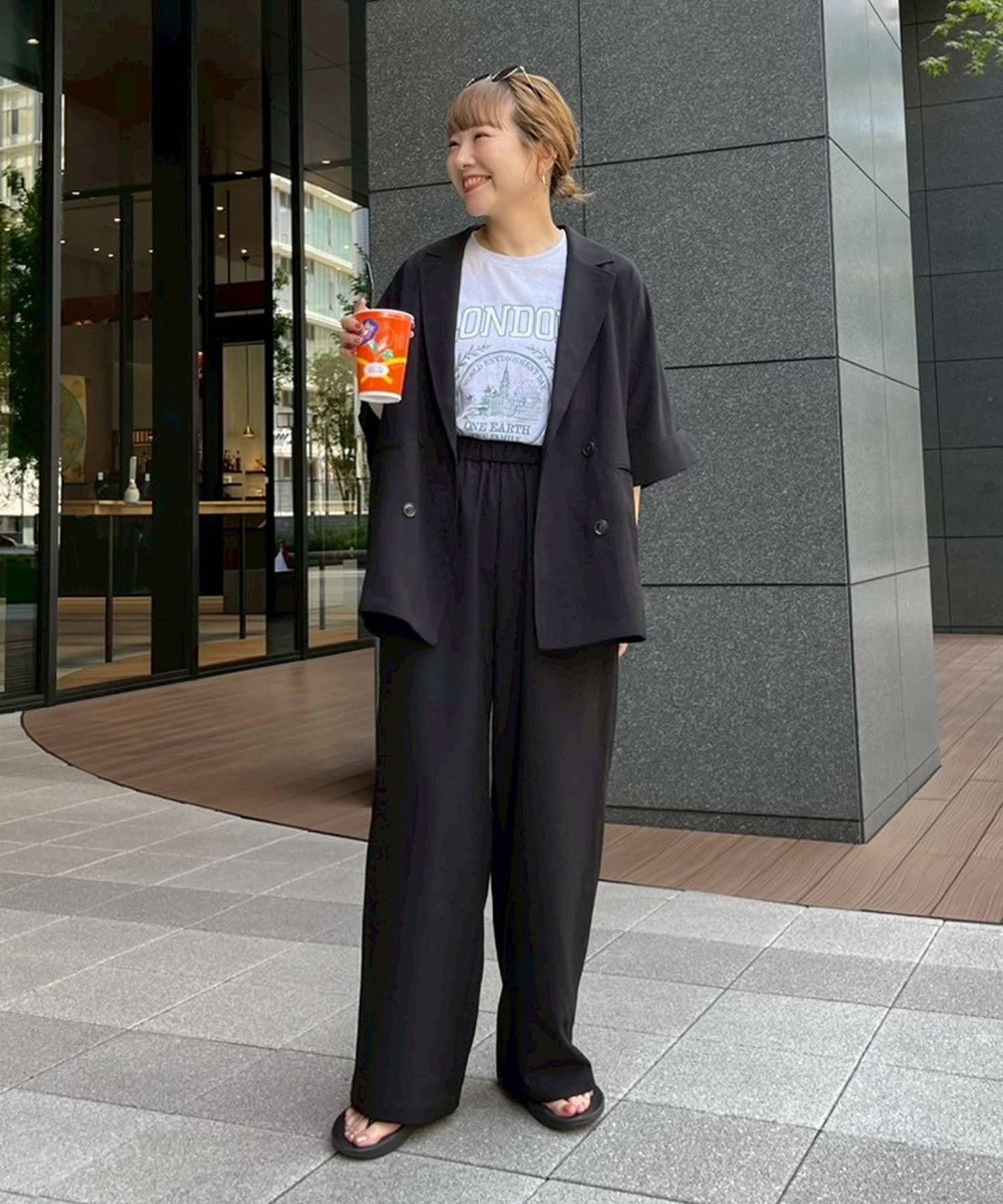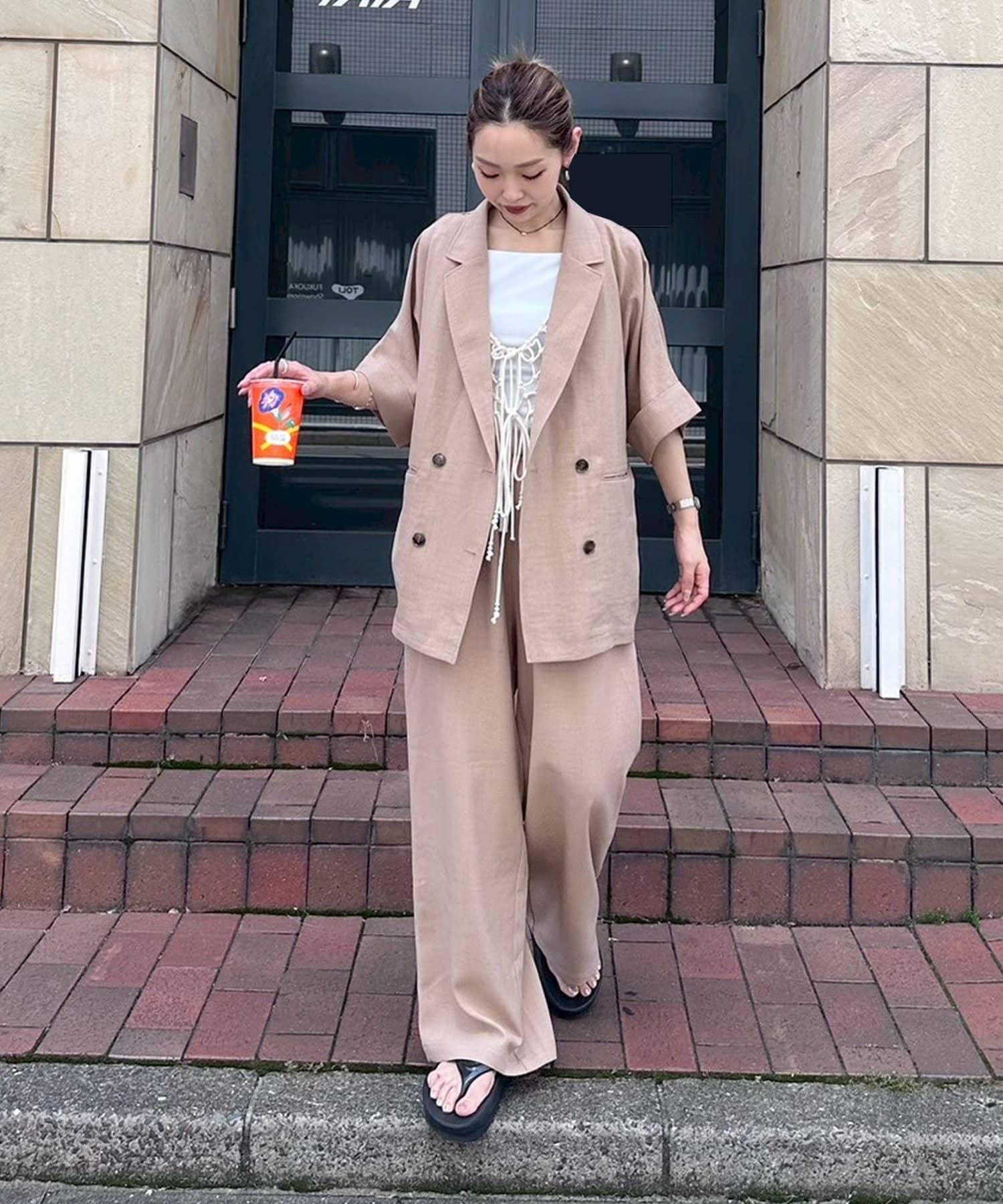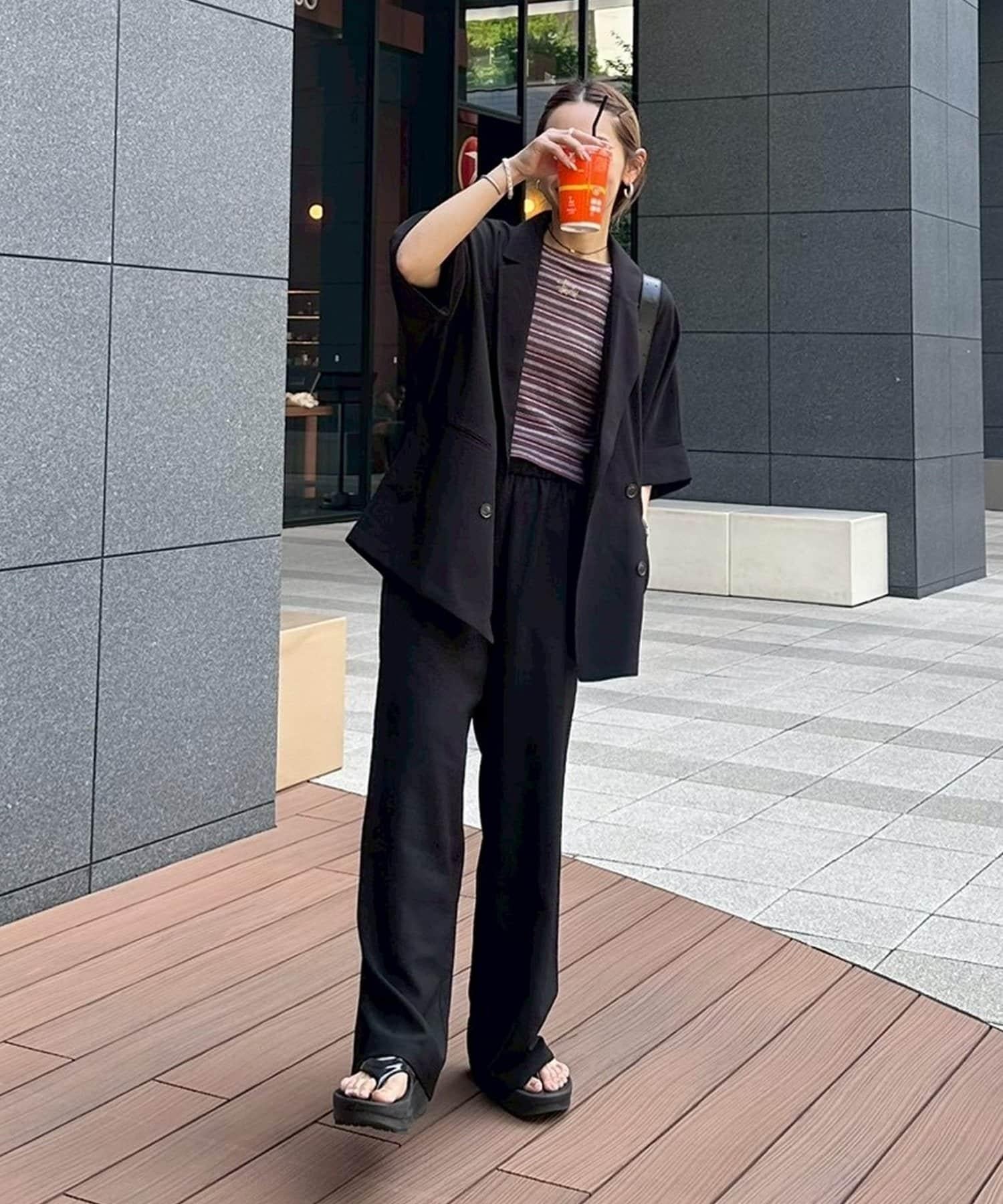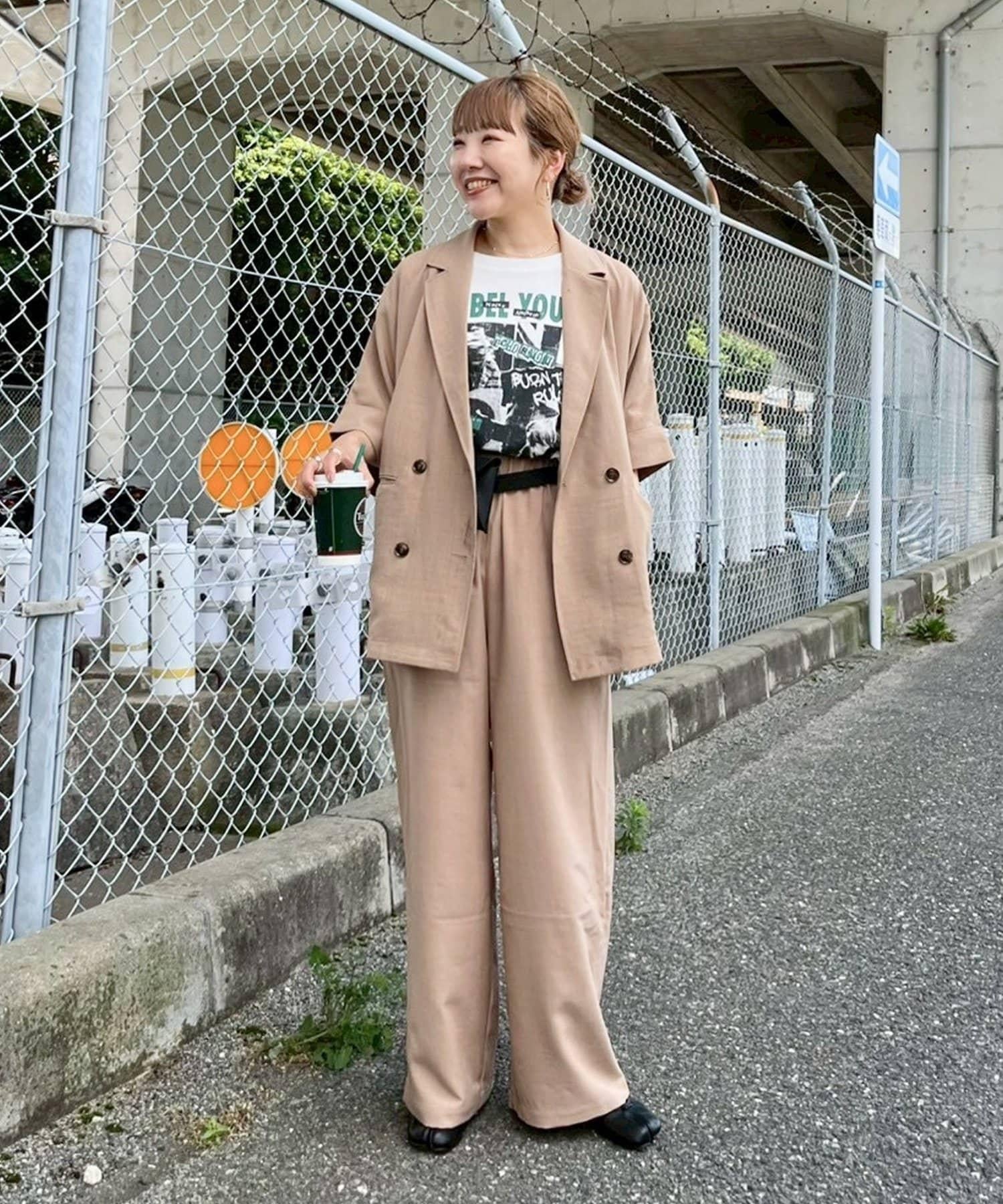 寬大的褲裝,與夾克( )搭配出完美的套裝風格