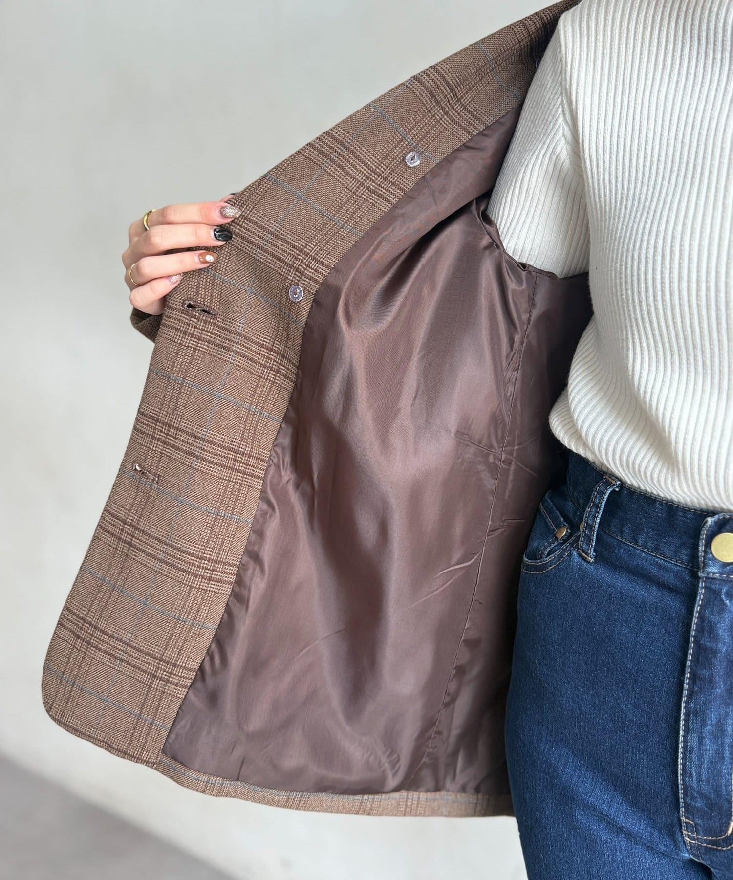 剪裁合體的夾克,金色紐扣增添女性魅力。