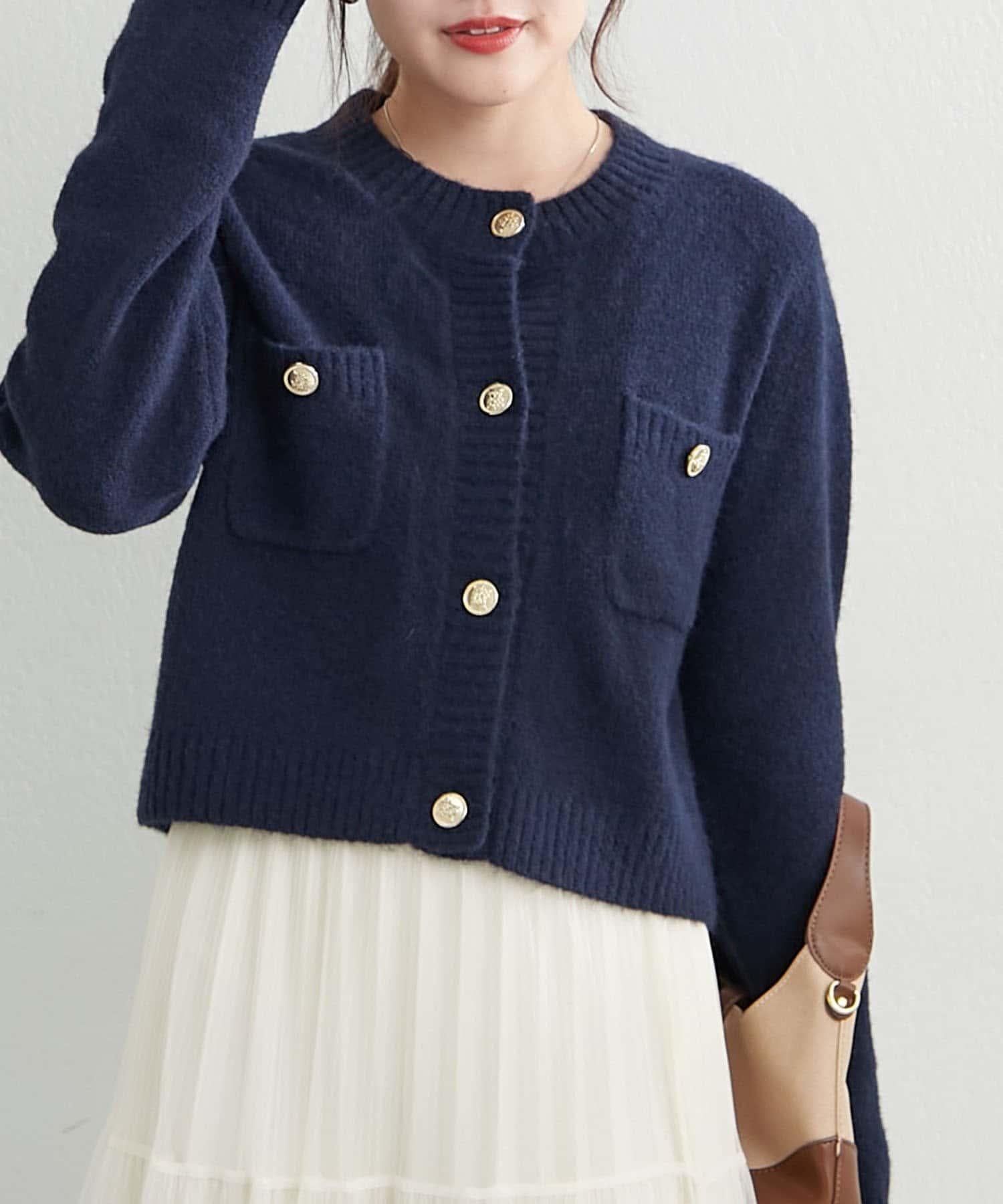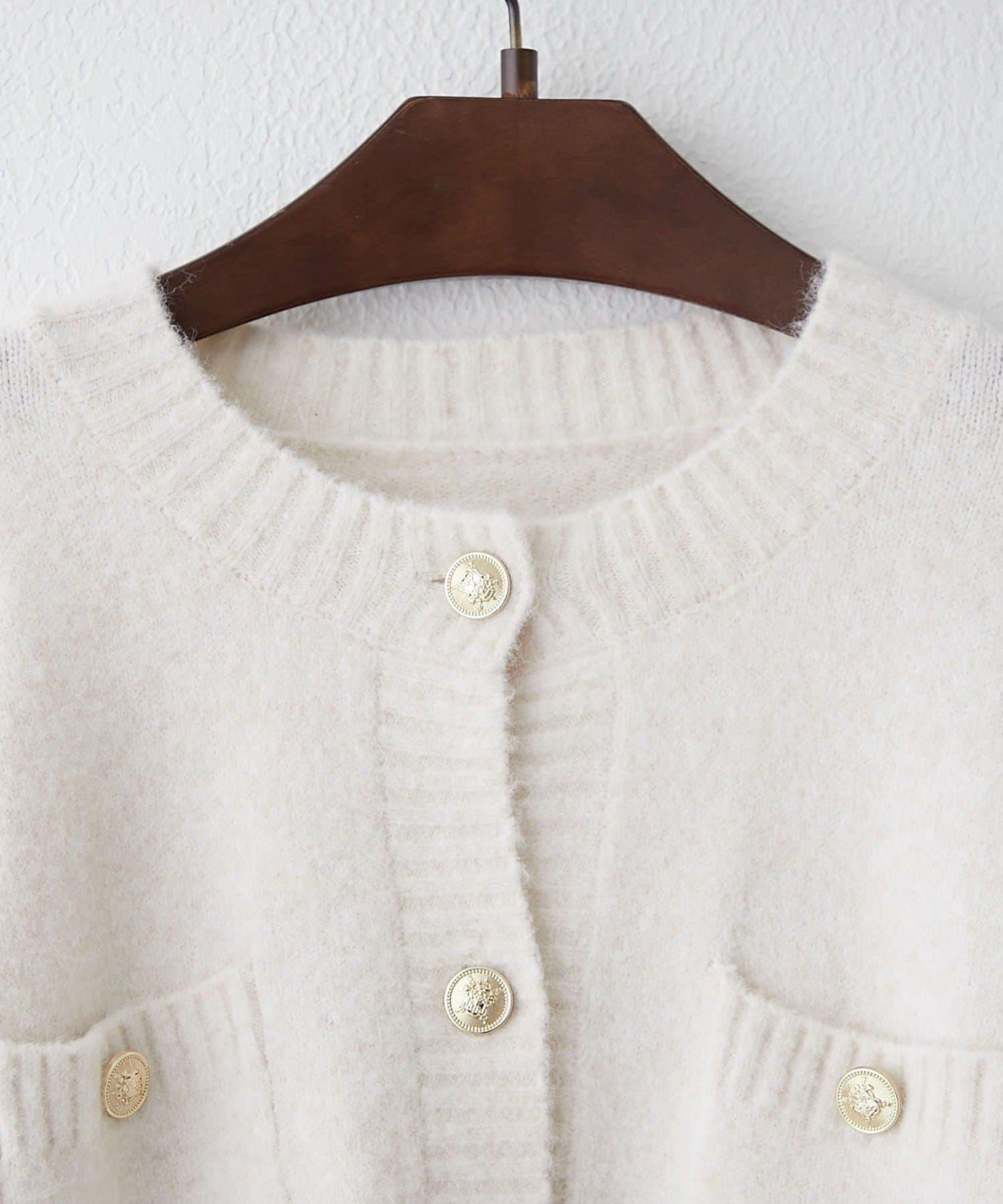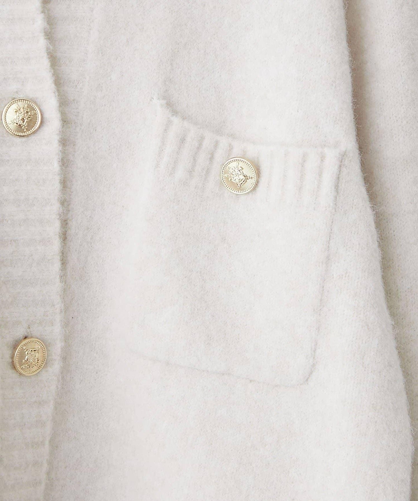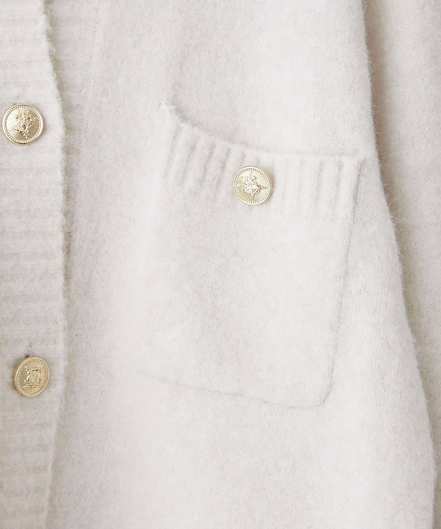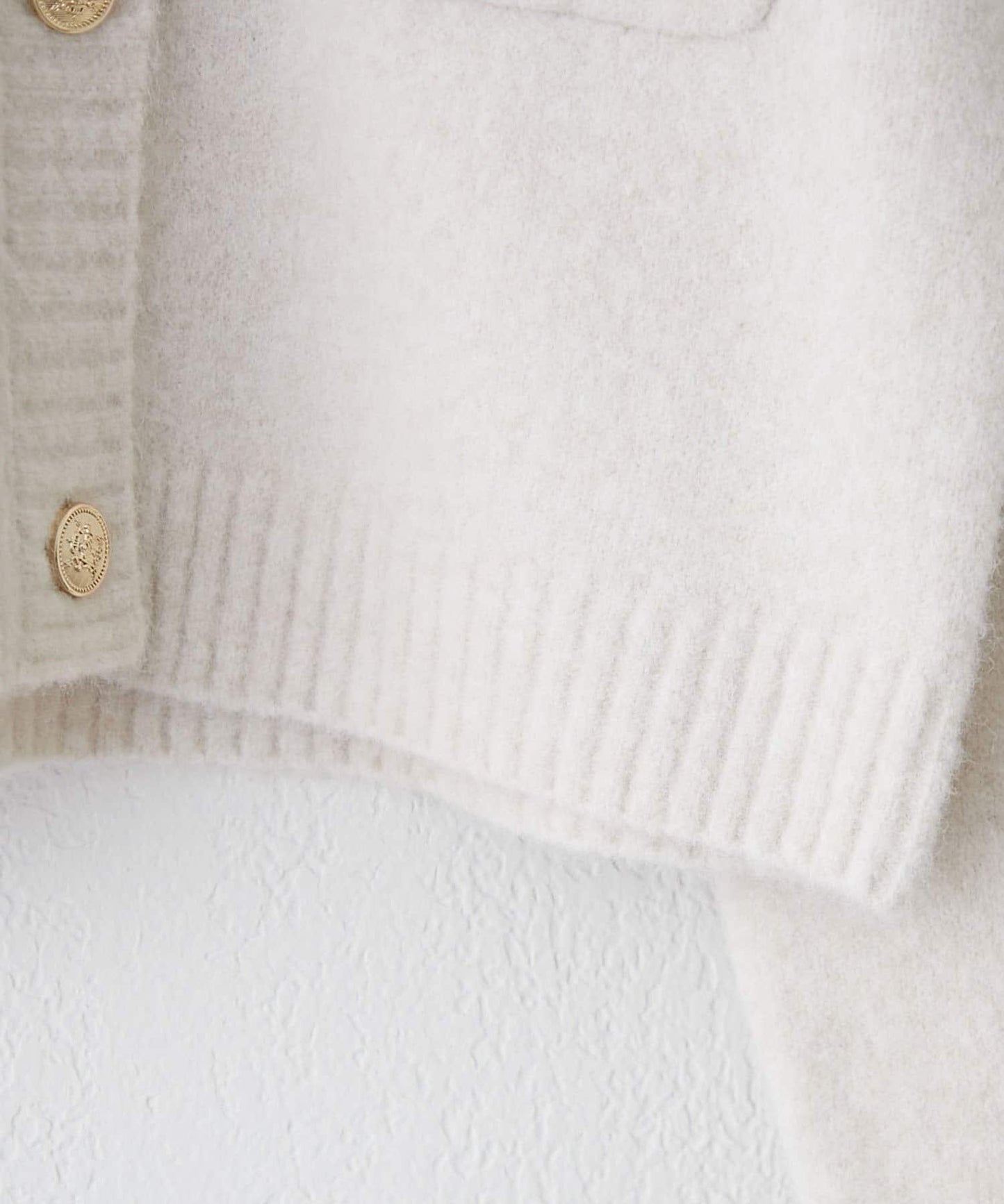 開衫正面的金色紐扣給人一種簡潔的感覺,蓬鬆的面料也不會刺痛皮膚。