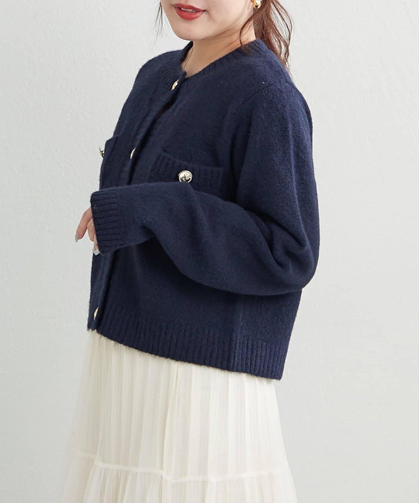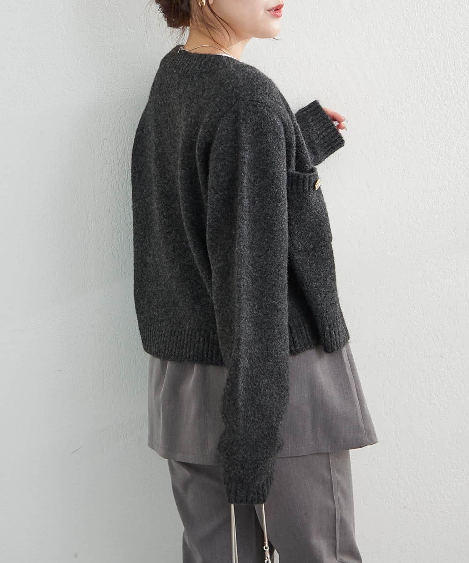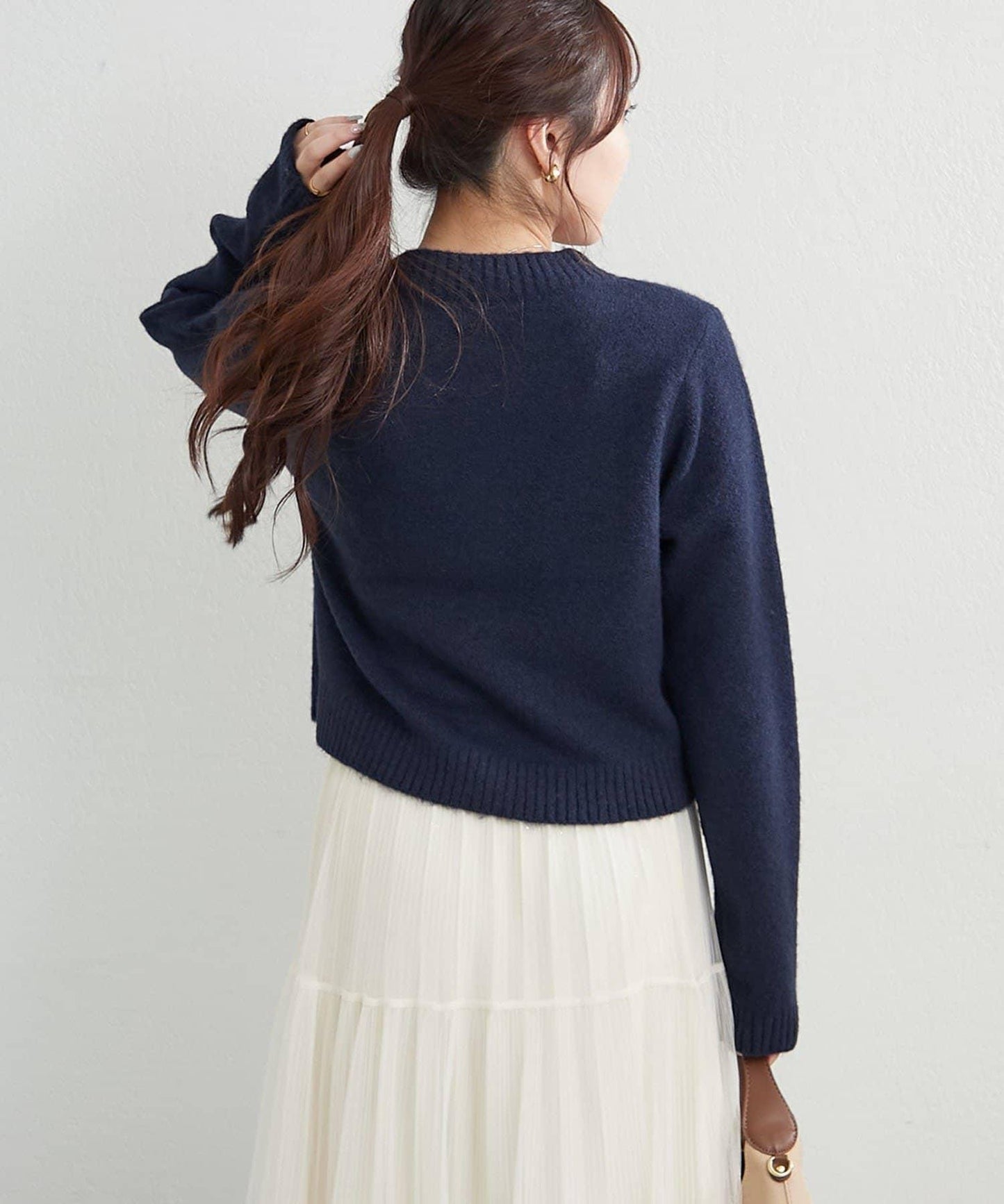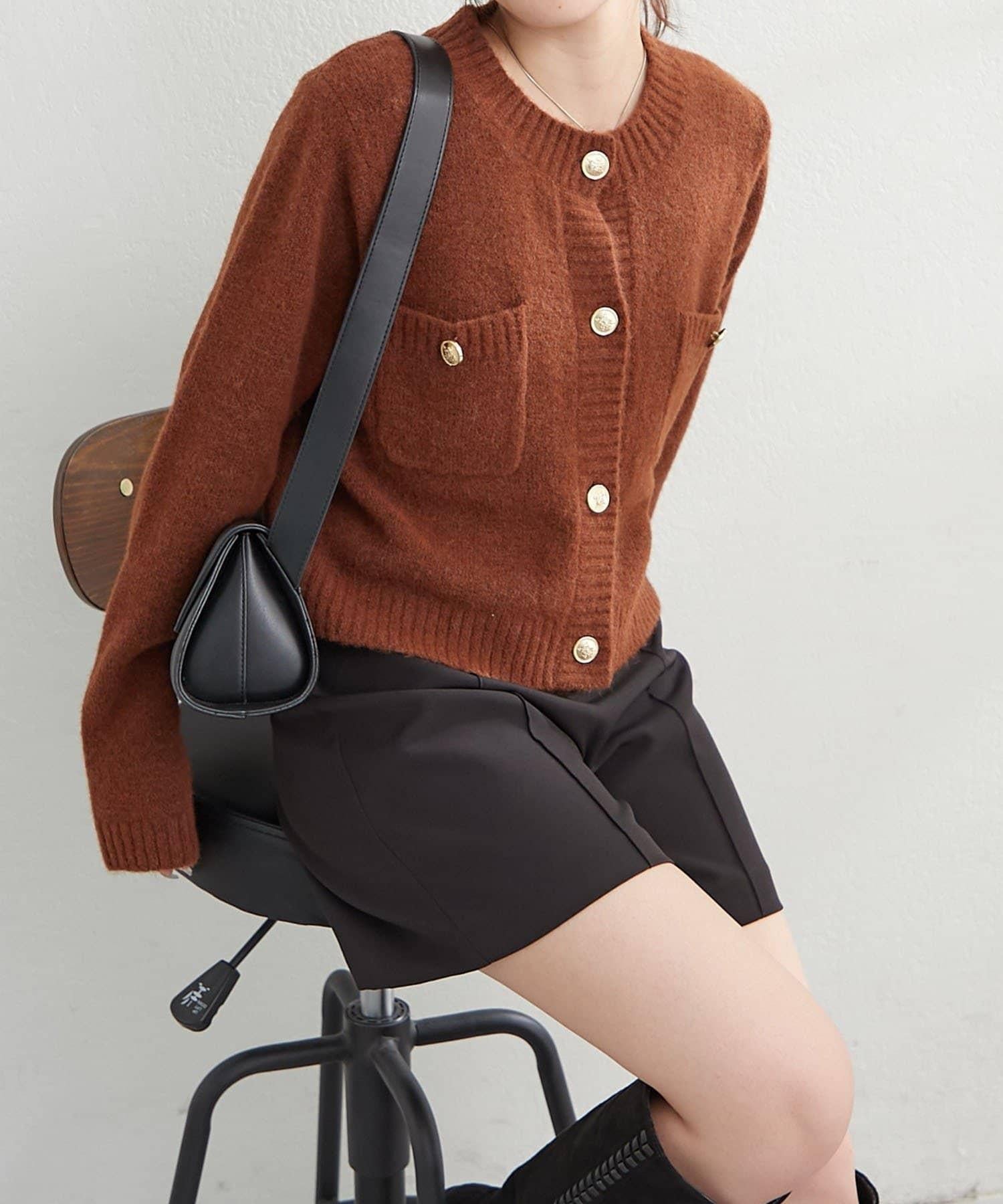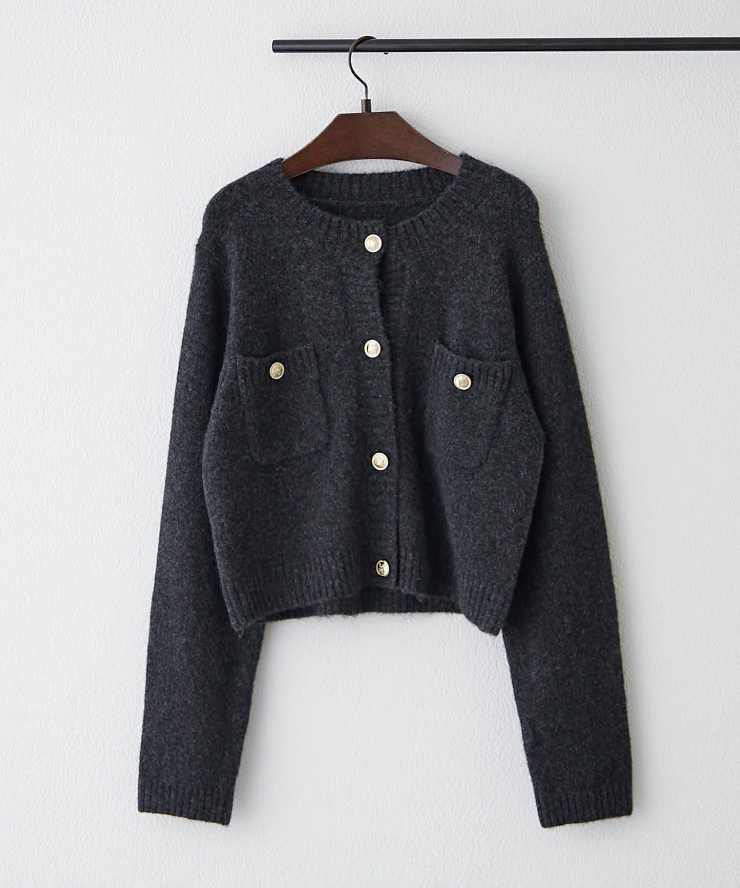 開衫正面的金色紐扣給人一種簡潔的感覺,蓬鬆的面料也不會刺痛皮膚。