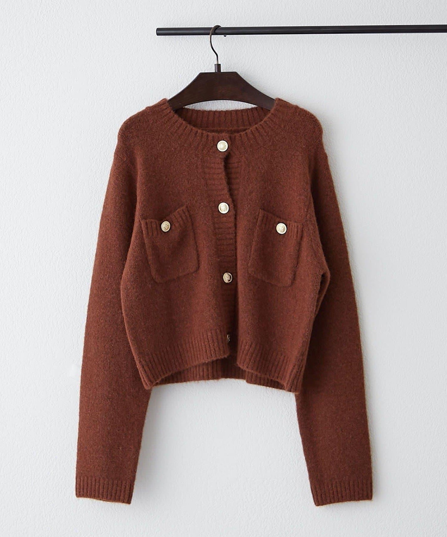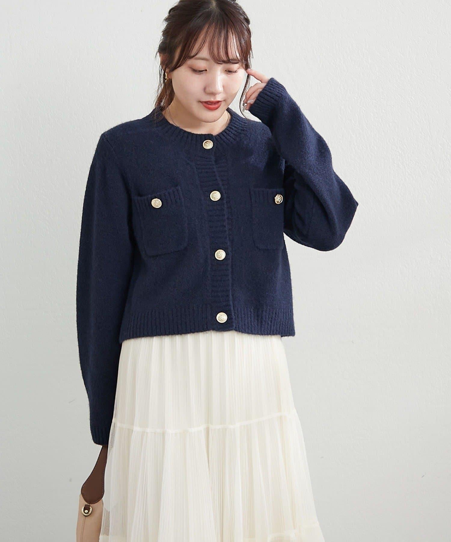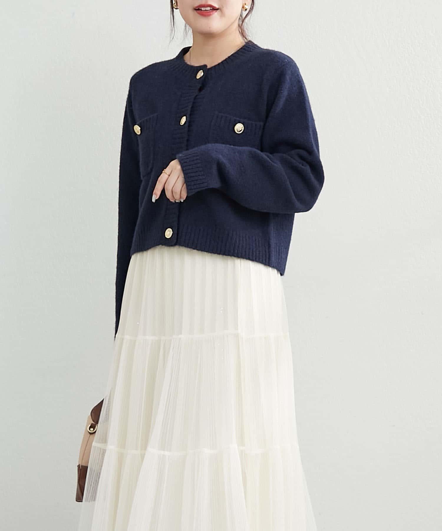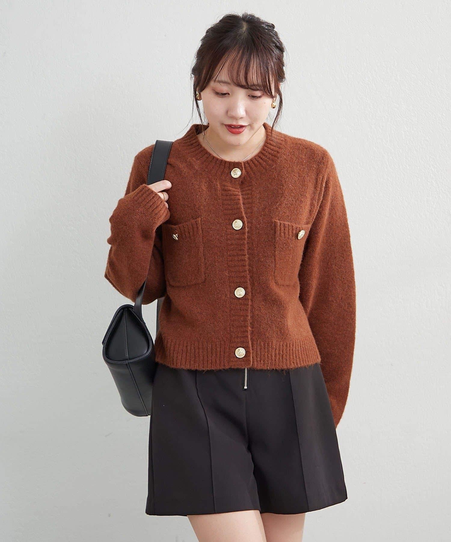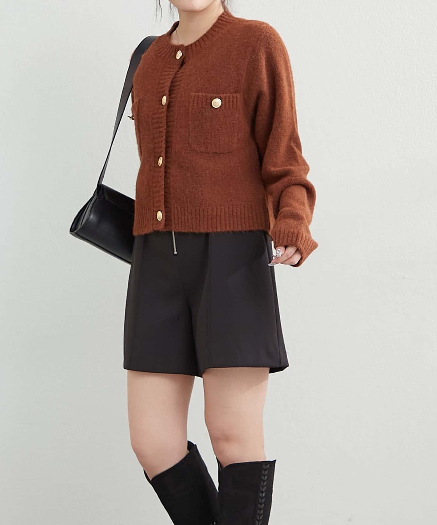開衫正面的金色紐扣給人一種簡潔的感覺,蓬鬆的面料也不會刺痛皮膚。