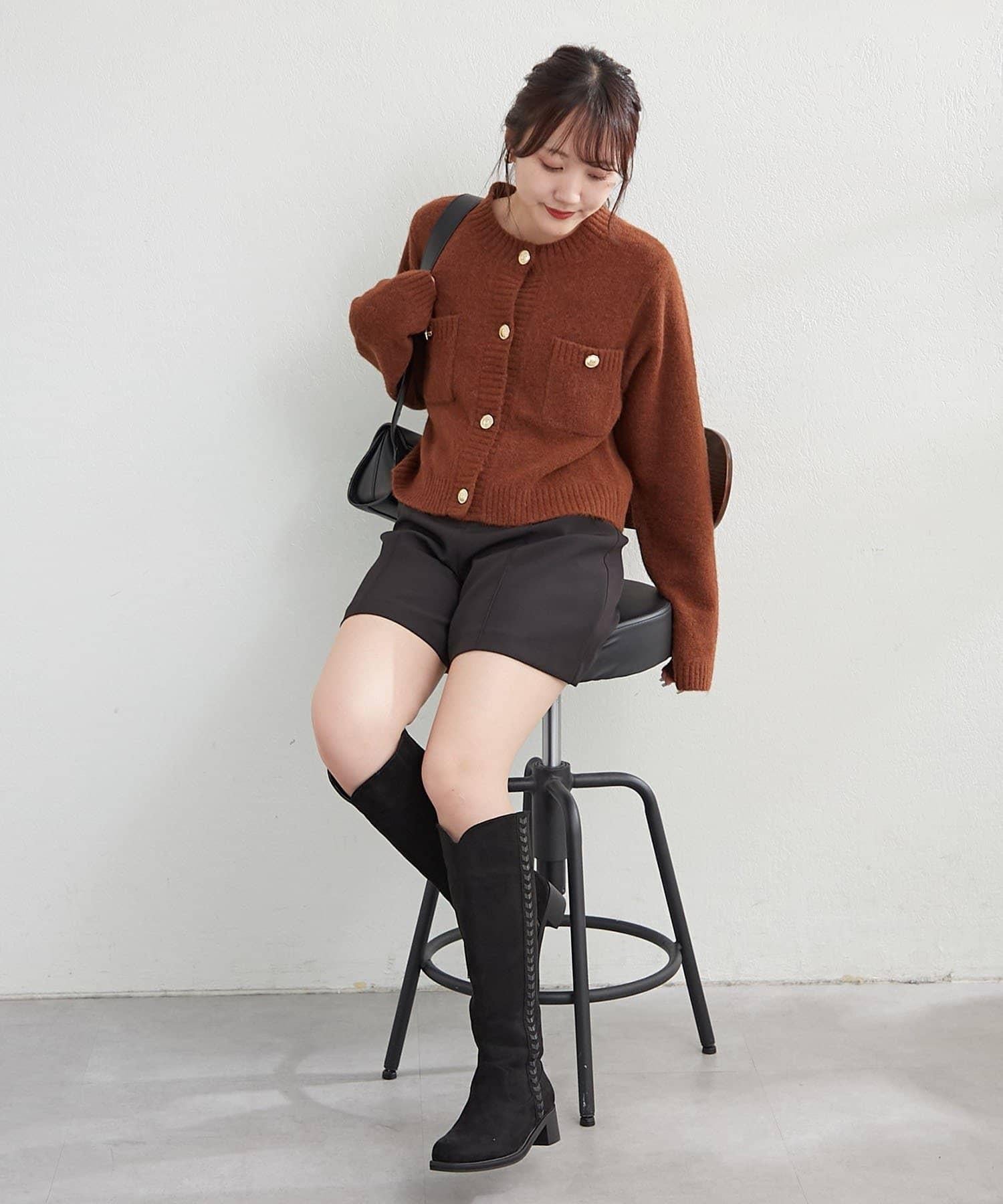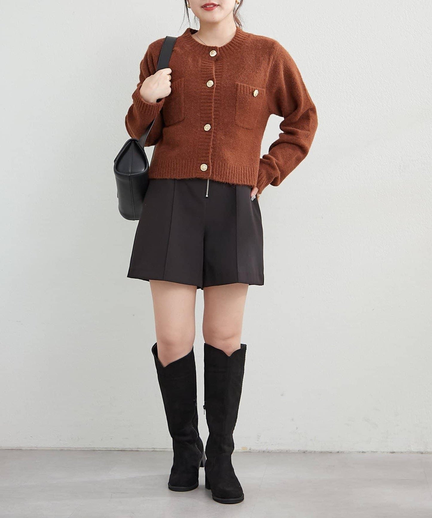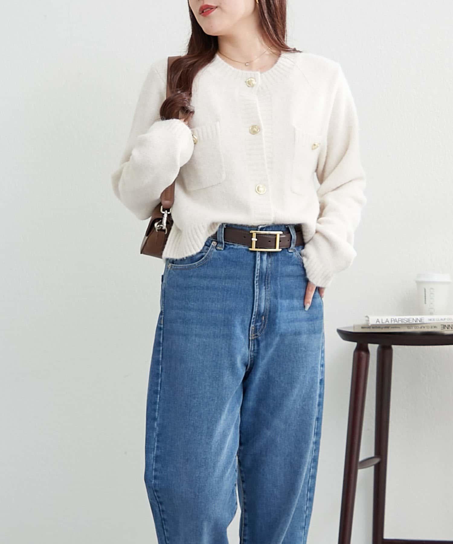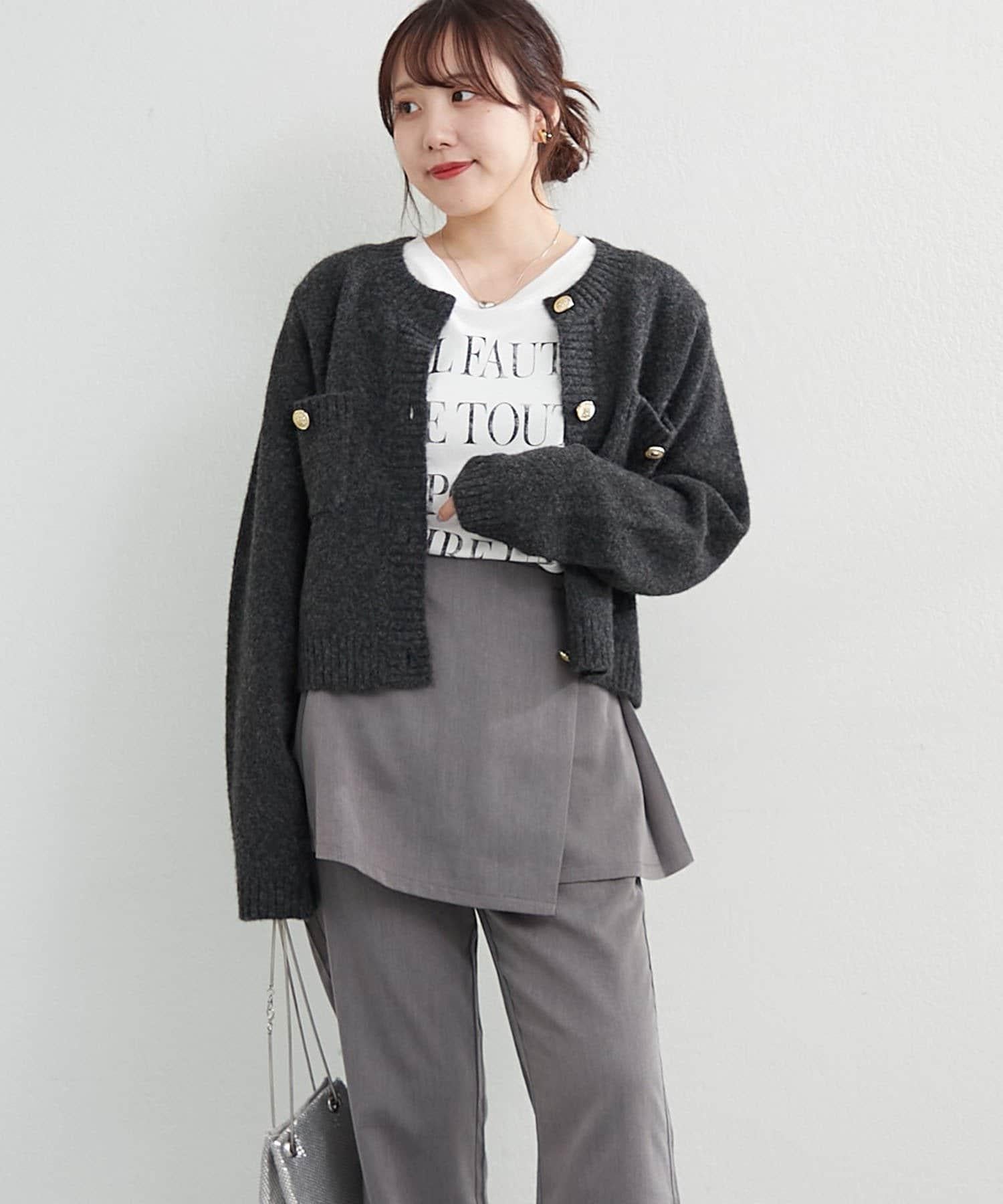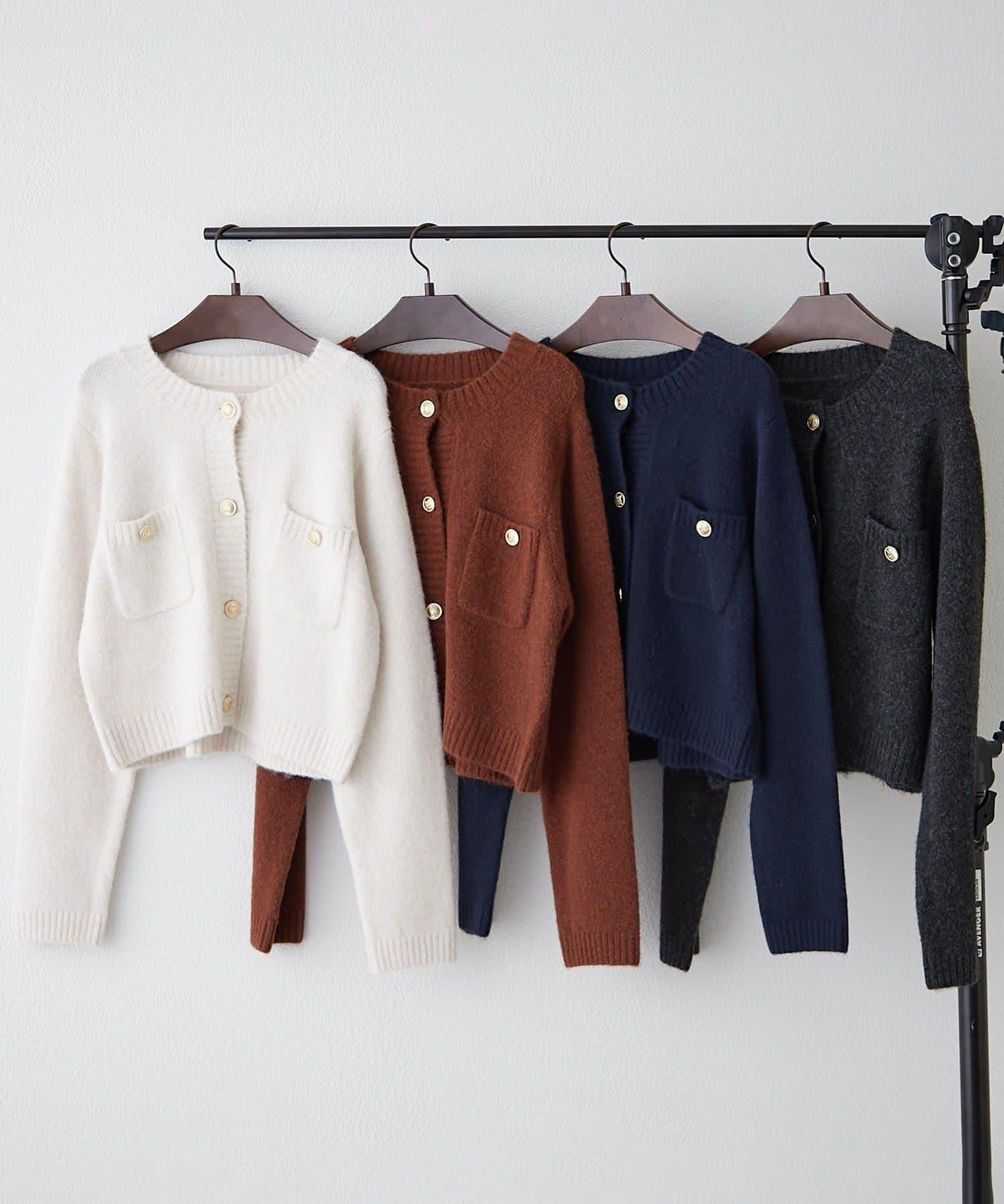 開衫正面的金色紐扣給人一種簡潔的感覺,蓬鬆的面料也不會刺痛皮膚。