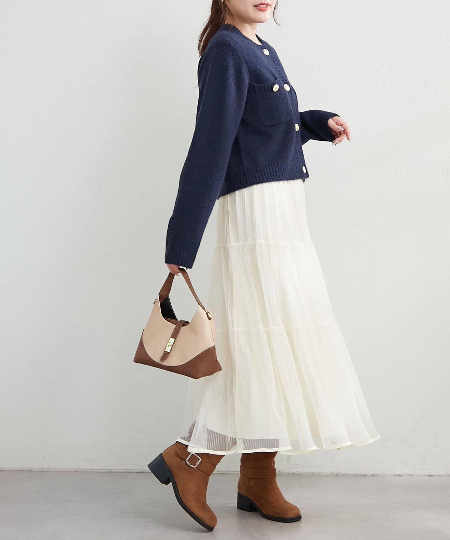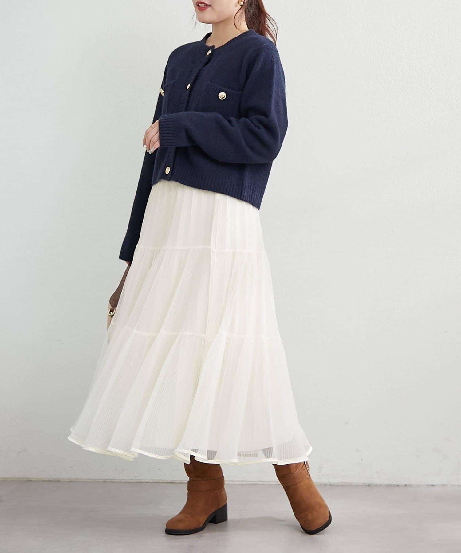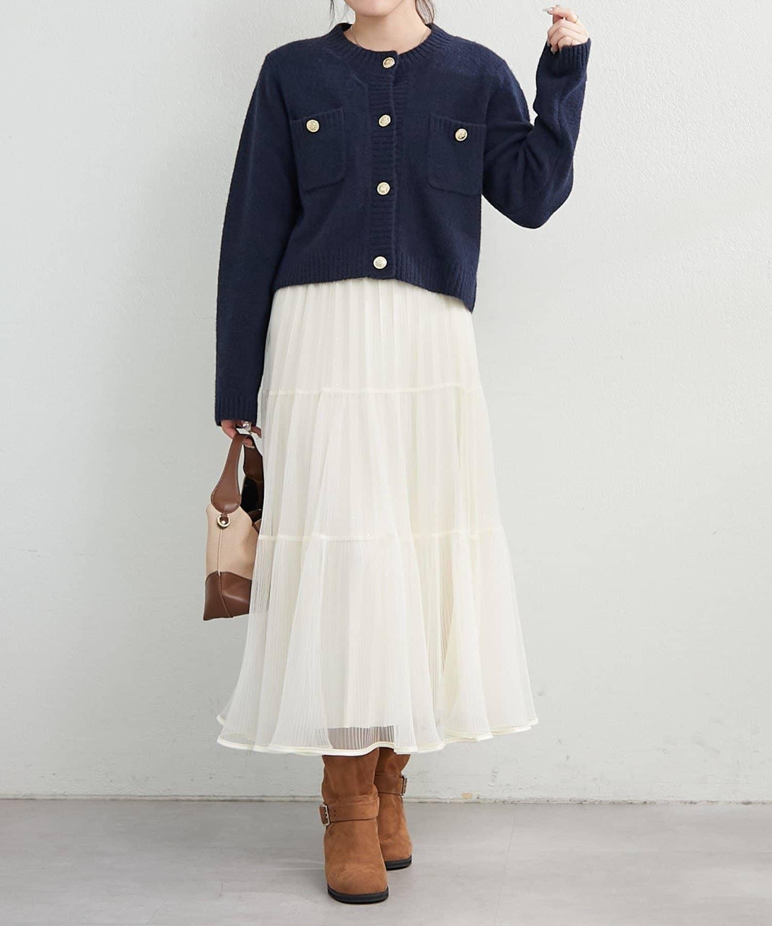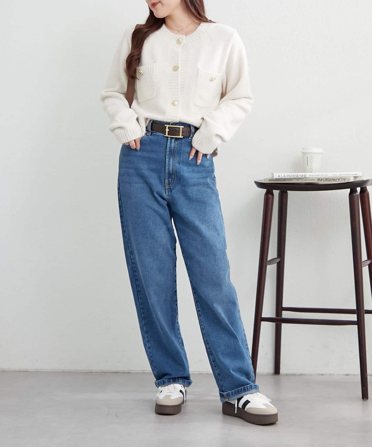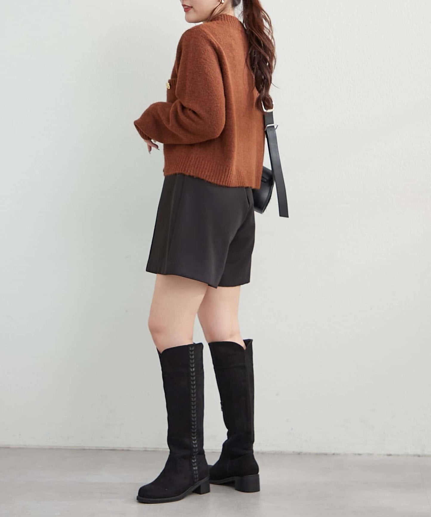 開衫正面的金色紐扣給人一種簡潔的感覺,蓬鬆的面料也不會刺痛皮膚。