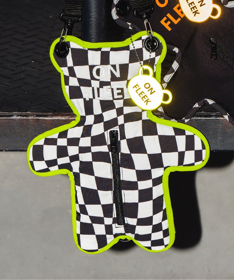 反面設有智能手機口袋♪在燈光下反光的小熊造型掛飾也是亮點之一♪