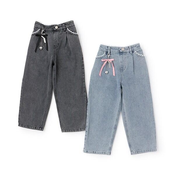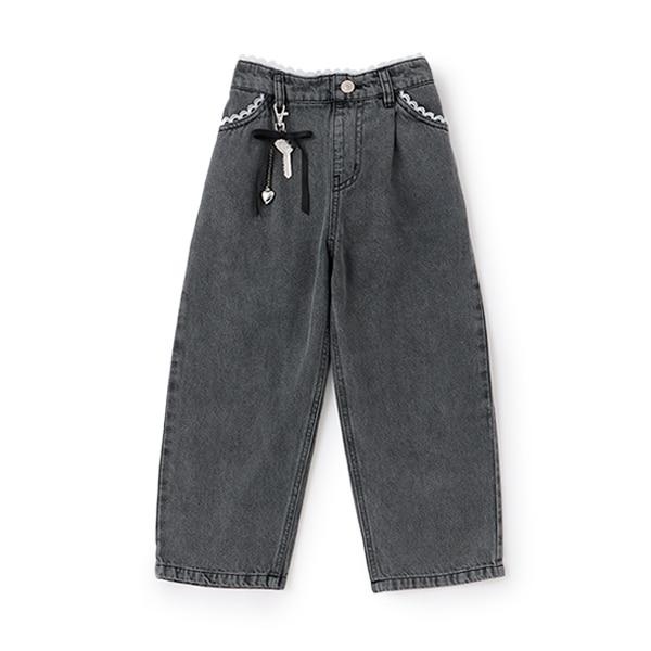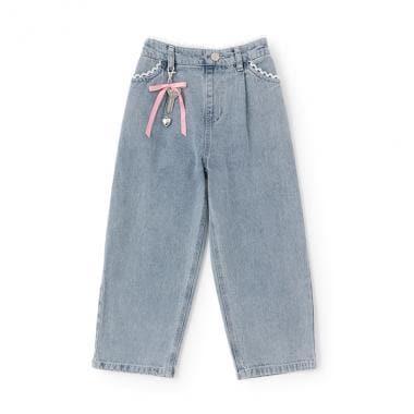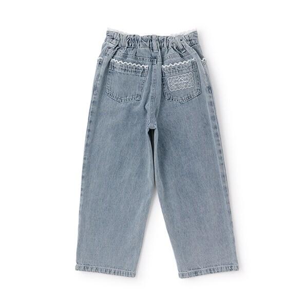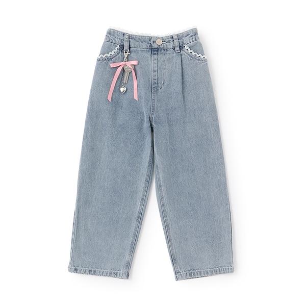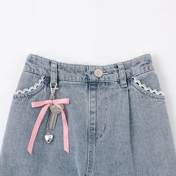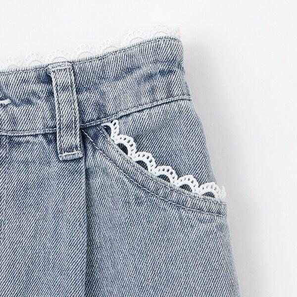 蕾絲的甜美與牛仔布加工後略顯硬朗的手感相得益彰,時尚感十足。