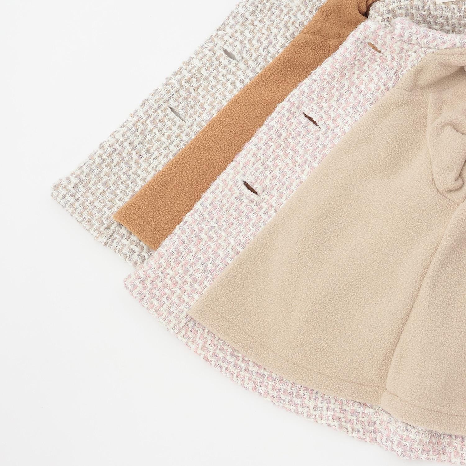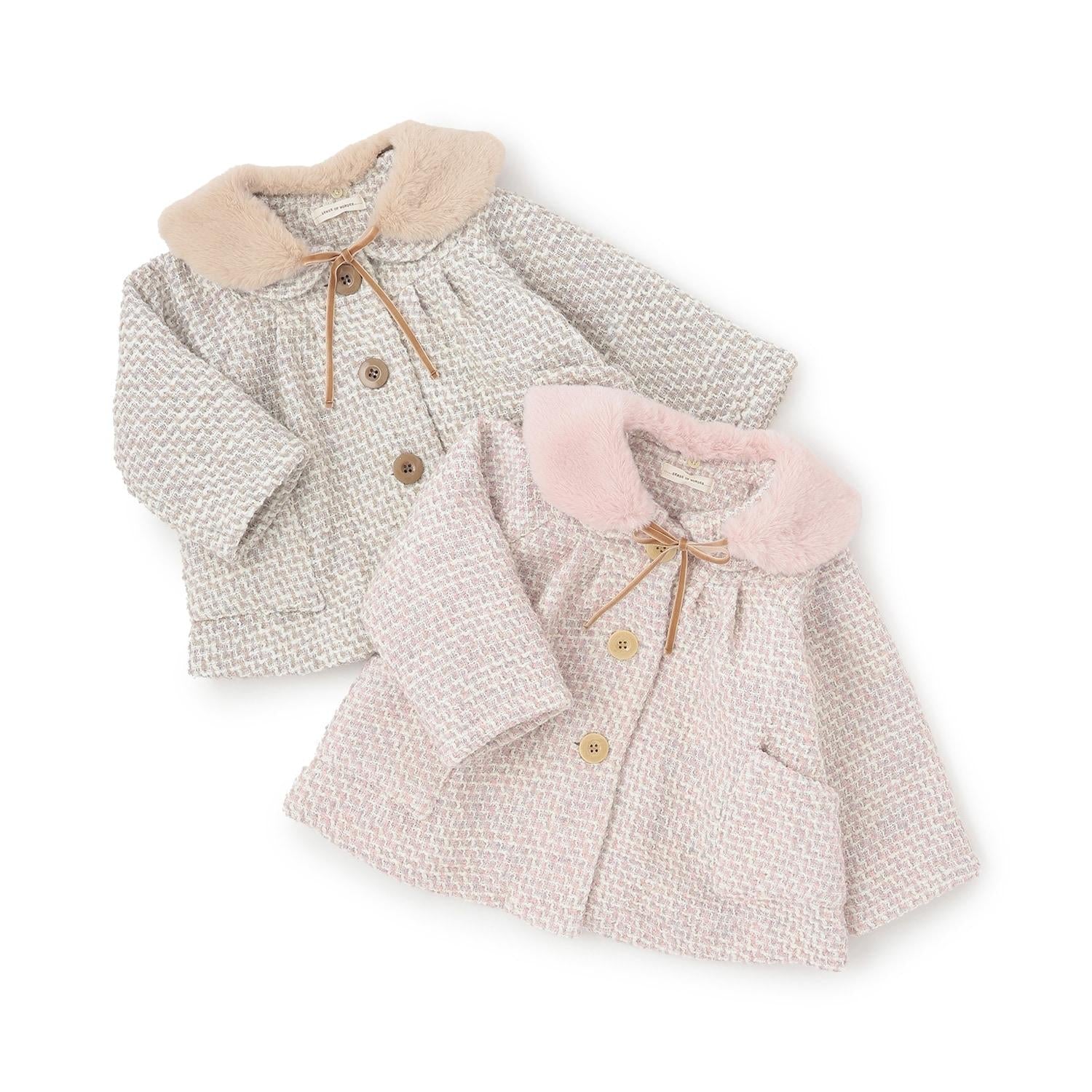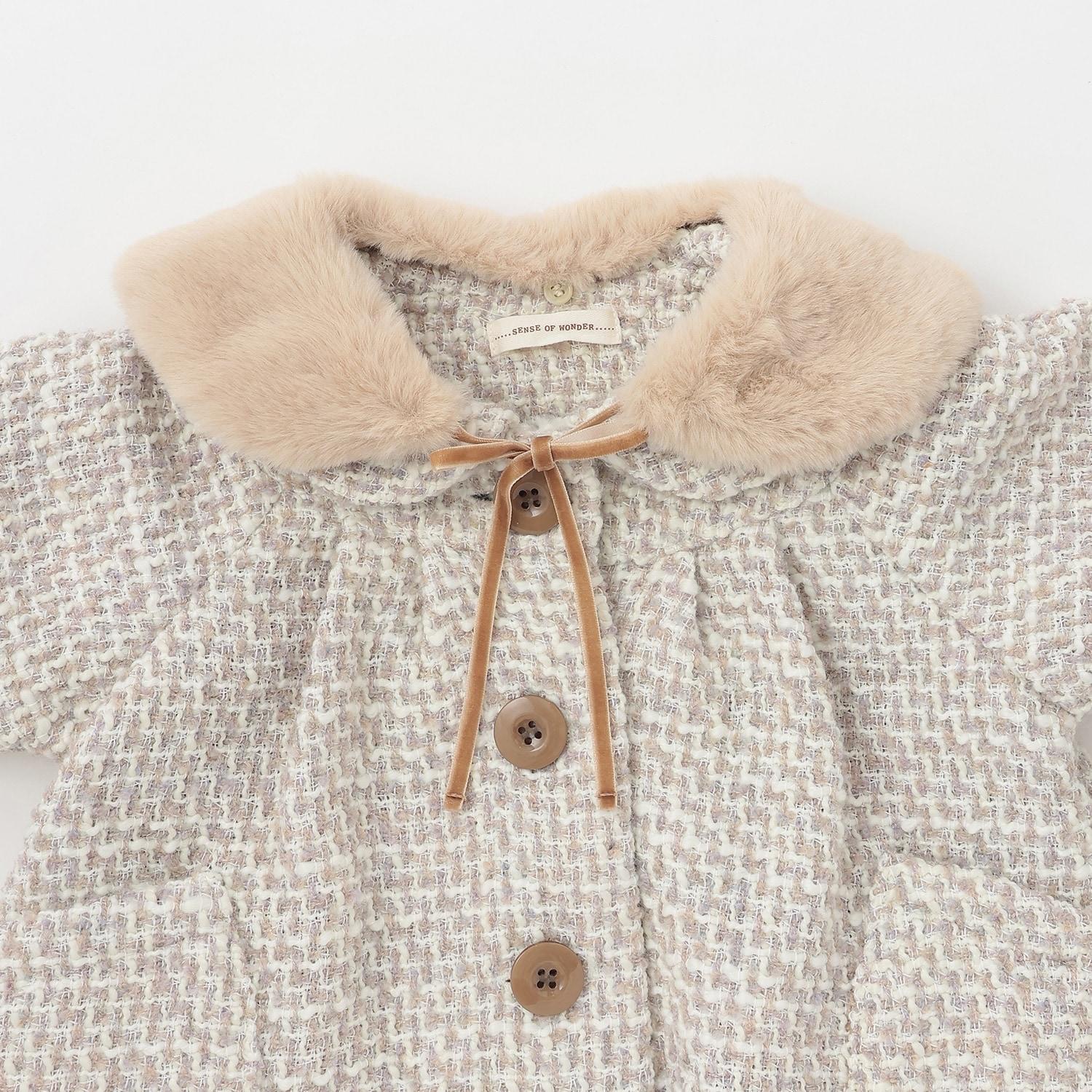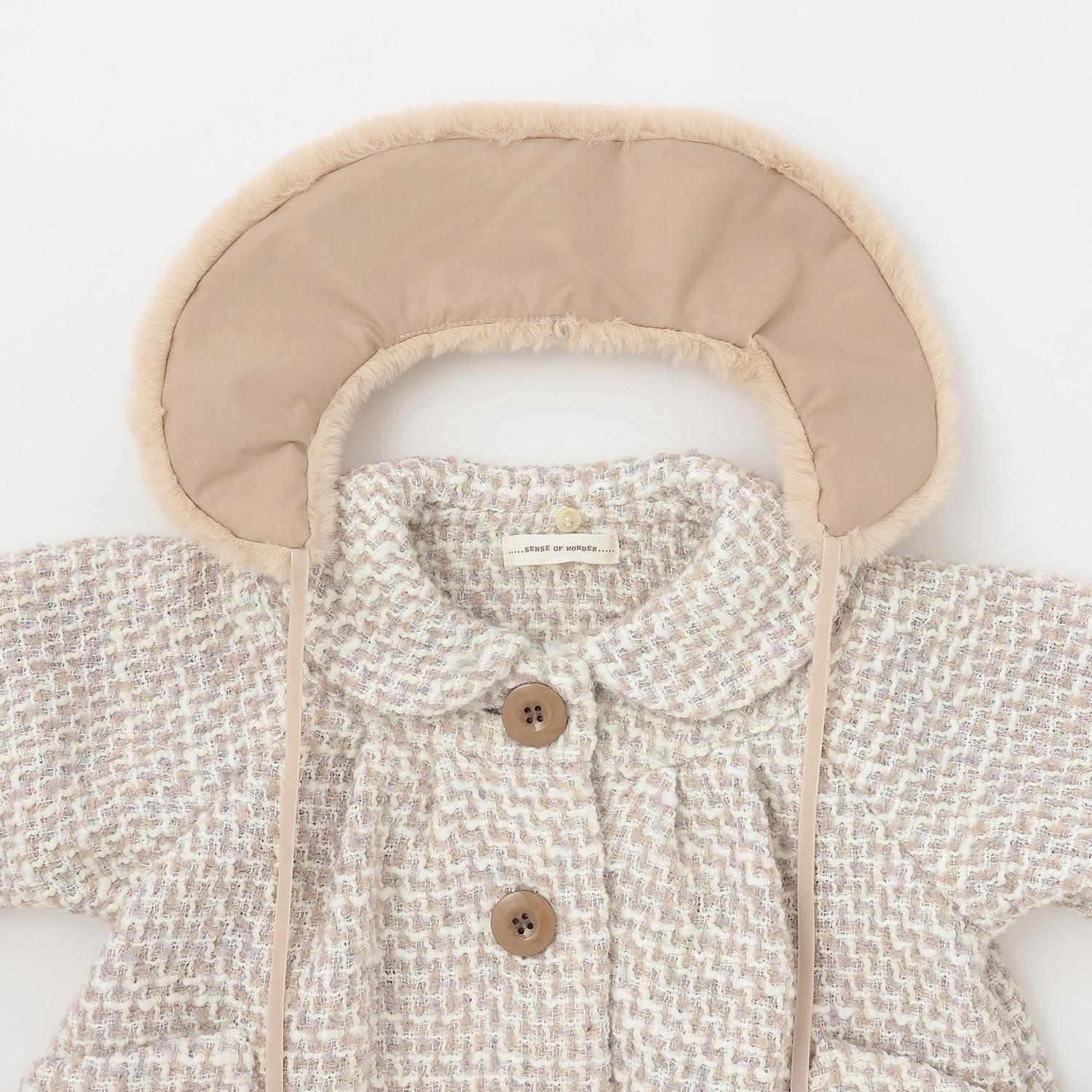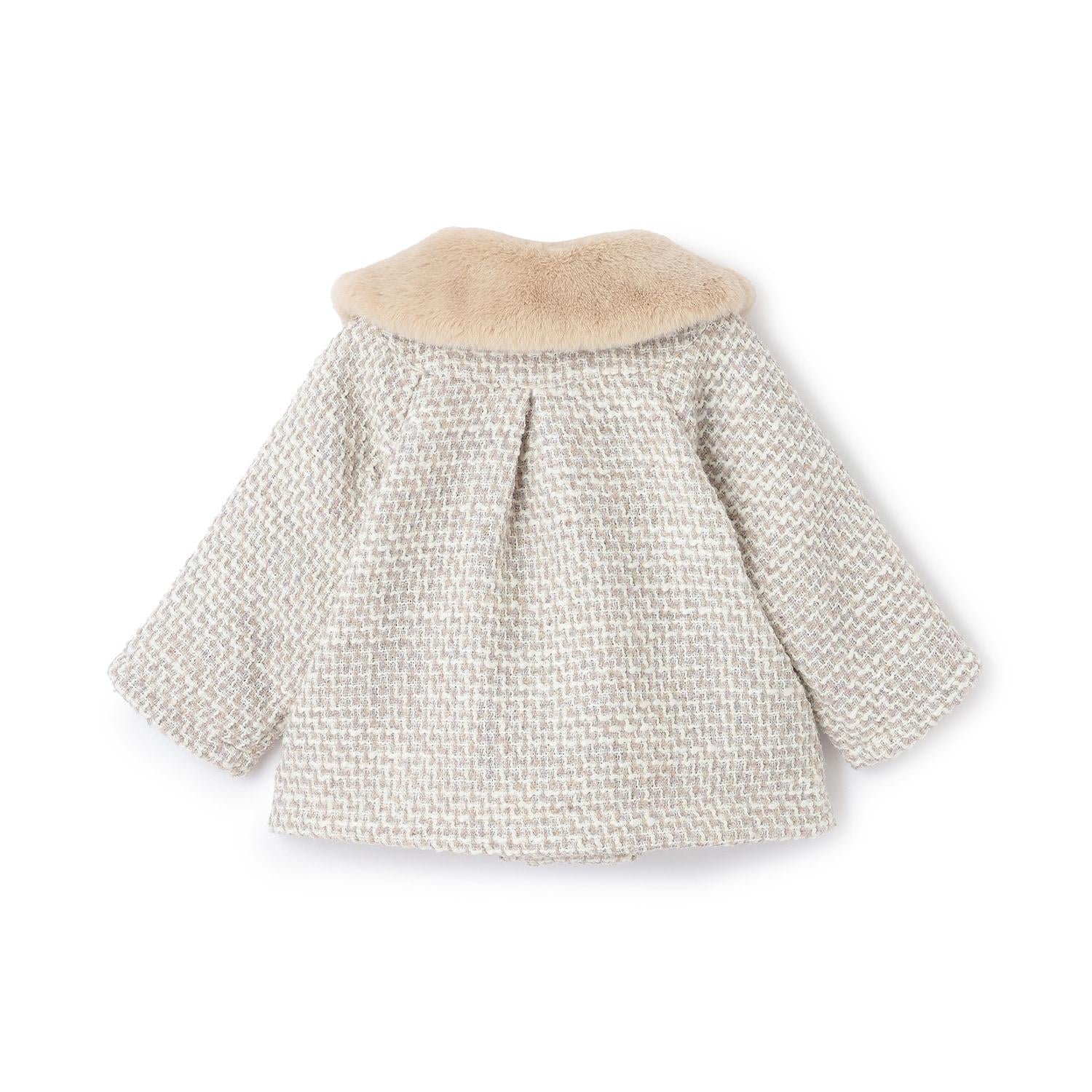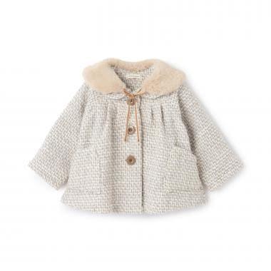 粗紗大衣,帶有人造毛皮製成的褶邊。