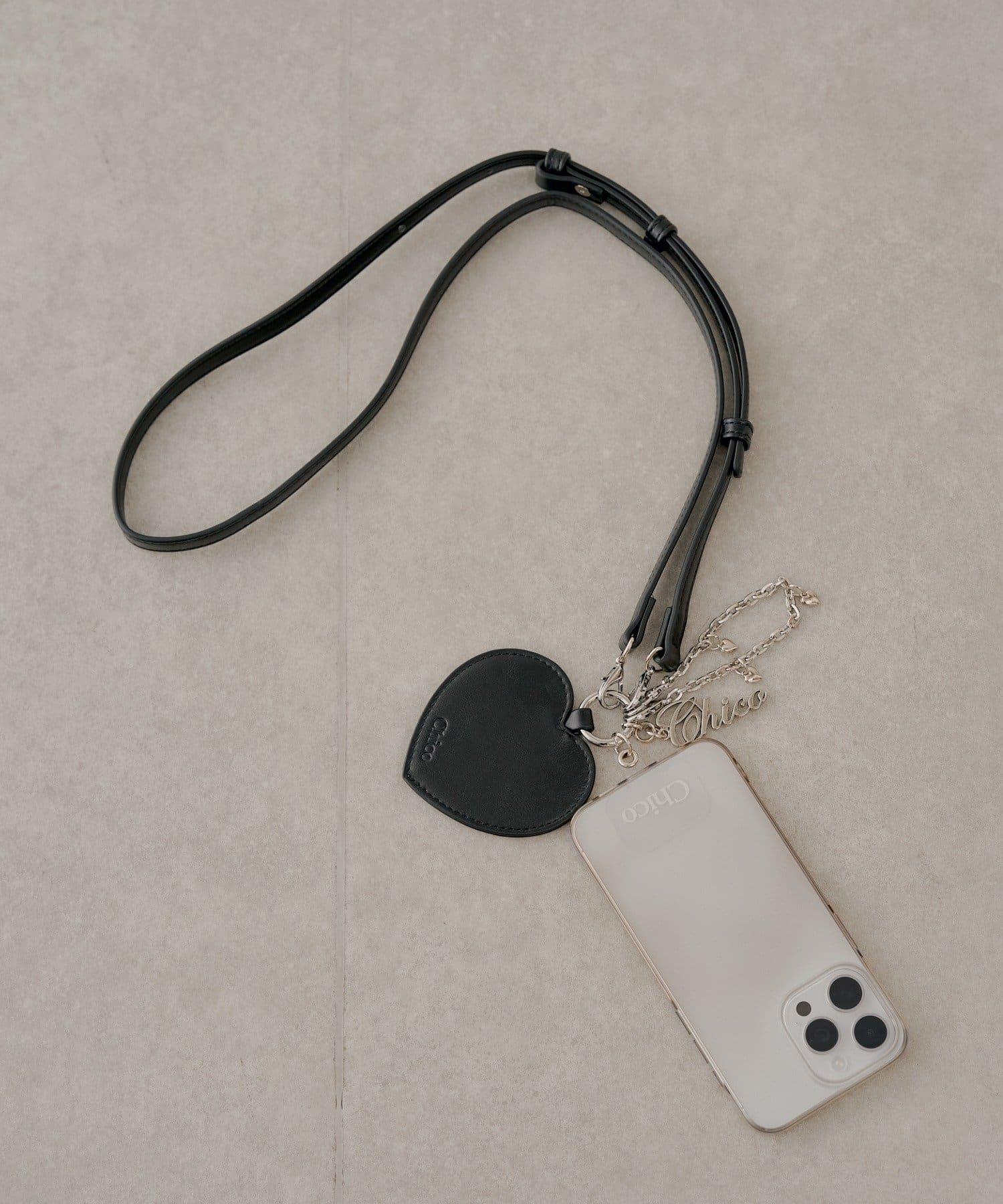 帶有心形吊飾的可愛手機肩帶,可作為配飾隨身攜帶。