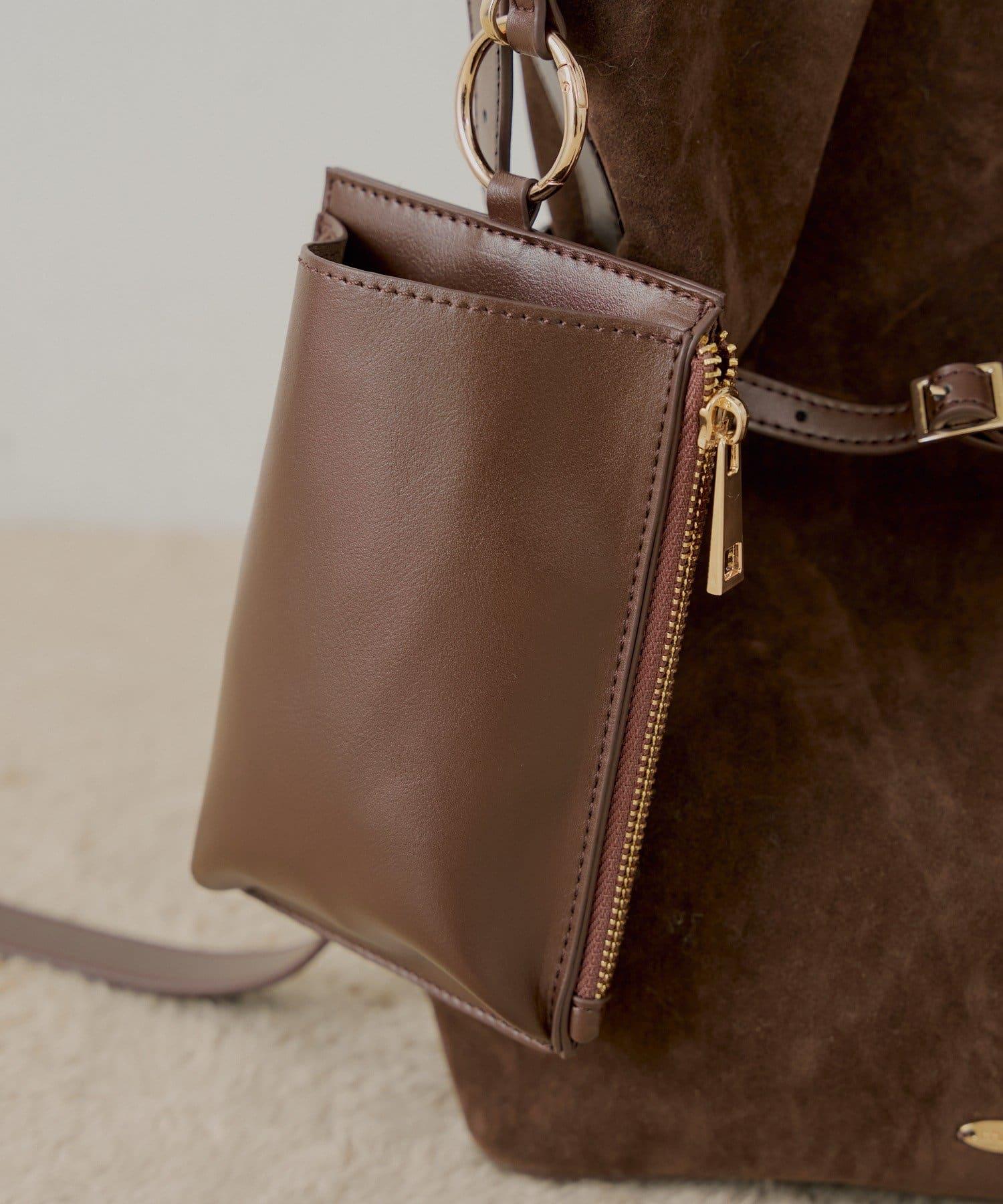 這款雙肩包有一個可拆卸的手機袋。