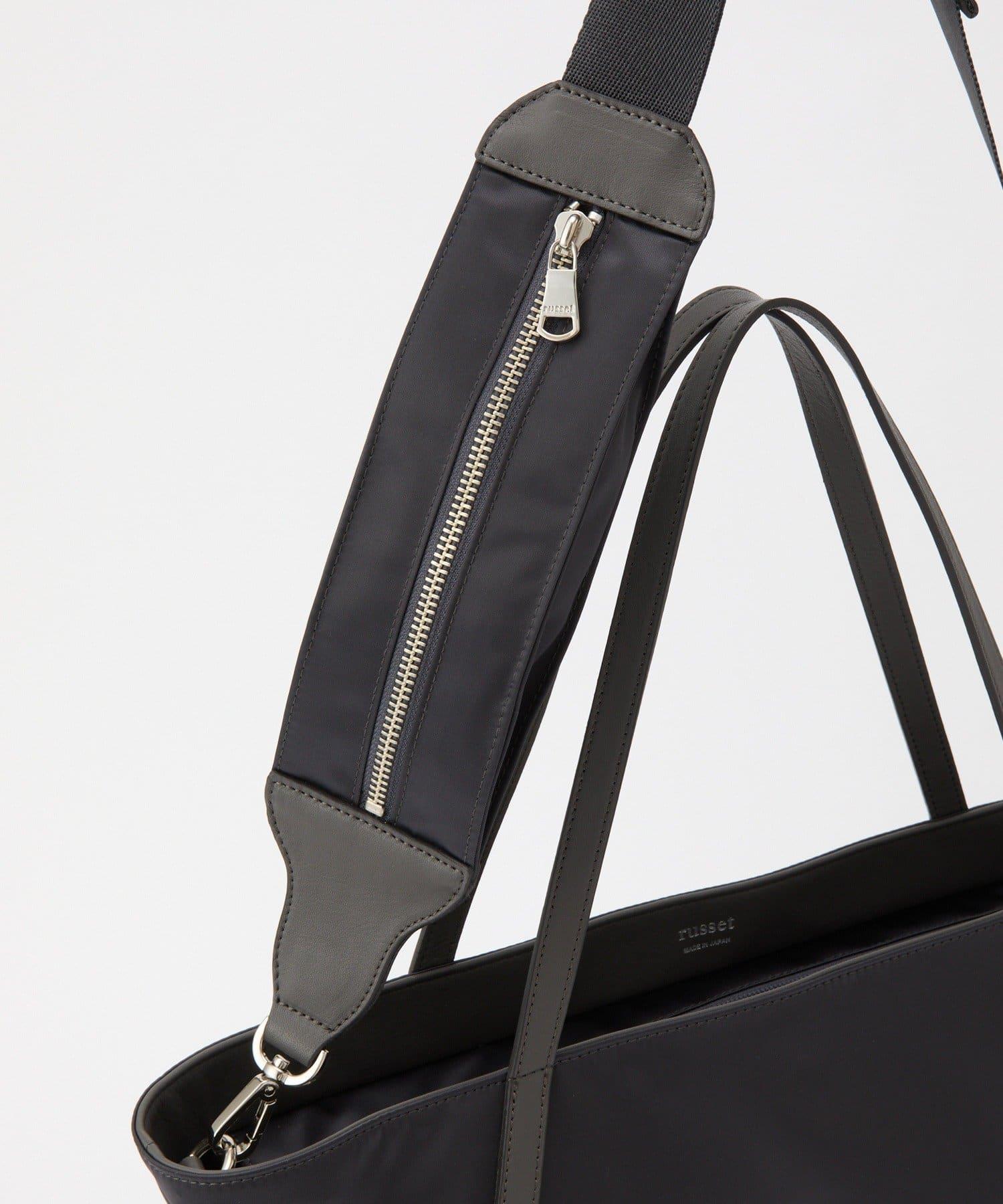 包身無金屬裝飾,頂部拉鍊和金屬配件均在包內,品牌獨創的克勞斯尼龍賦予包身優雅的光澤。