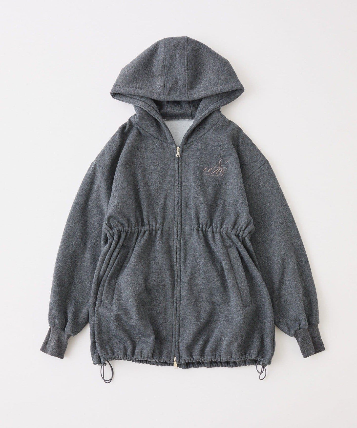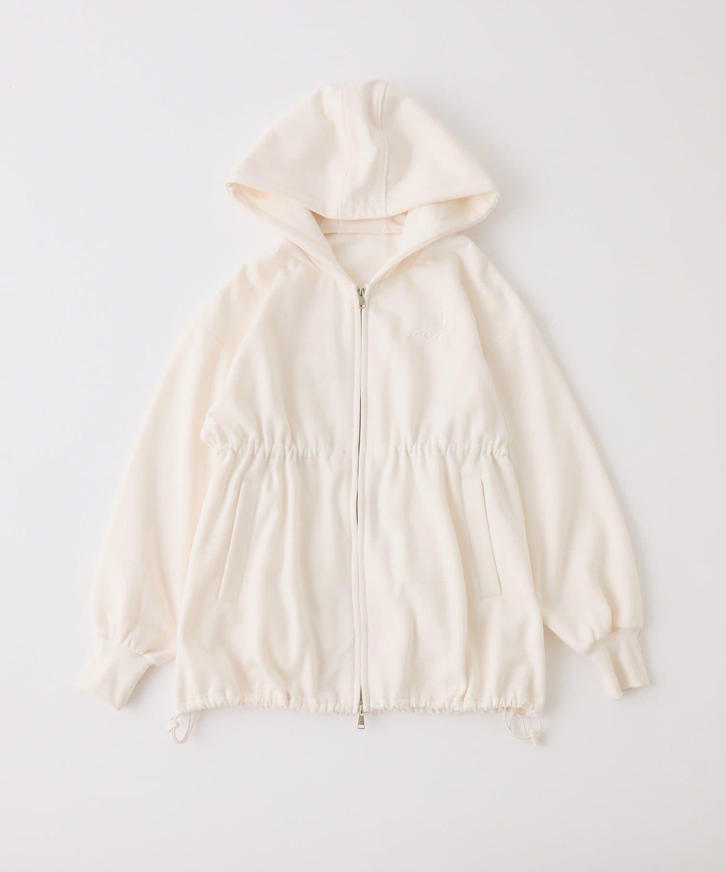 這是一款連帽衫,胸前繡有徽標,腰部採用收腰設計,具有極佳的時尚效果。