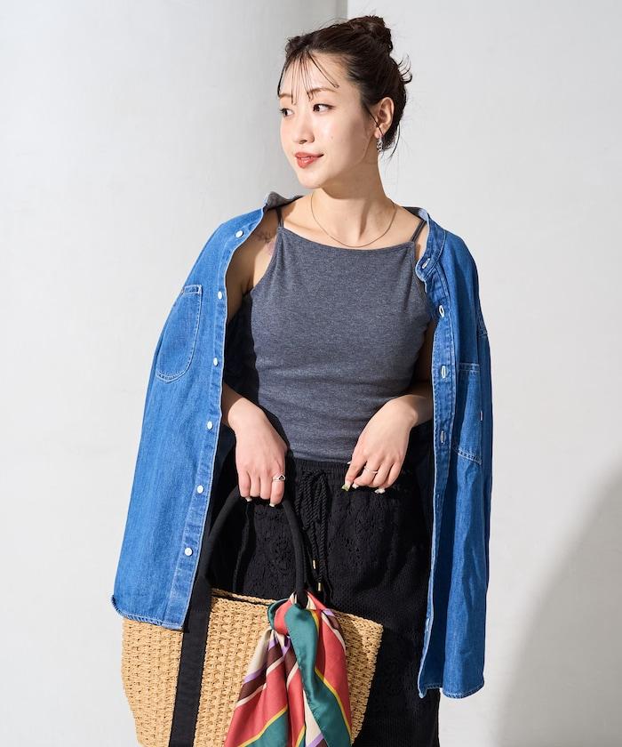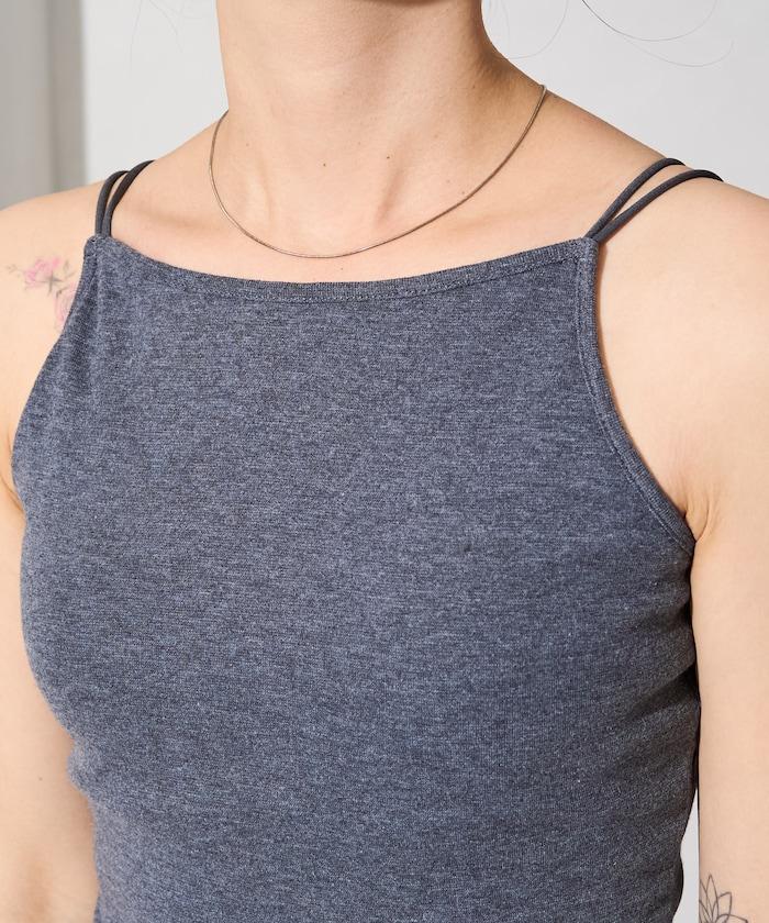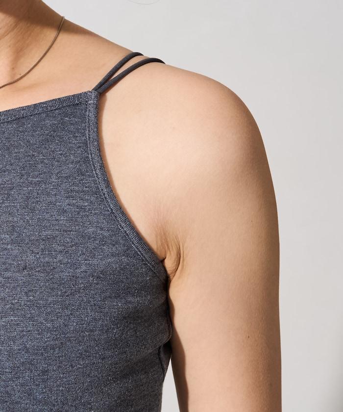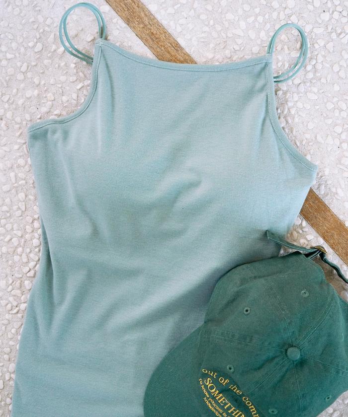 吊帶背心的前部設置得很高,因此可以放心地露出胸部。