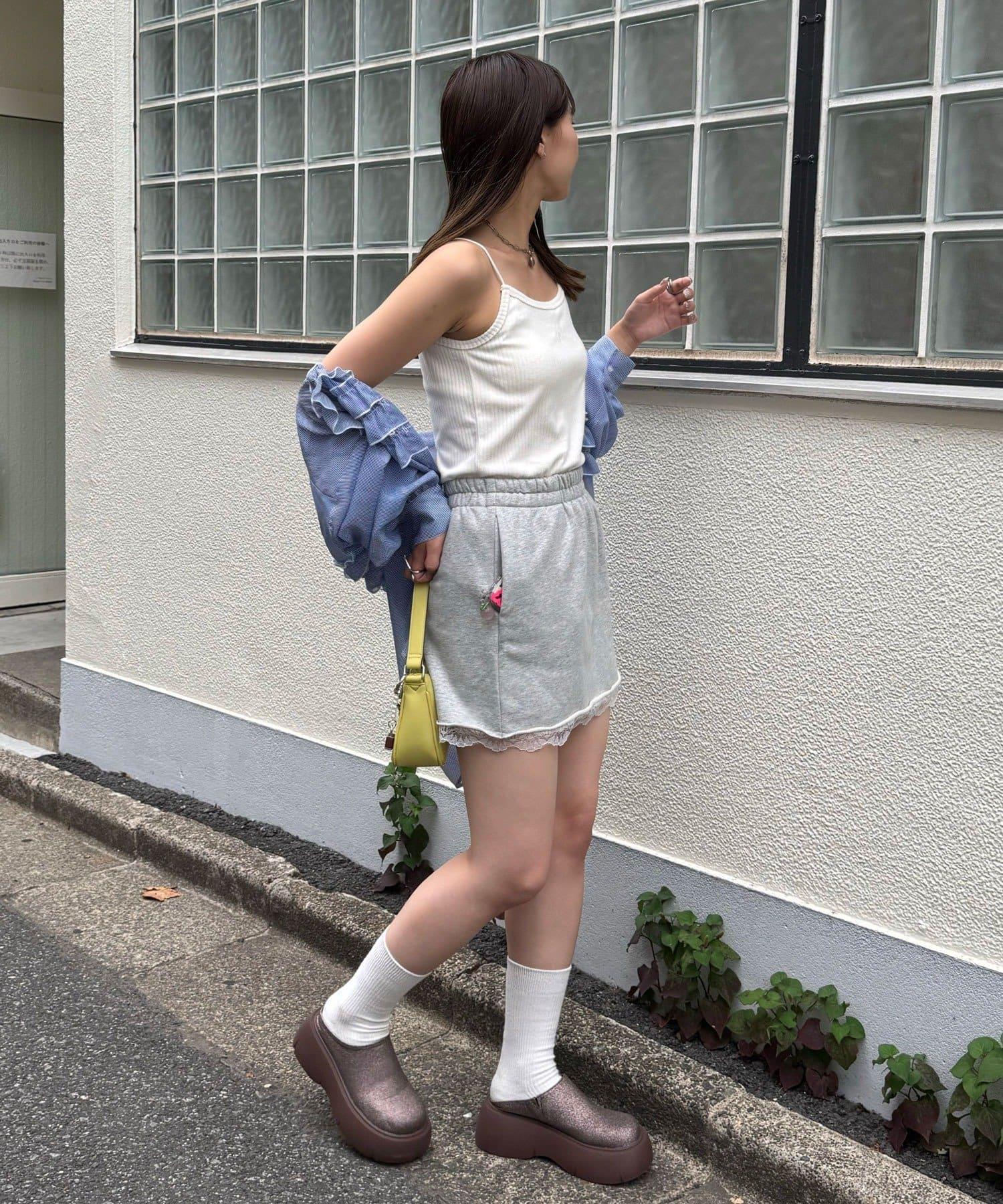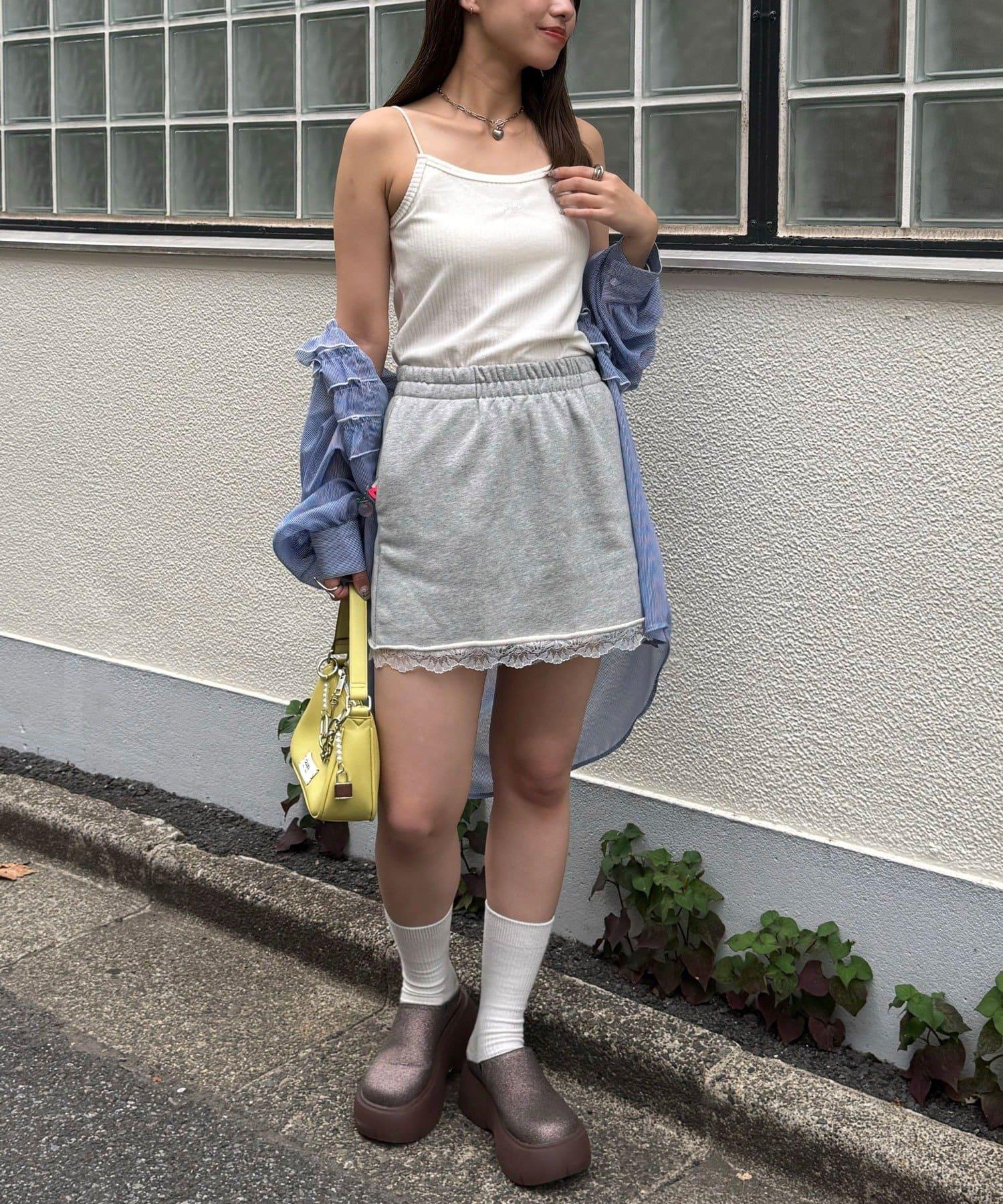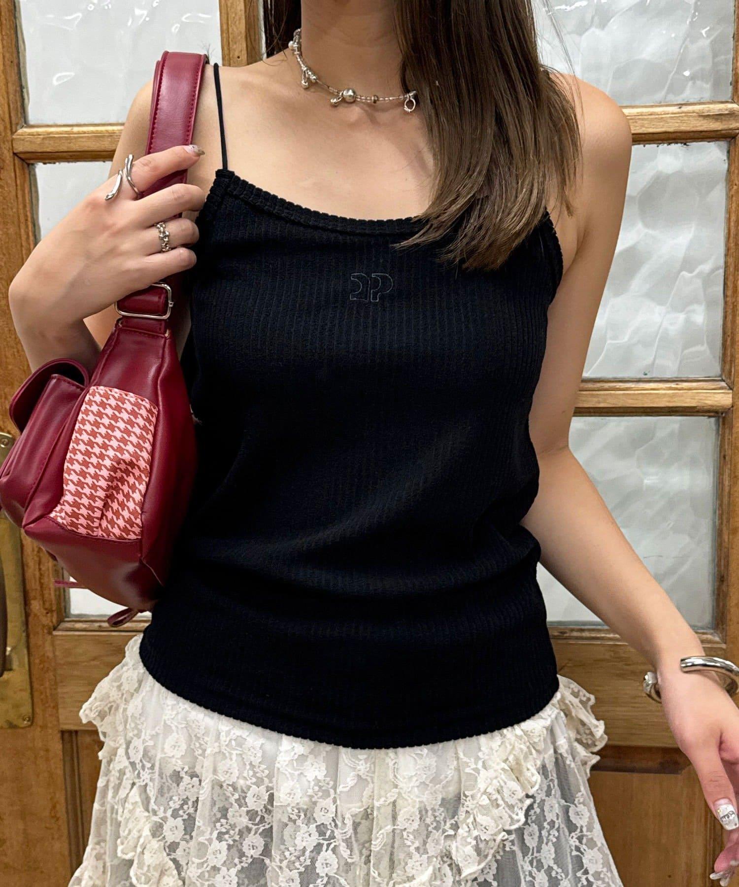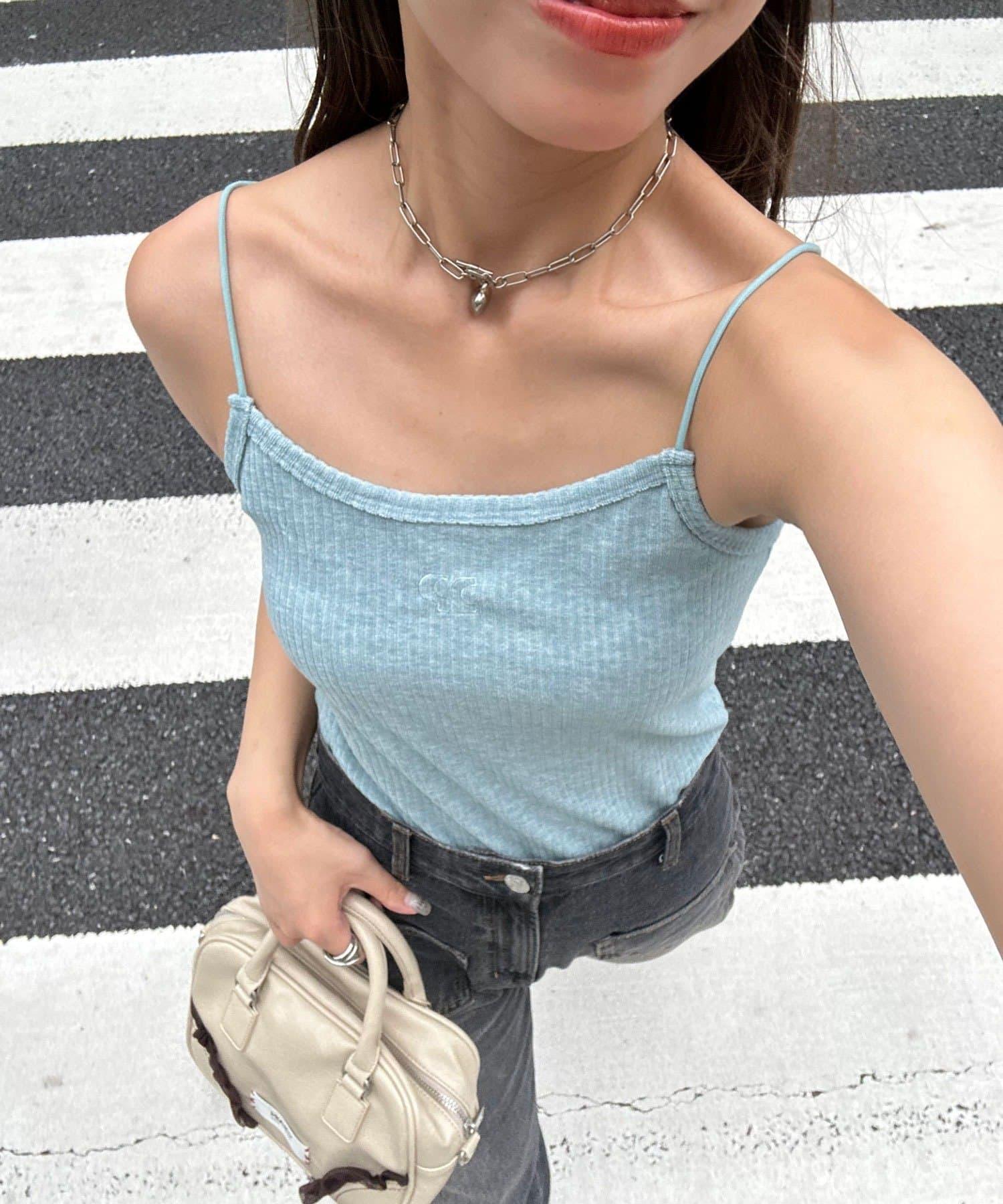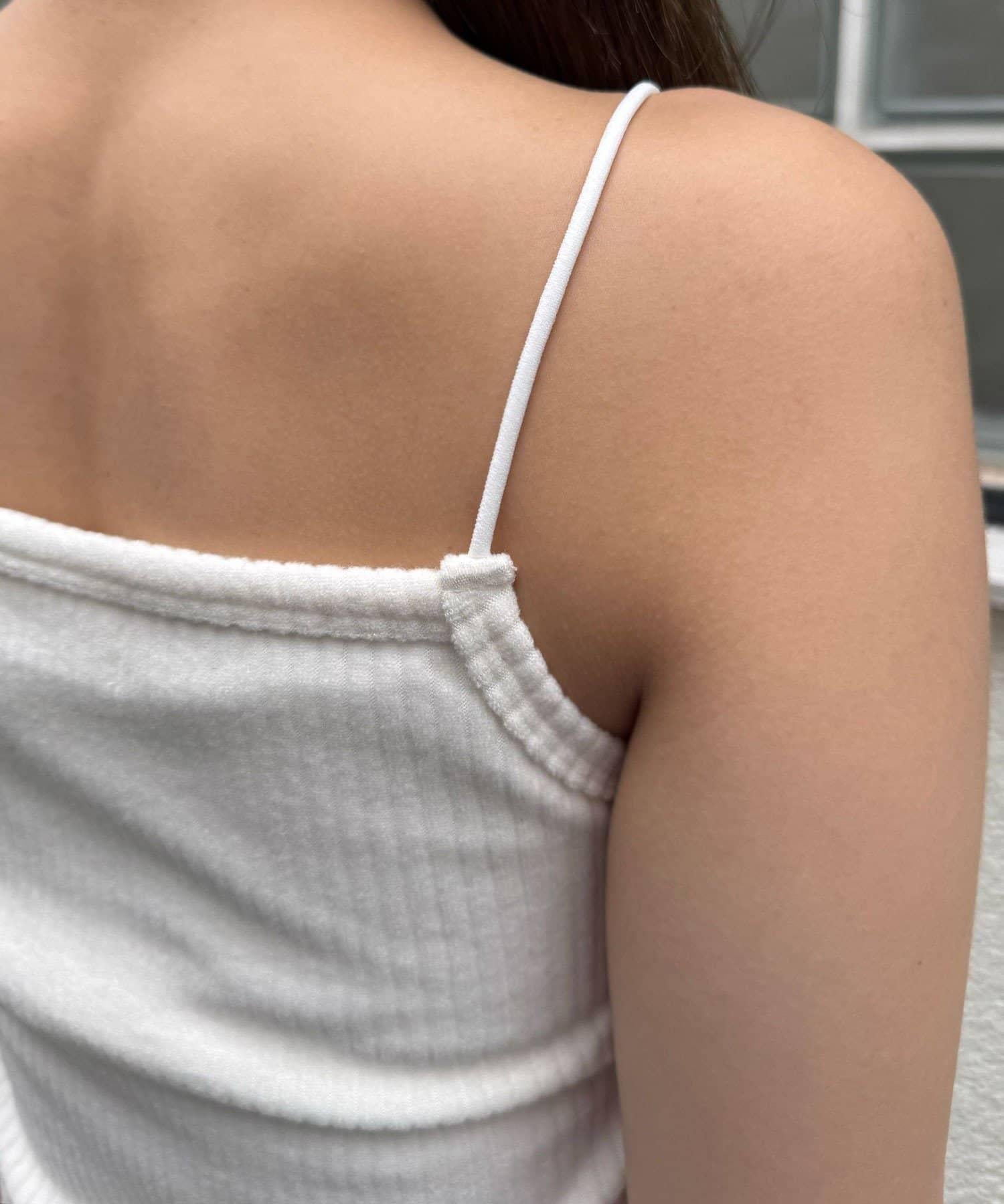 帶罩杯的加絨羅紋吊帶衫,貼身柔軟舒適。