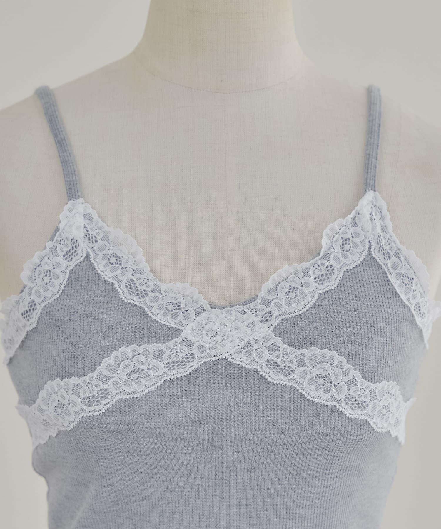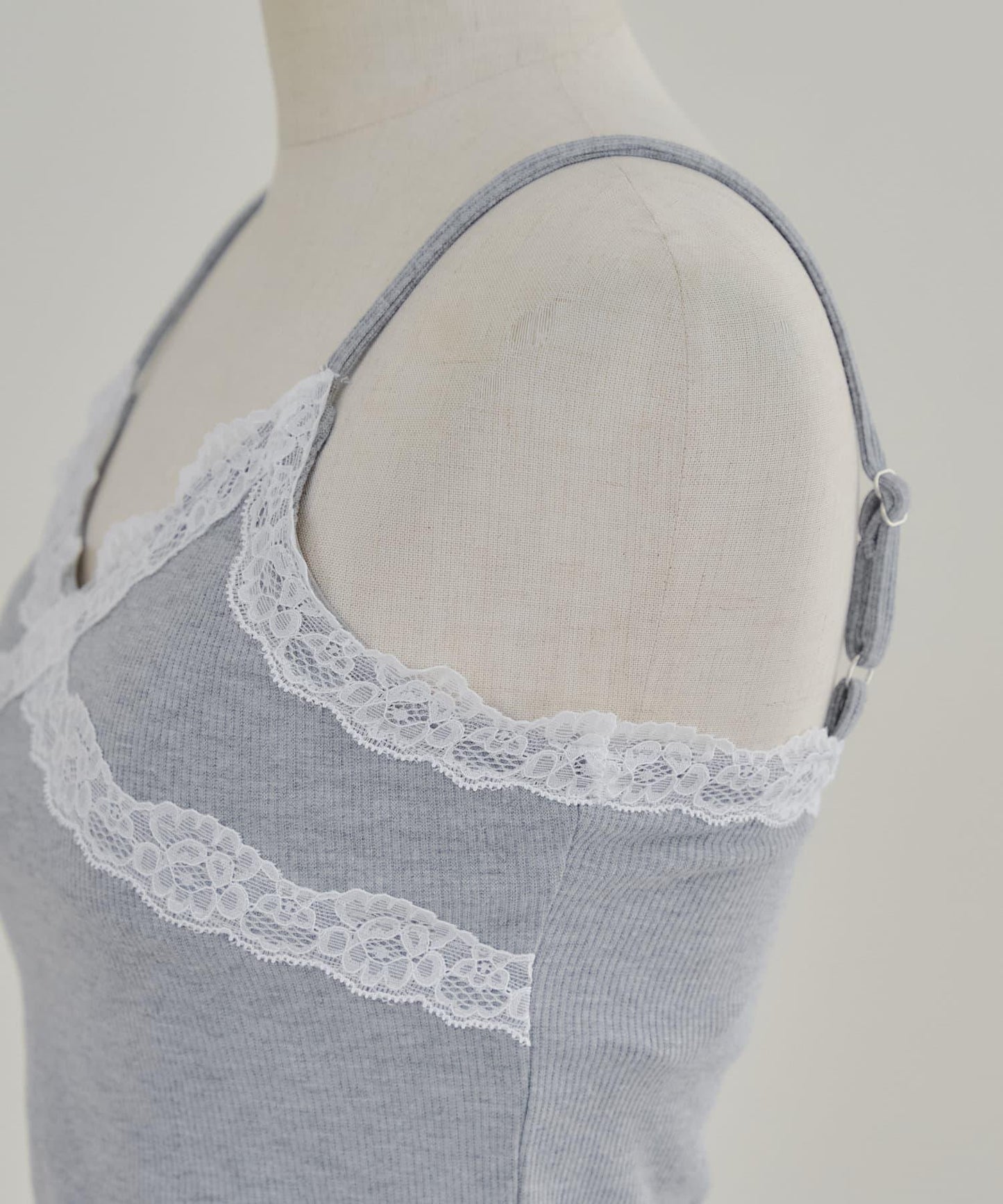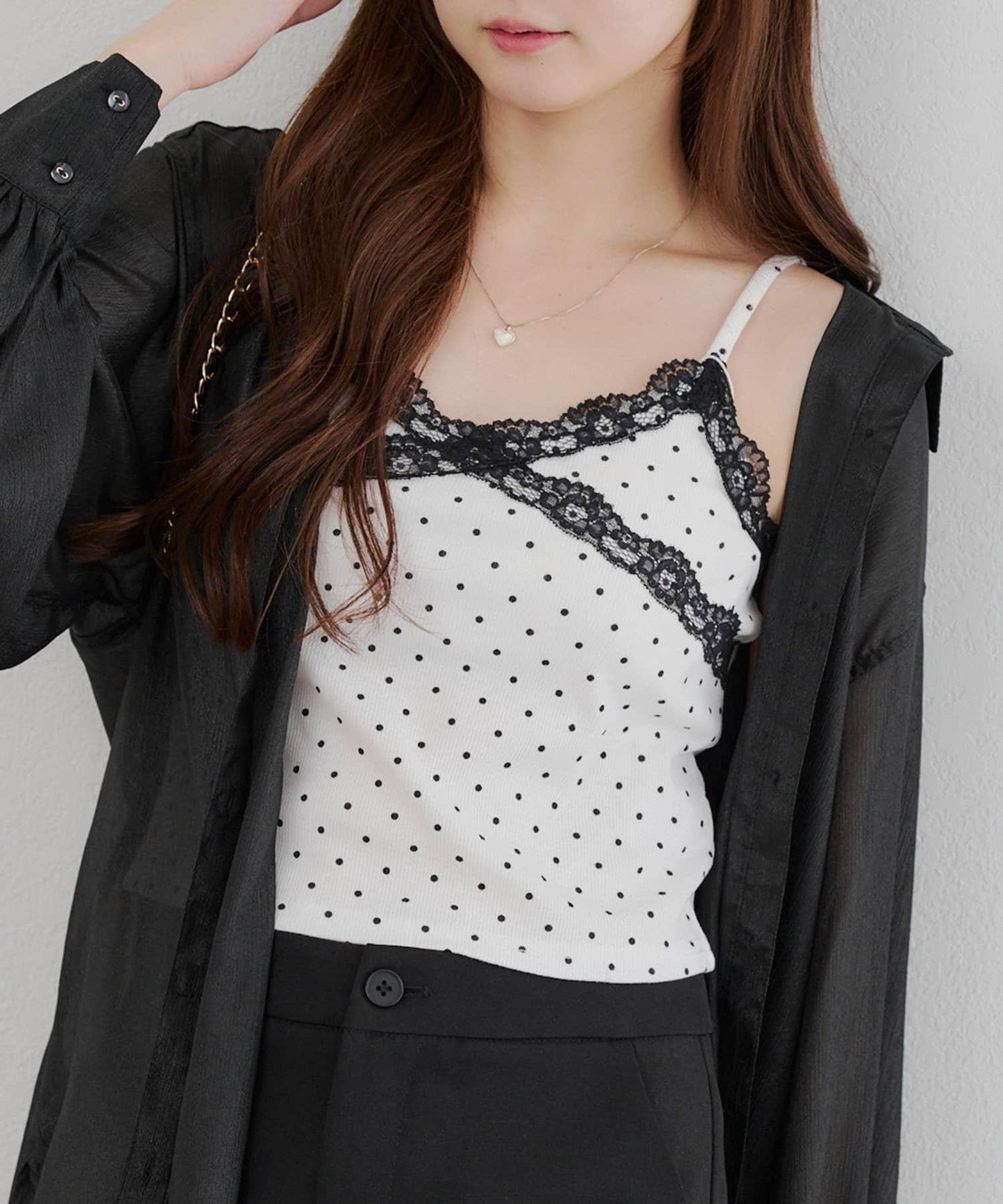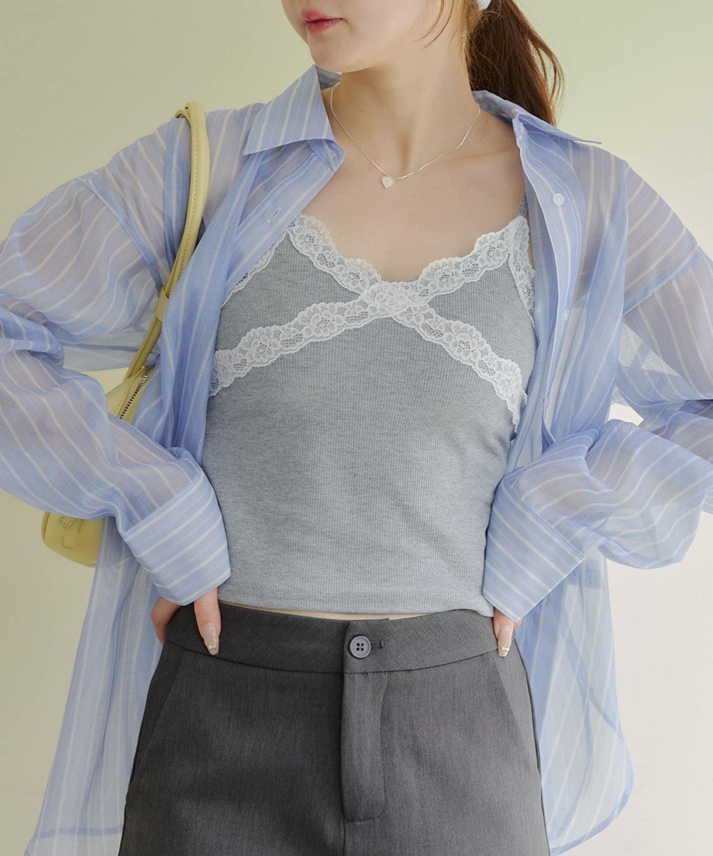胸前有蕾絲設計的吊帶背心,給人一種成熟少女的印象。