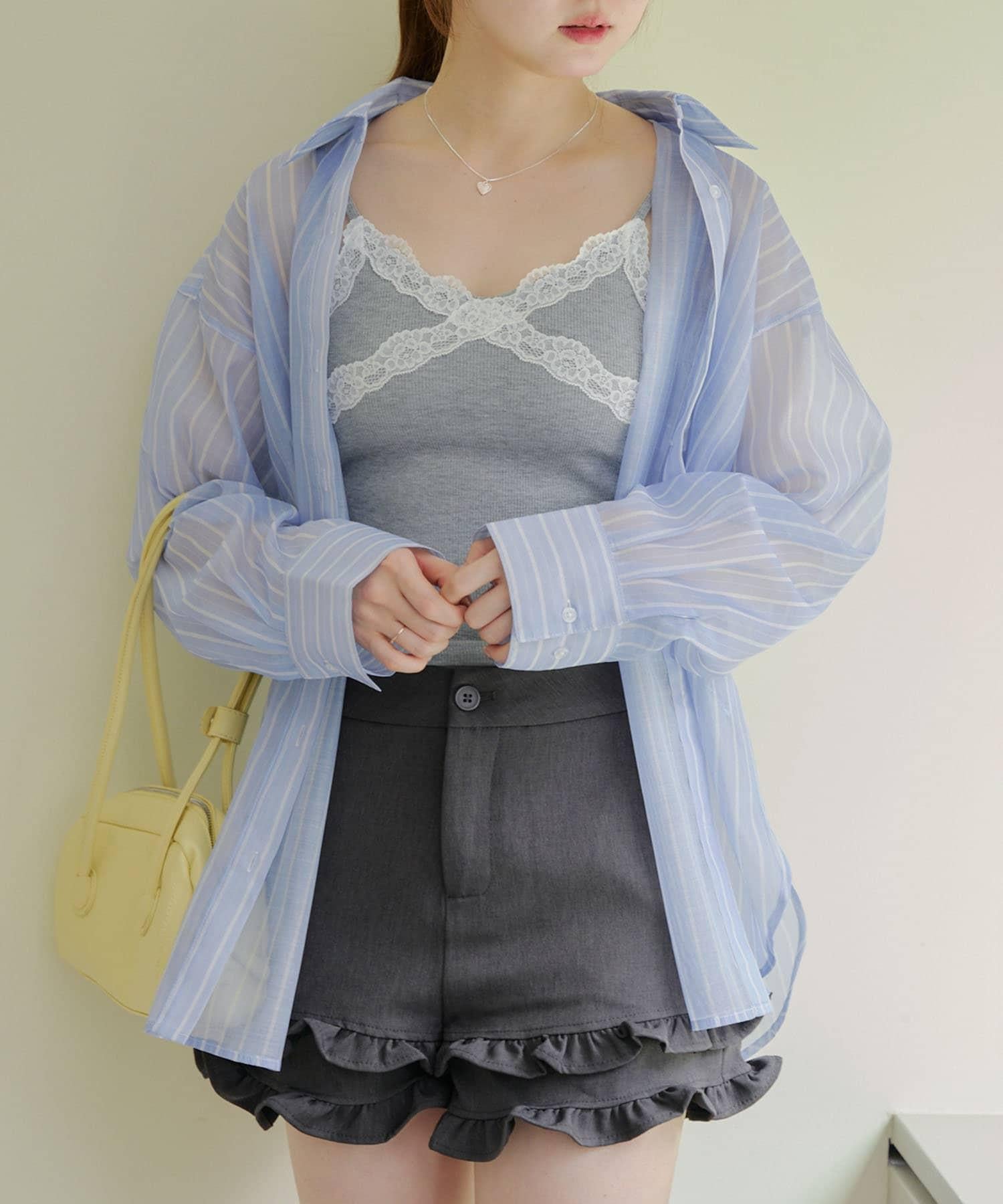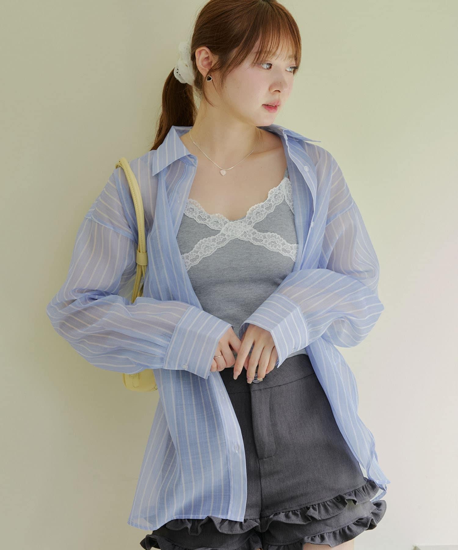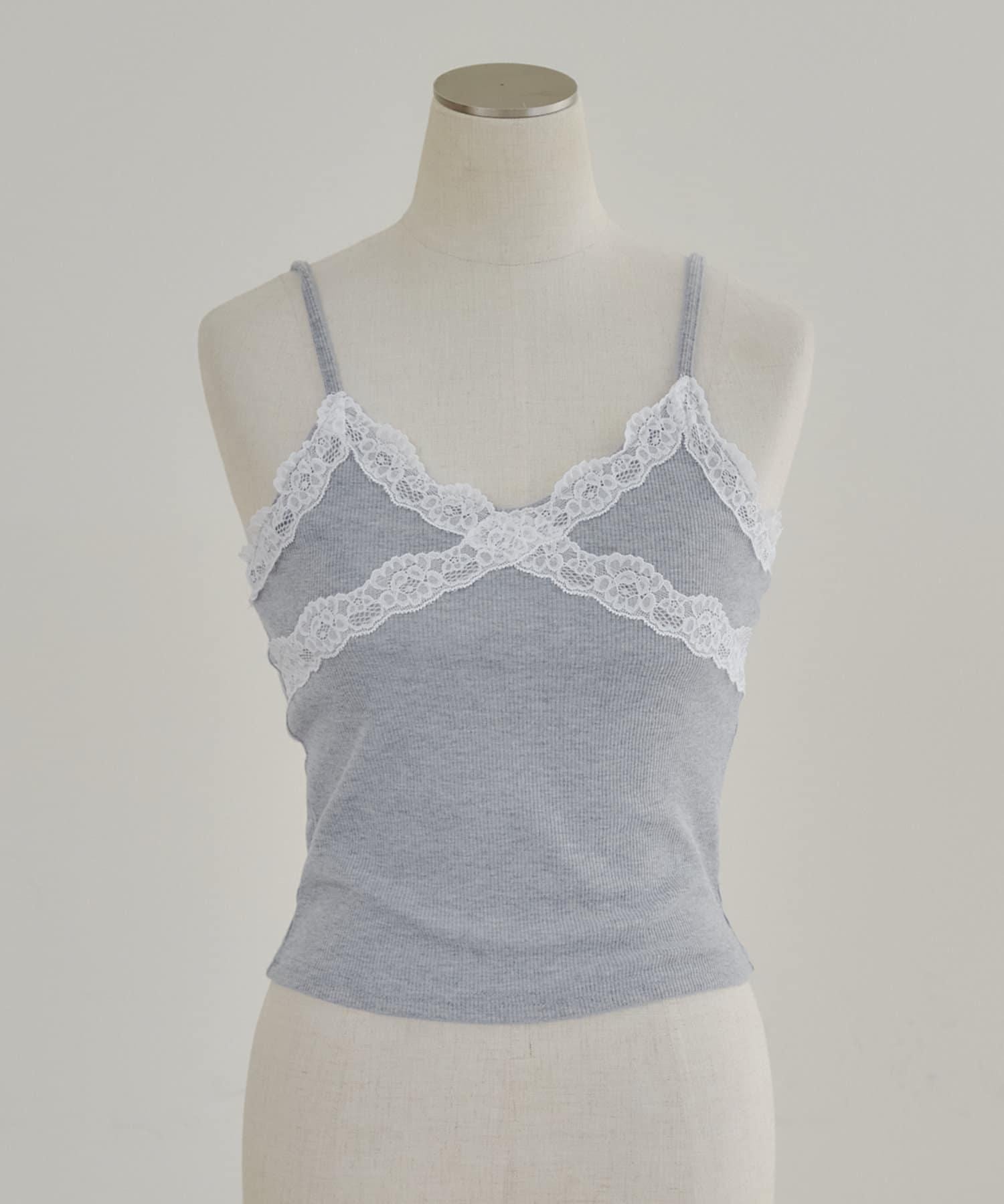 胸前有蕾絲設計的吊帶背心,給人一種成熟少女的印象。