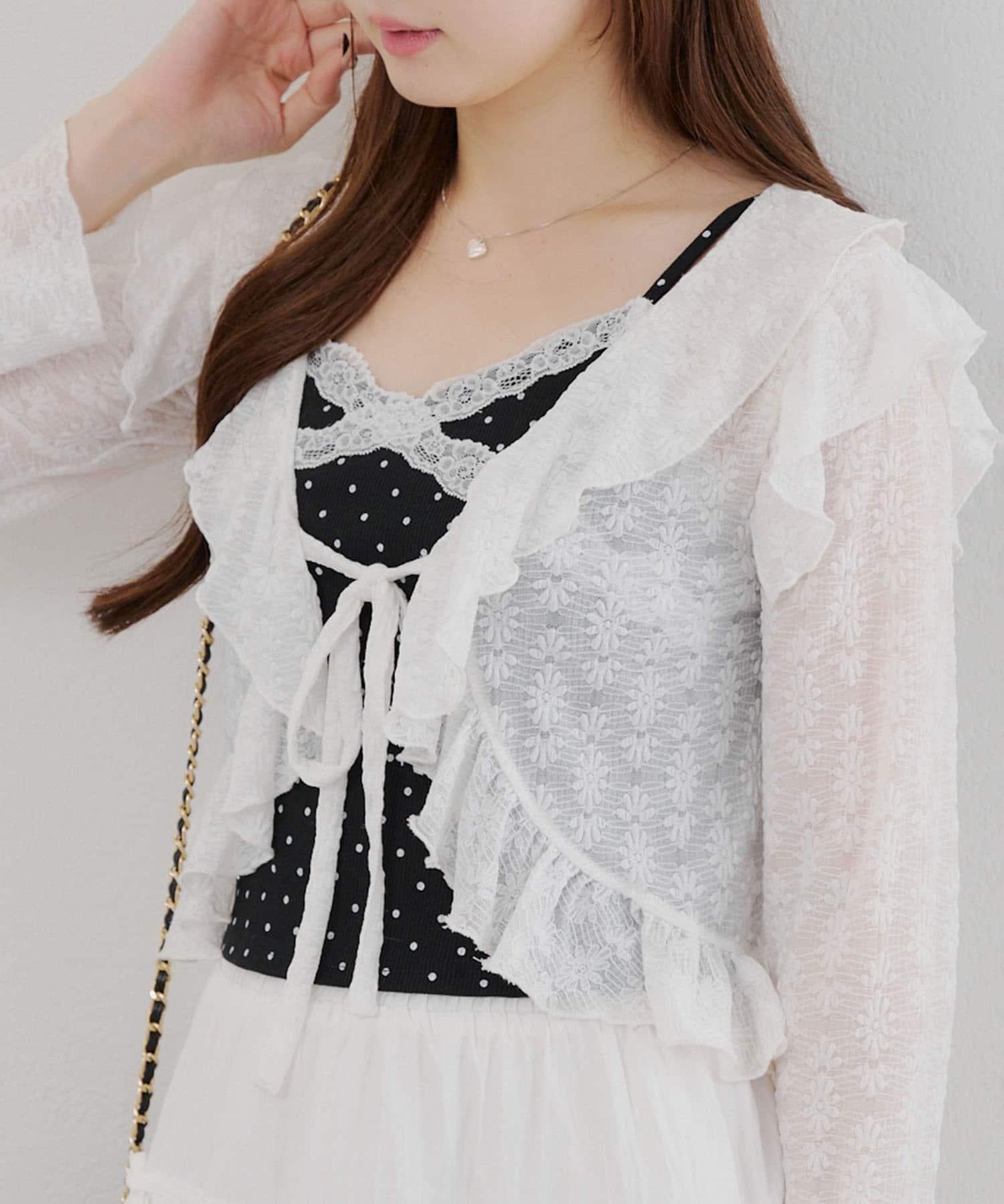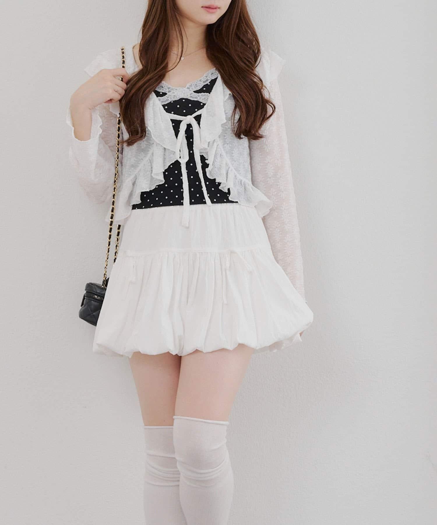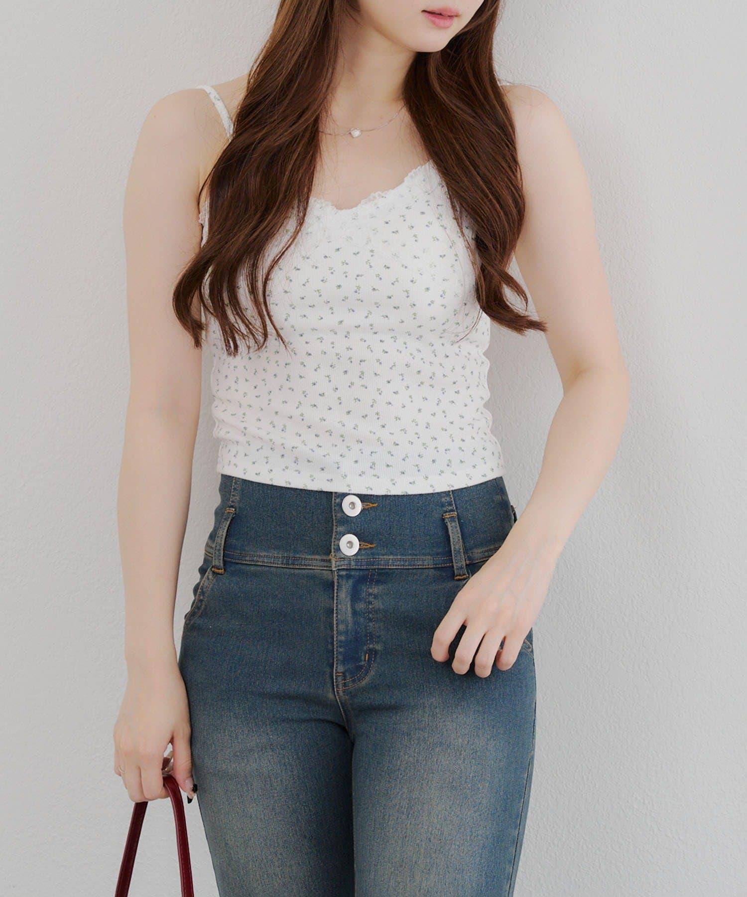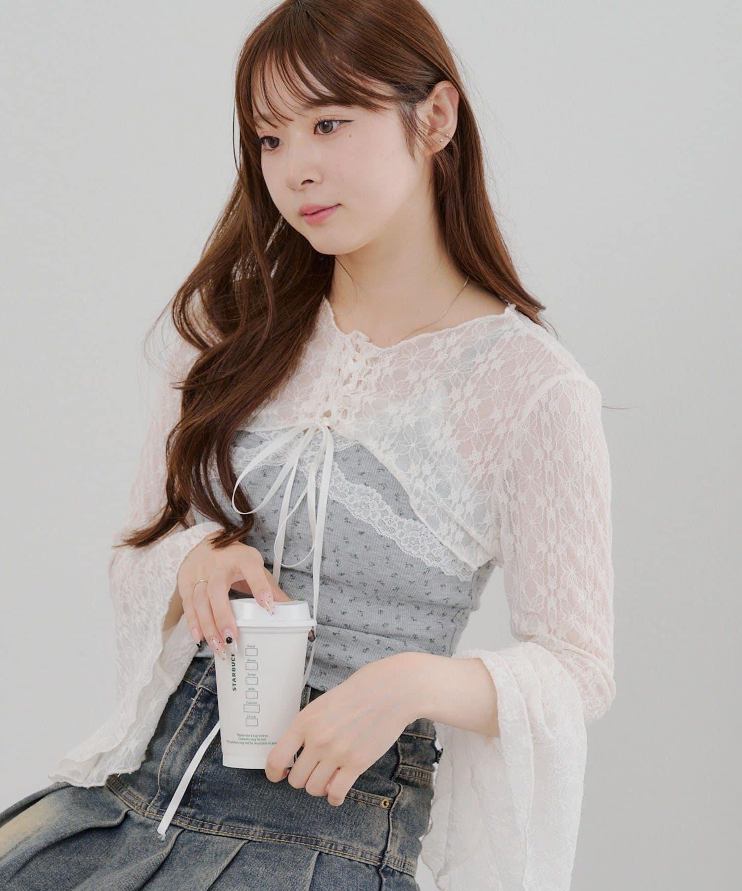 胸前有蕾絲設計的吊帶背心,給人一種成熟少女的印象。
