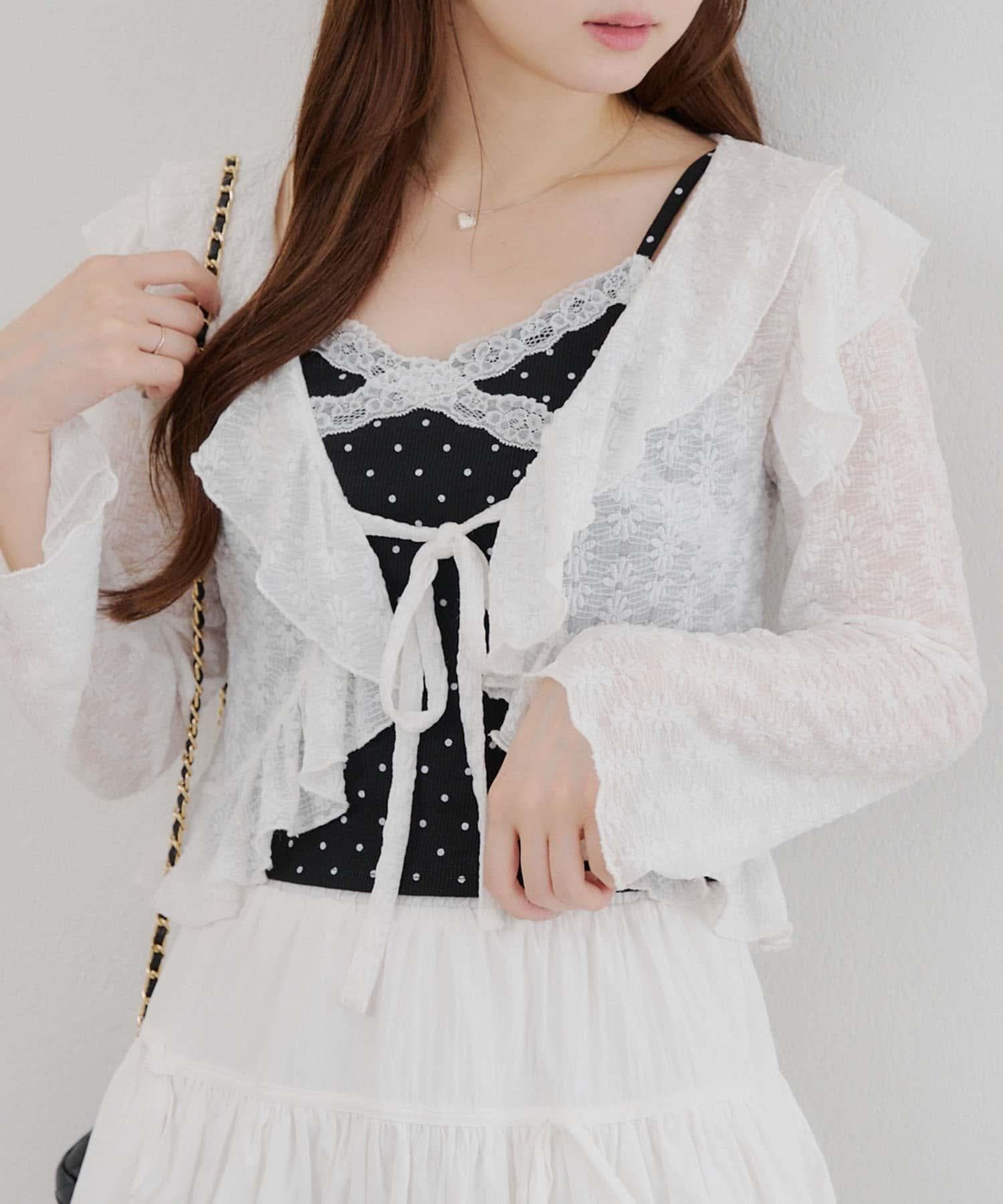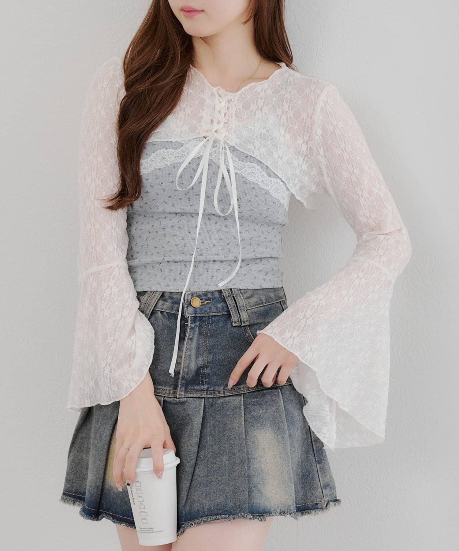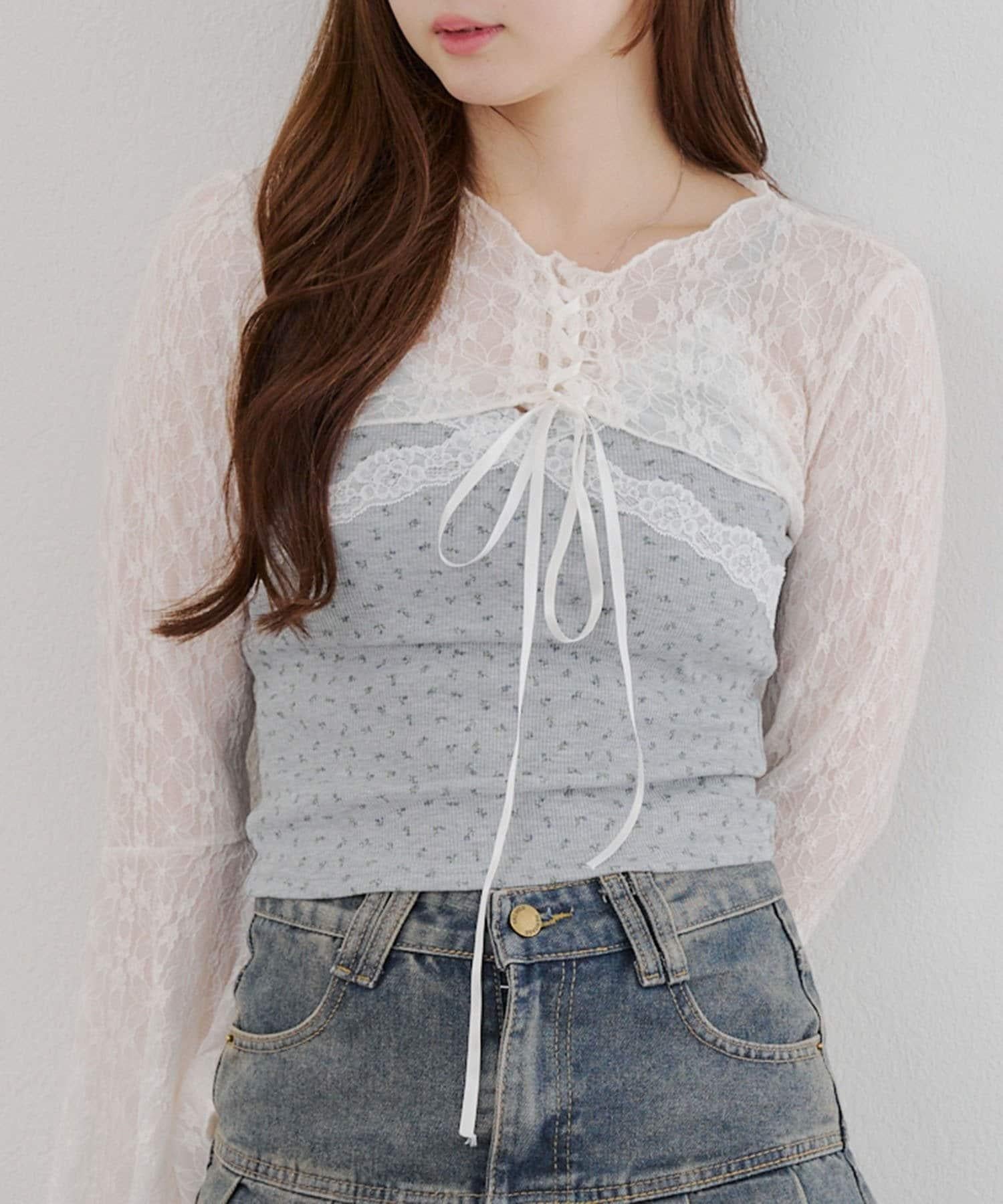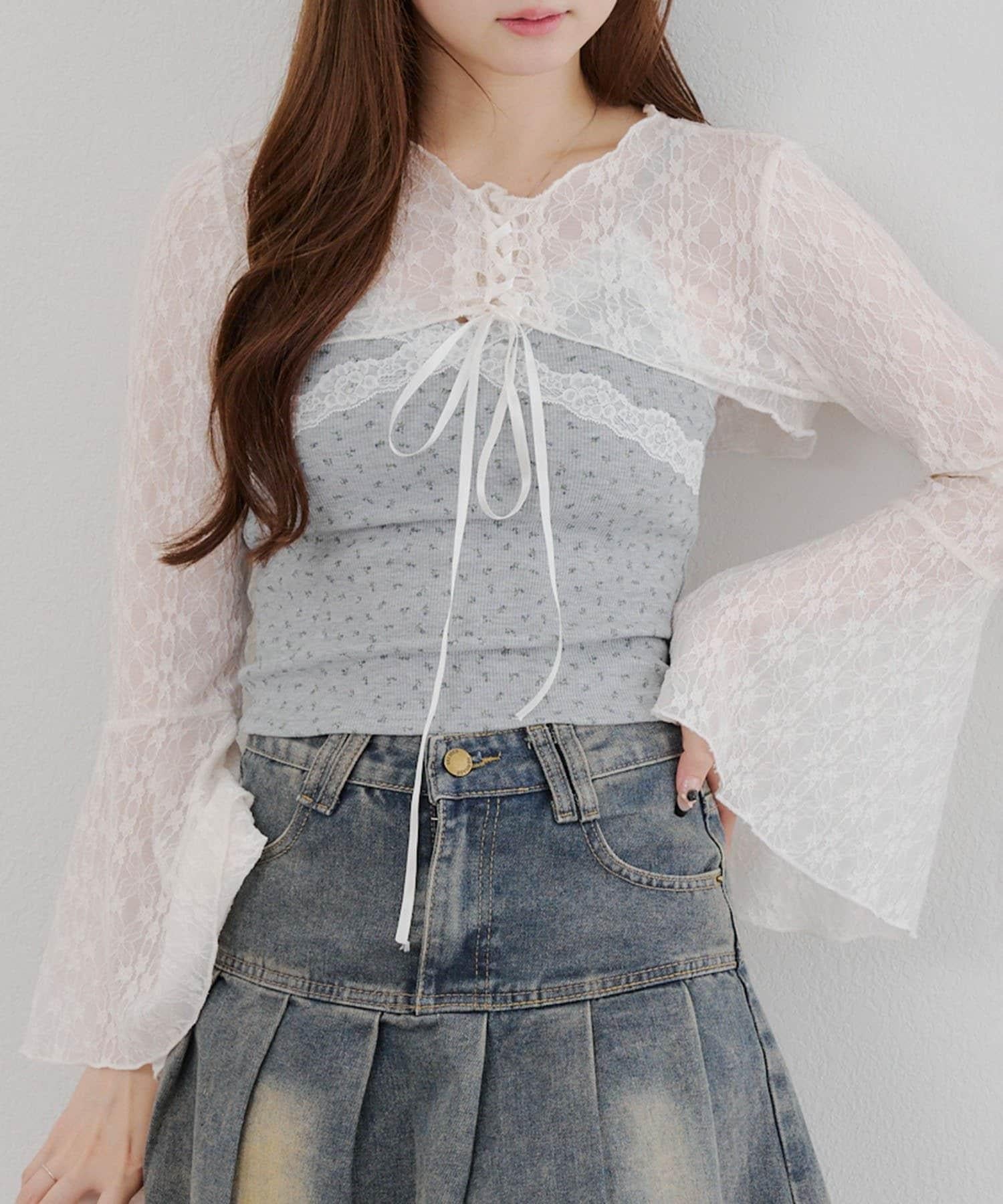胸前的蕾絲設計給人成熟、少女的感覺。