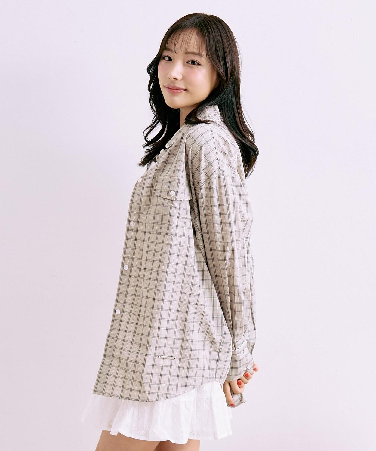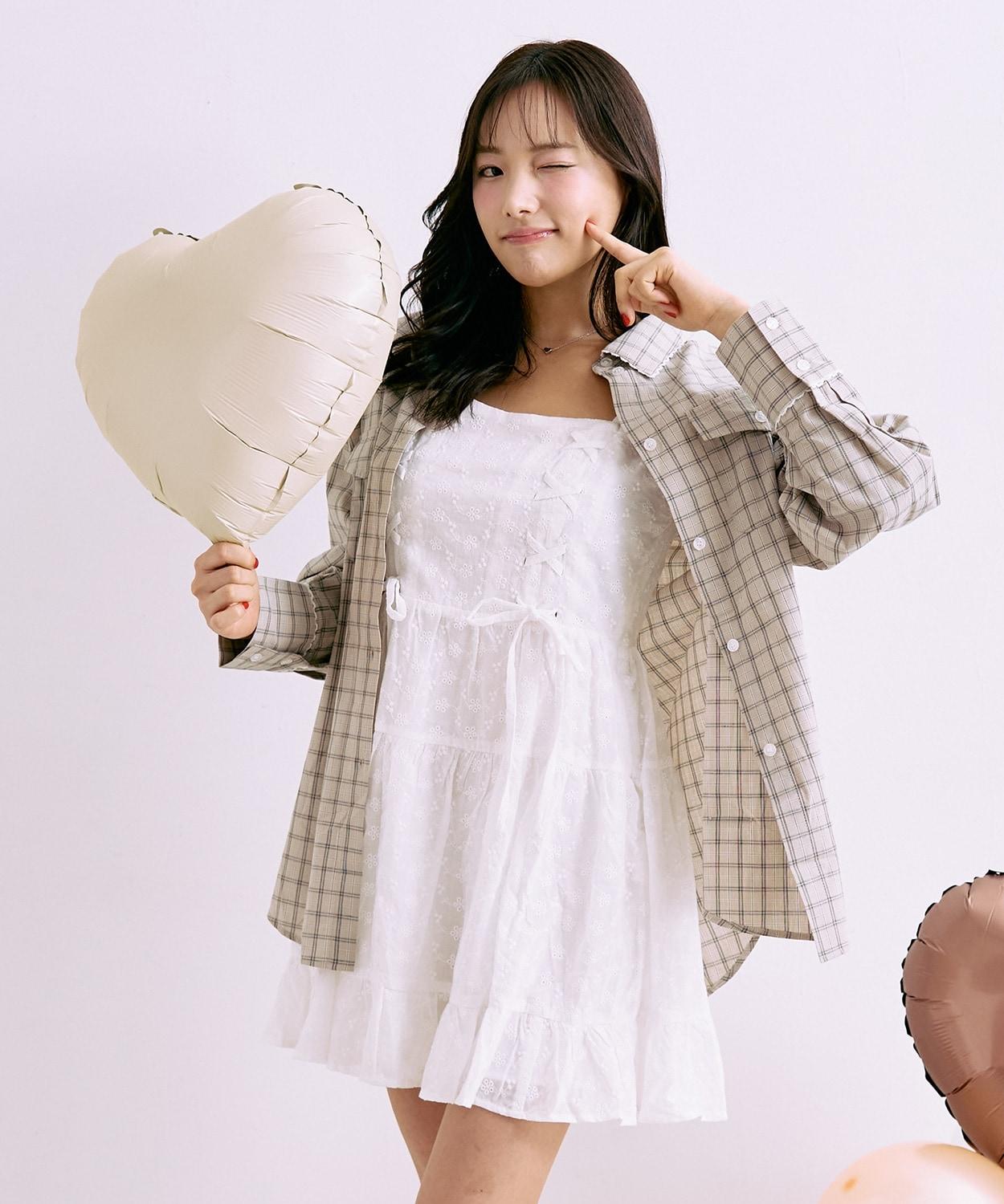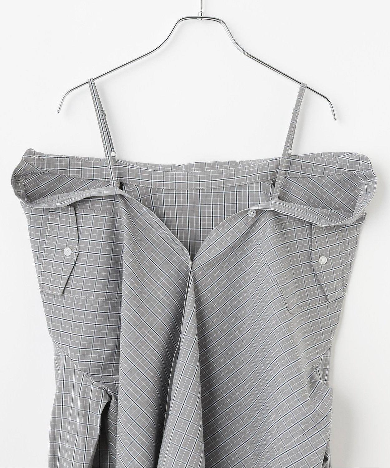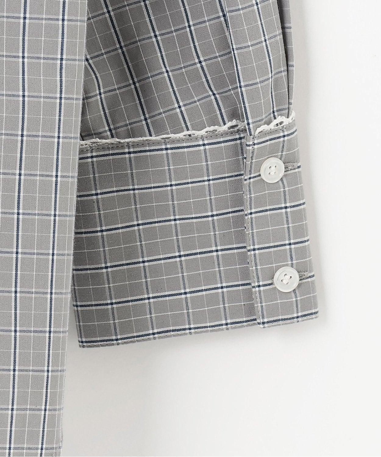 這是一款雙向單品,既可作為梭織衫穿著,也可搭配肩帶露肩穿著! 它採用輕盈的格紋面料,穿著輕便舒適! 袖口和領口飾有皮孔花邊,增添了一絲甜美。