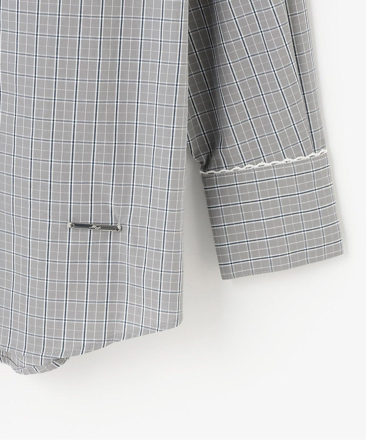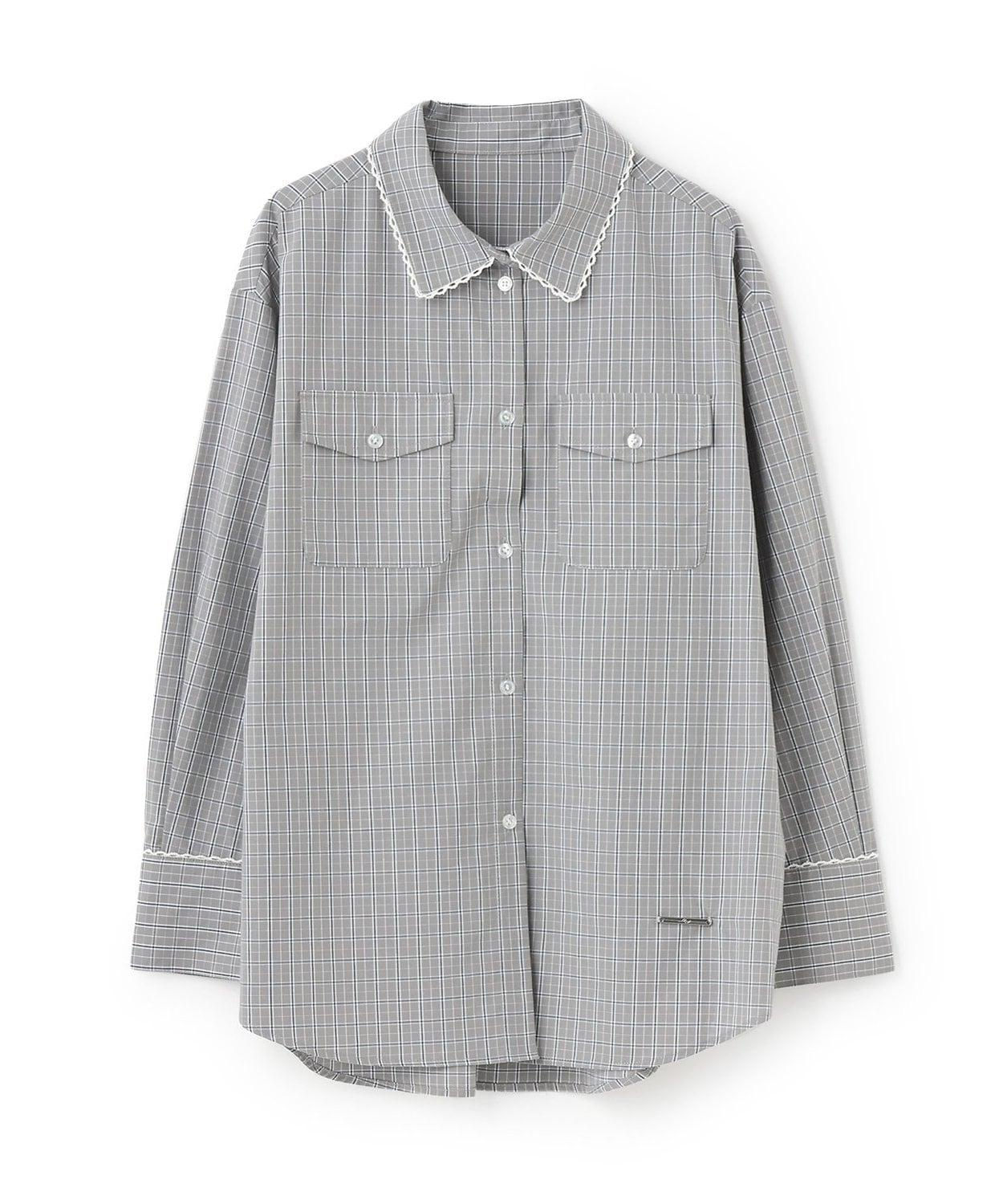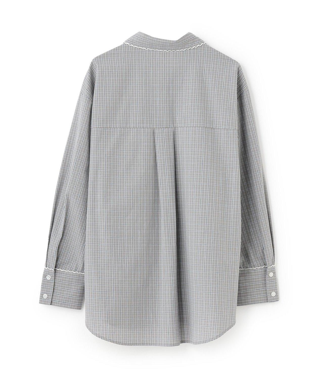 這是一款雙向單品,既可作為梭織衫穿著,也可搭配肩帶露肩穿著! 它採用輕盈的格紋面料,穿著輕便舒適! 袖口和領口飾有皮孔花邊,增添了一絲甜美。