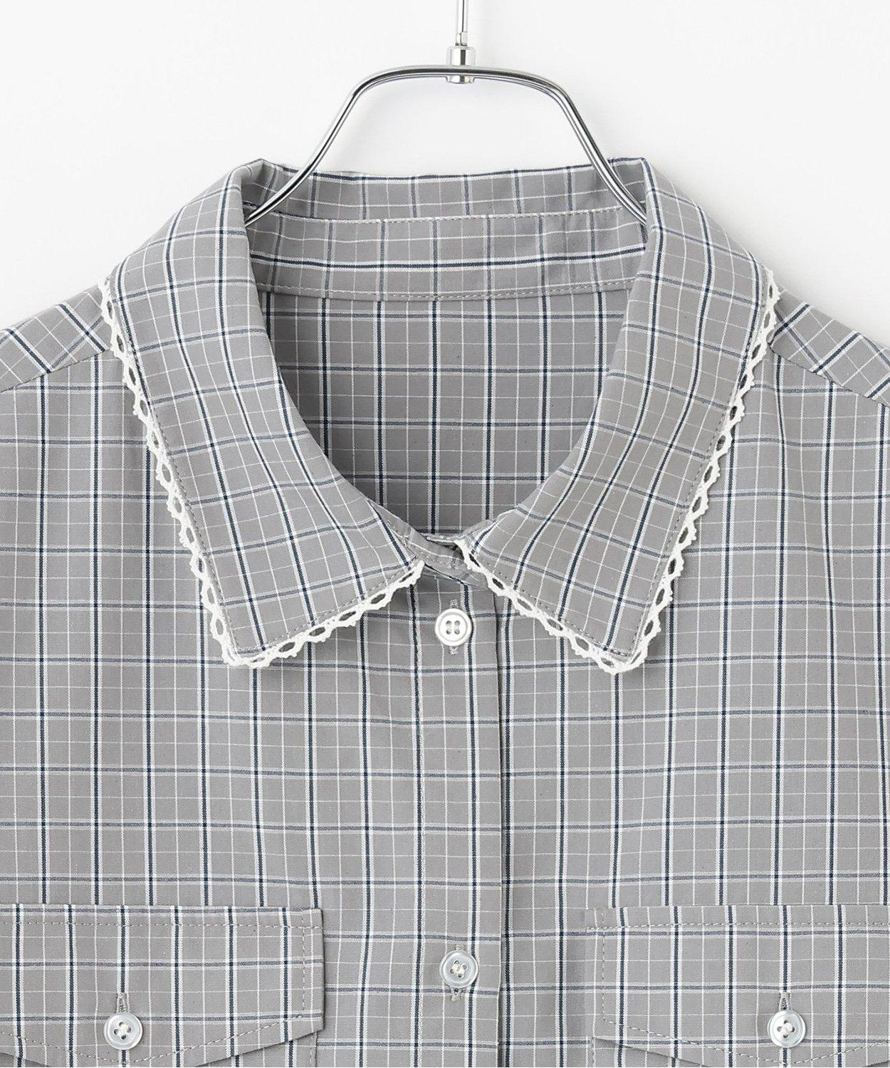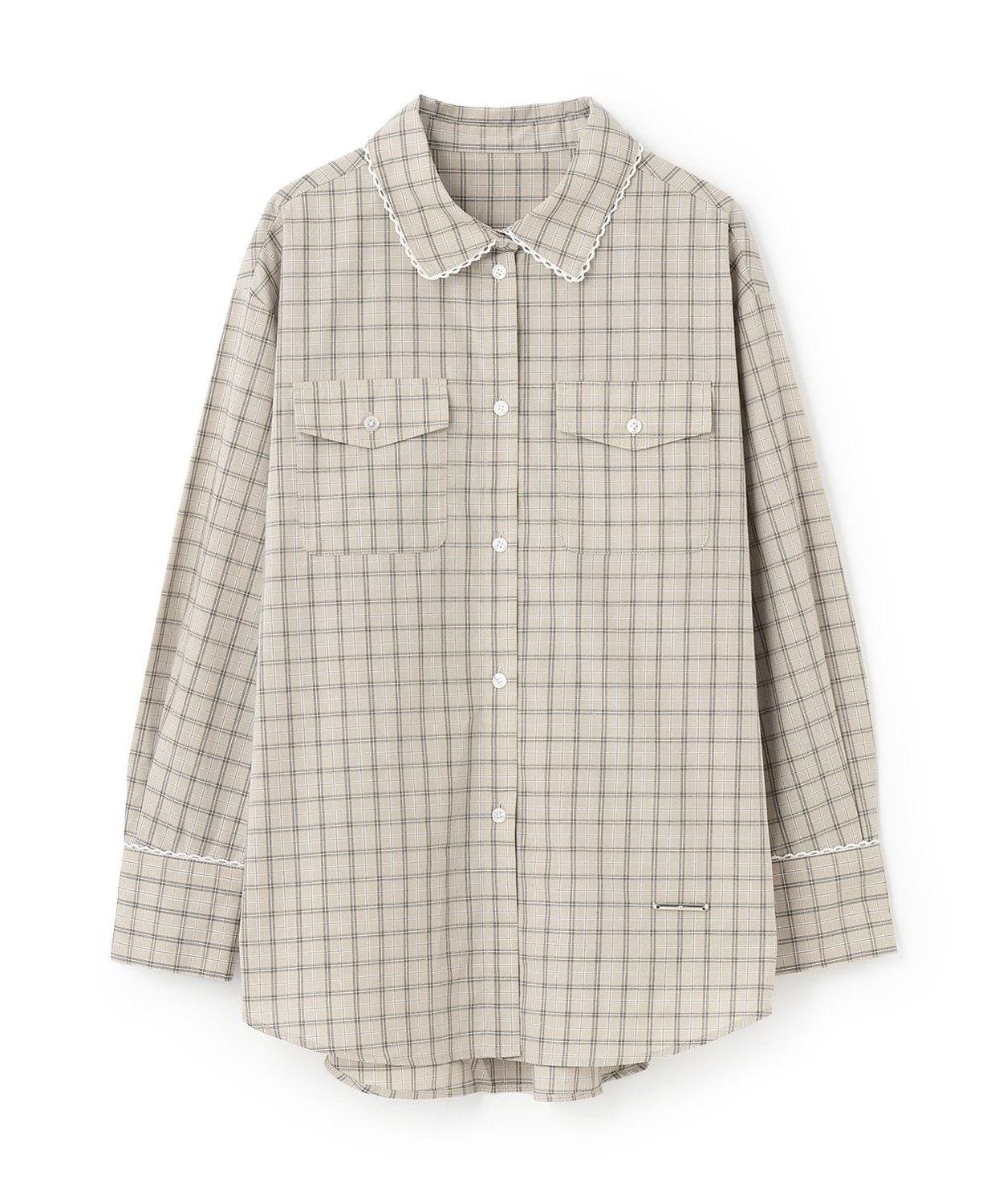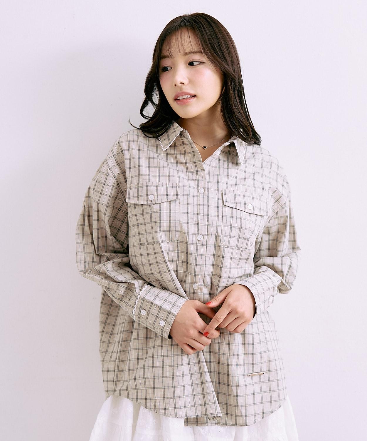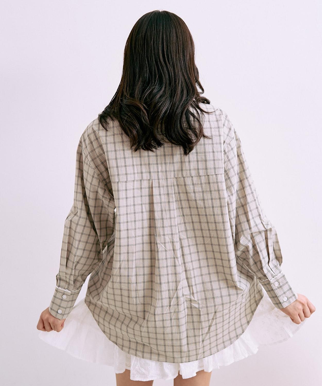 這是一款雙向單品,既可作為梭織衫穿著,也可搭配肩帶露肩穿著! 它採用輕盈的格紋面料,穿著輕便舒適! 袖口和領口飾有皮孔花邊,增添了一絲甜美。