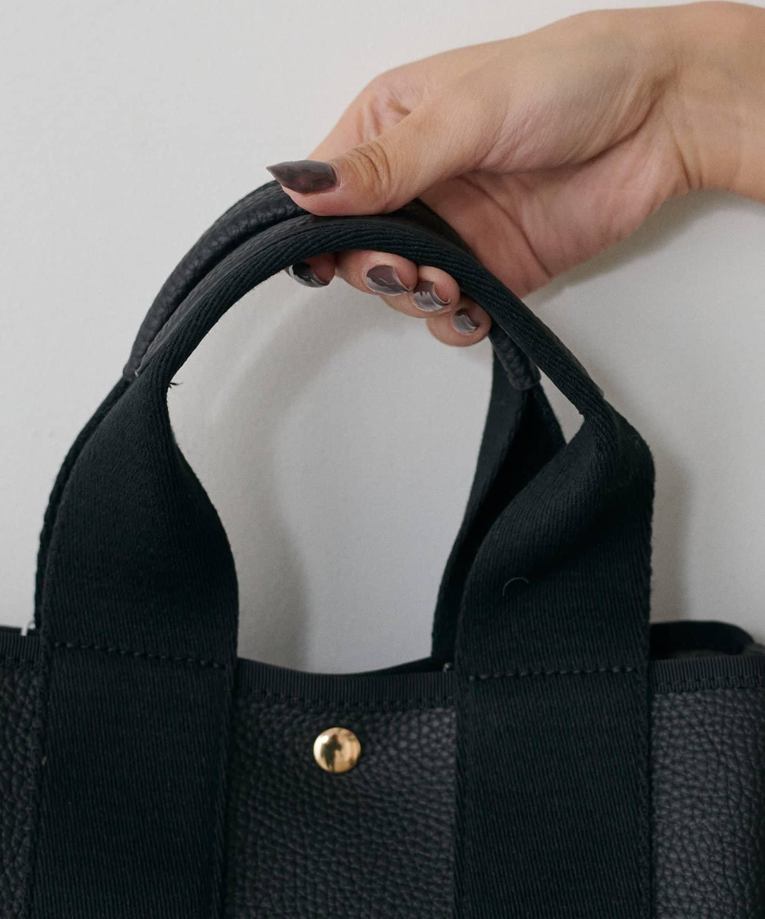 這款手提包採用粗糙的校園布料製成,便於日常使用。